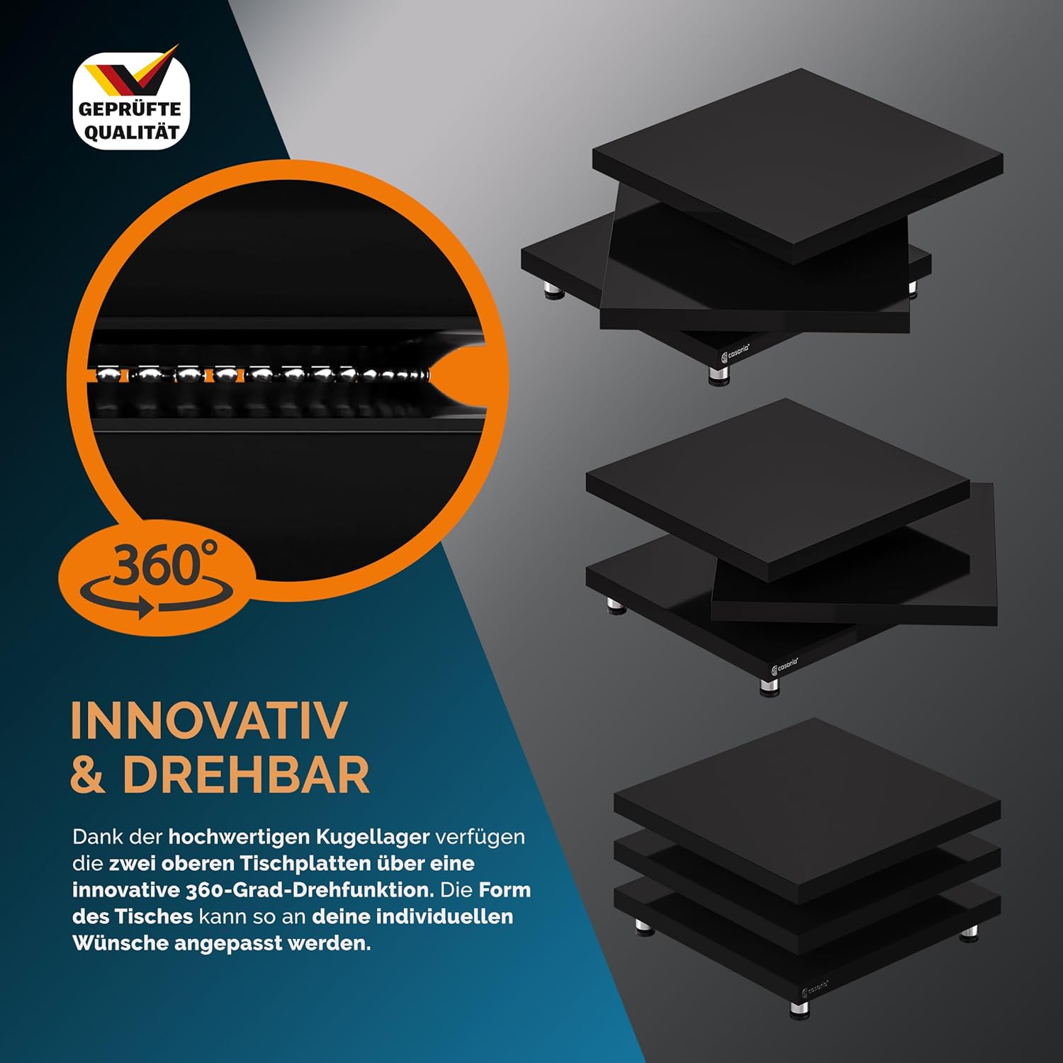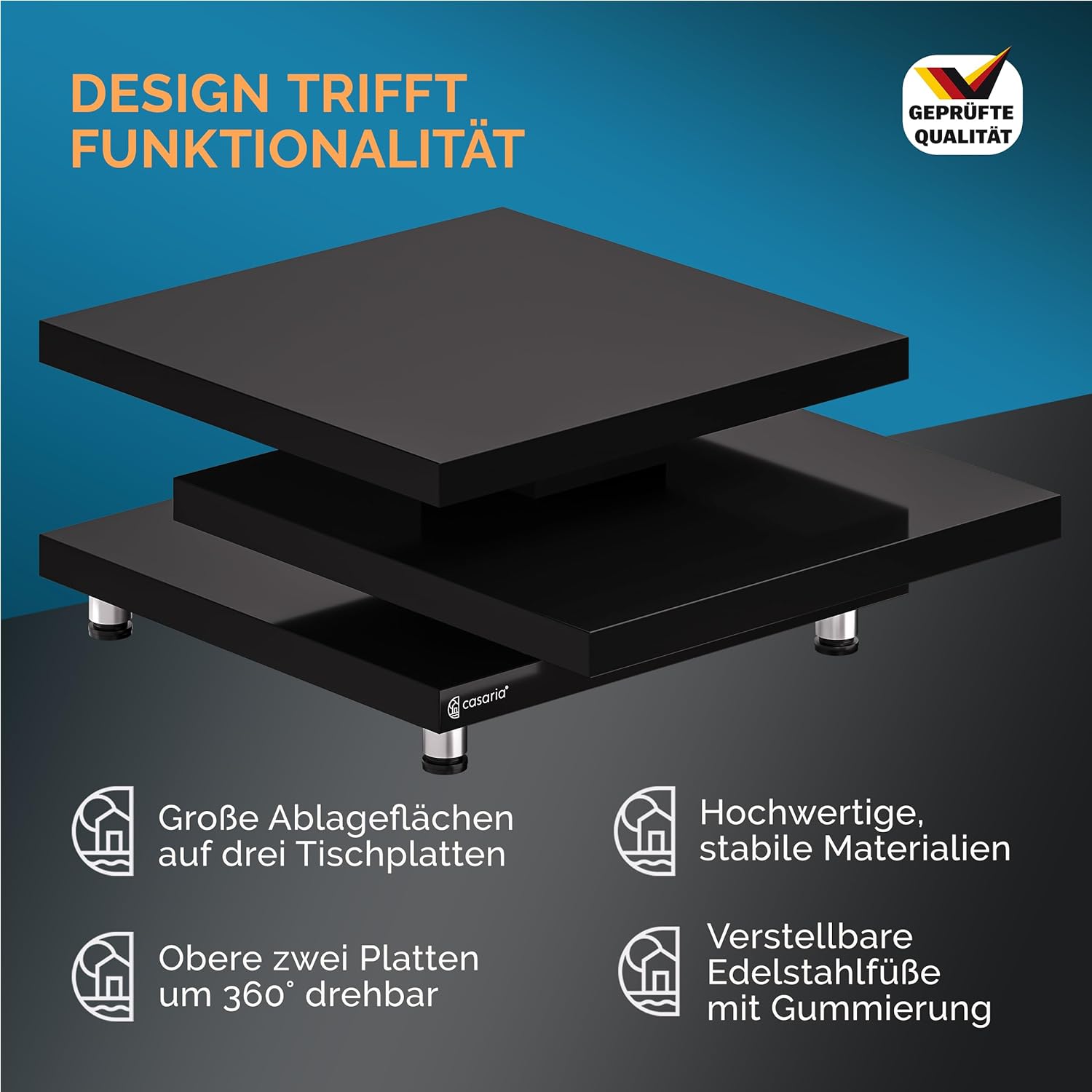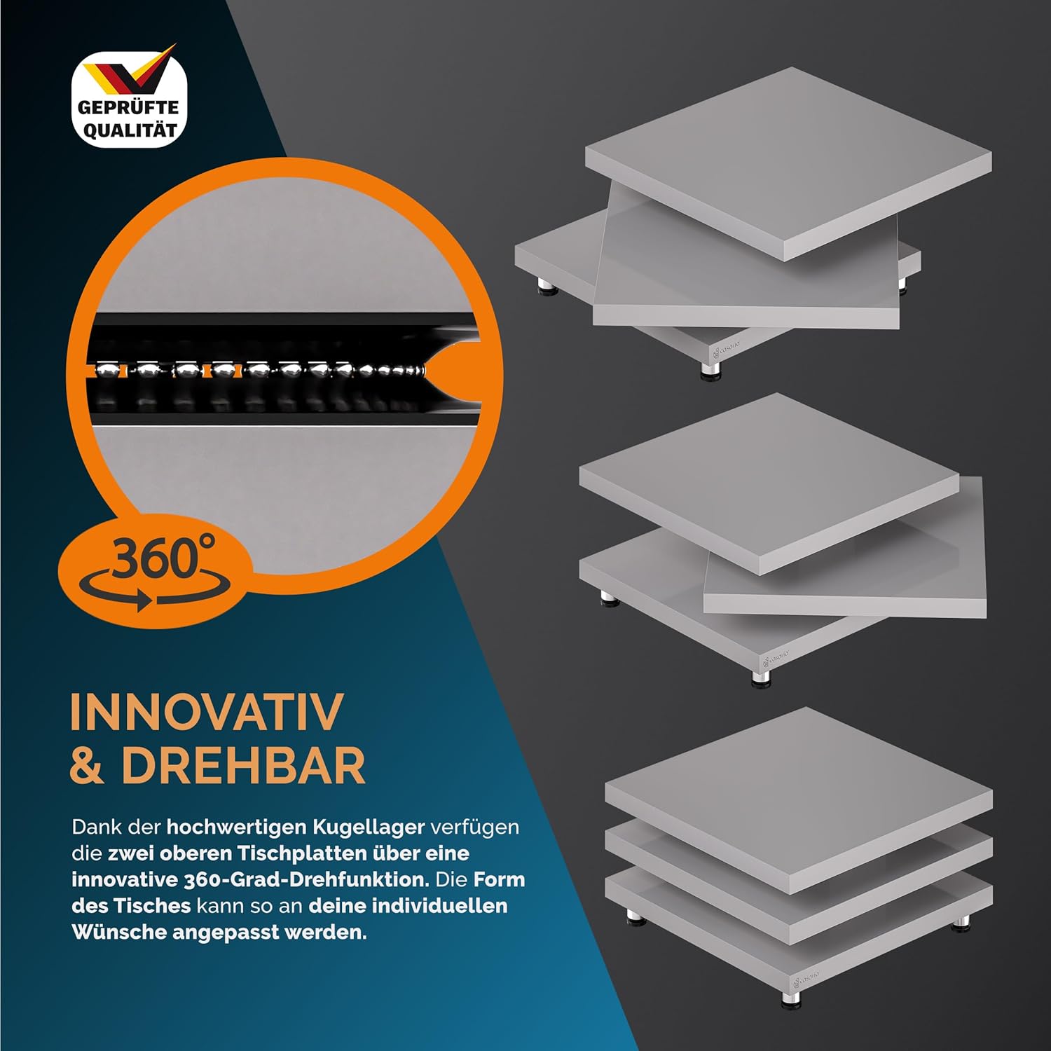 Tanto spazio per ogni cosa: tavolino rotante a 360°! ELEGANTE E DI CLASSEIl tavolino da divano unisce design moderno e praticità. È versatile e, con le sue linee definite, è un elemento centrale di stile per ogni salotto. INNOVATIVO E RUOTABILEI due piani superiori del tavolo hanno un'innovativa funzione di rotazione a 360...