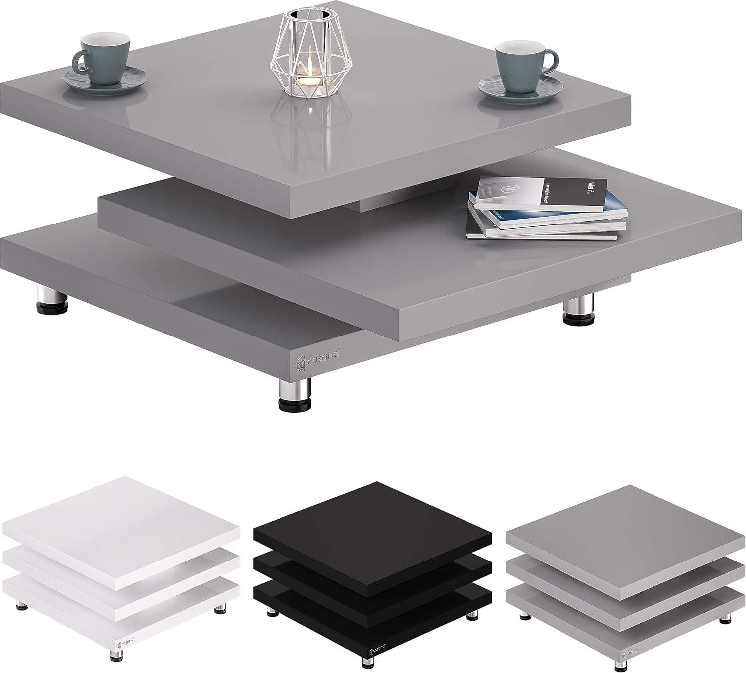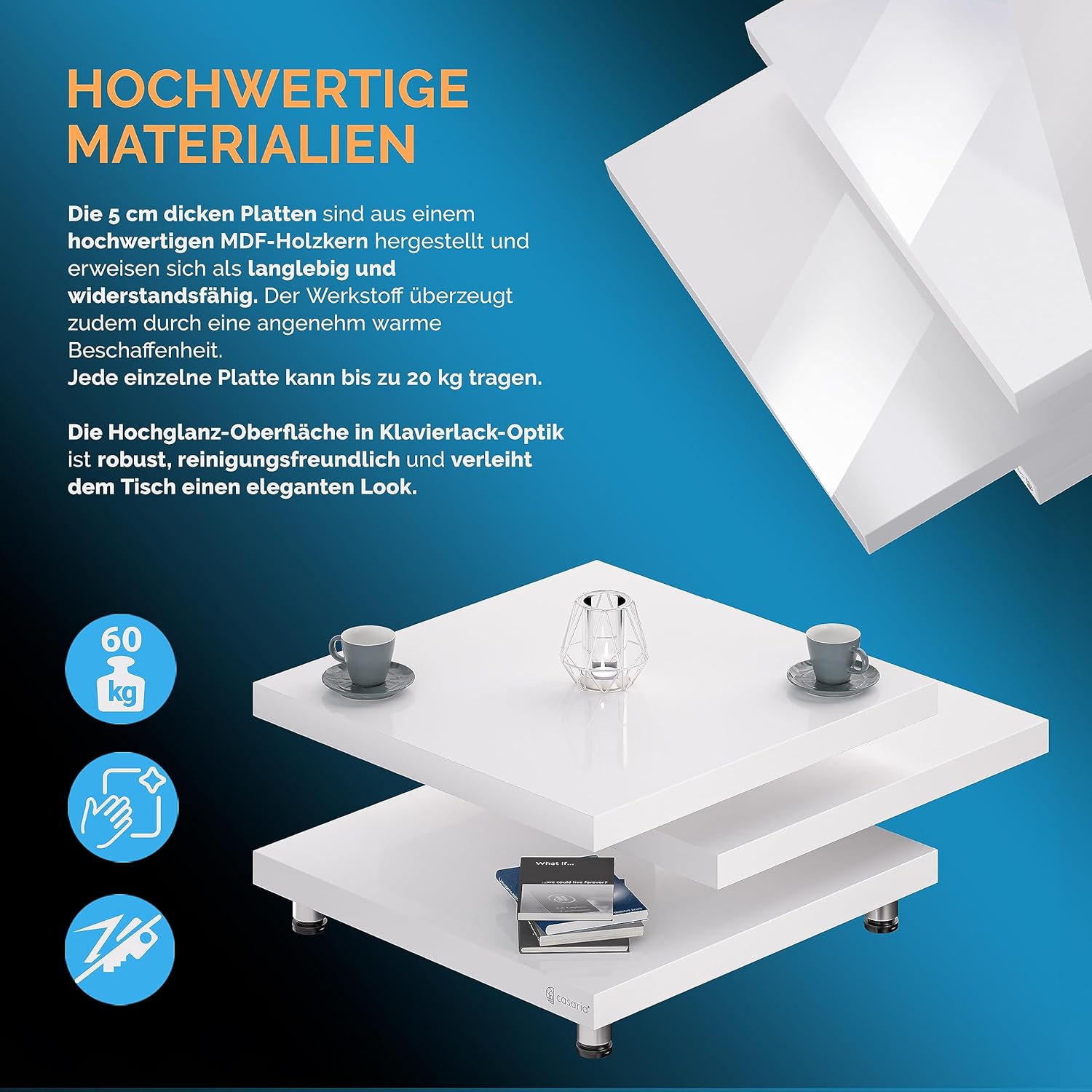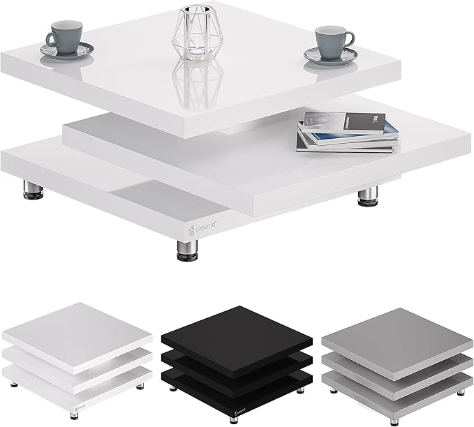Tanto spazio per ogni cosa: tavolino rotante a 360°! ELEGANTE E DI CLASSEIl tavolino da divano unisce design moderno e praticità. È versatile e, con le sue linee definite, è un elemento centrale di stile per ogni salotto. INNOVATIVO E RUOTABILEI due piani superiori del tavolo hanno un'innovativa funzione di rotazione a 360...