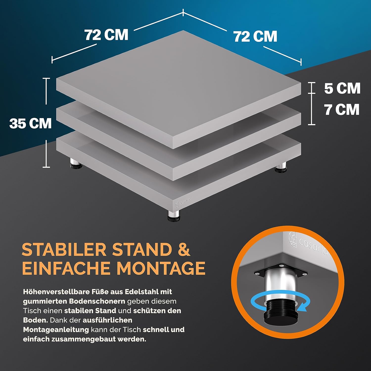 I piedini in acciaio inox regolabili in altezza e dotati di cuscinetti in gomma conferiscono al tavolino un appoggio stabile e proteggono il pavimento. - Il tavolo può essere assemblato in modo semplice e veloce.