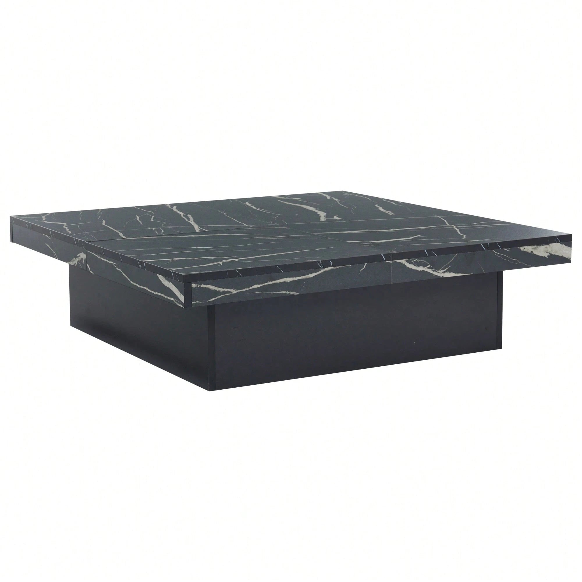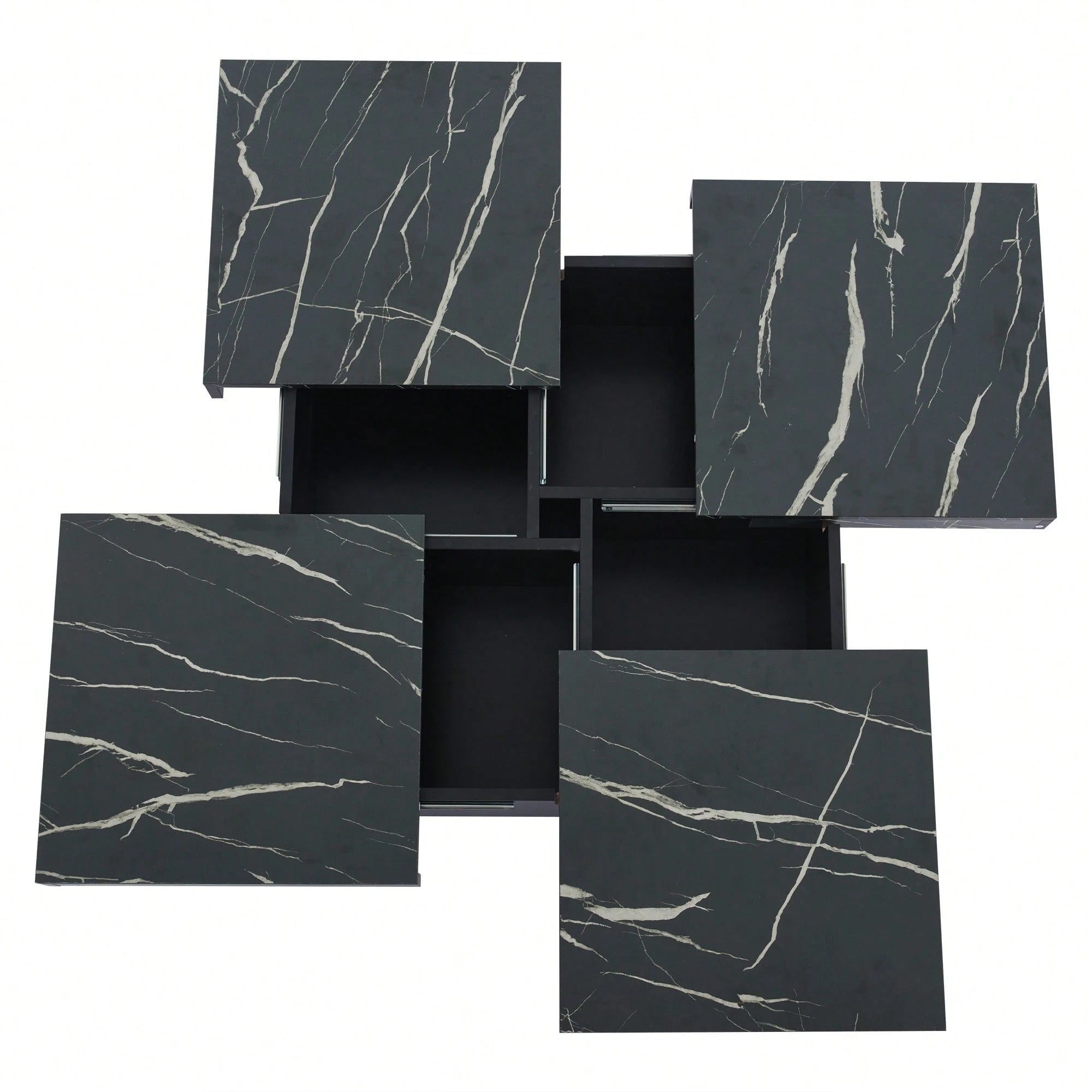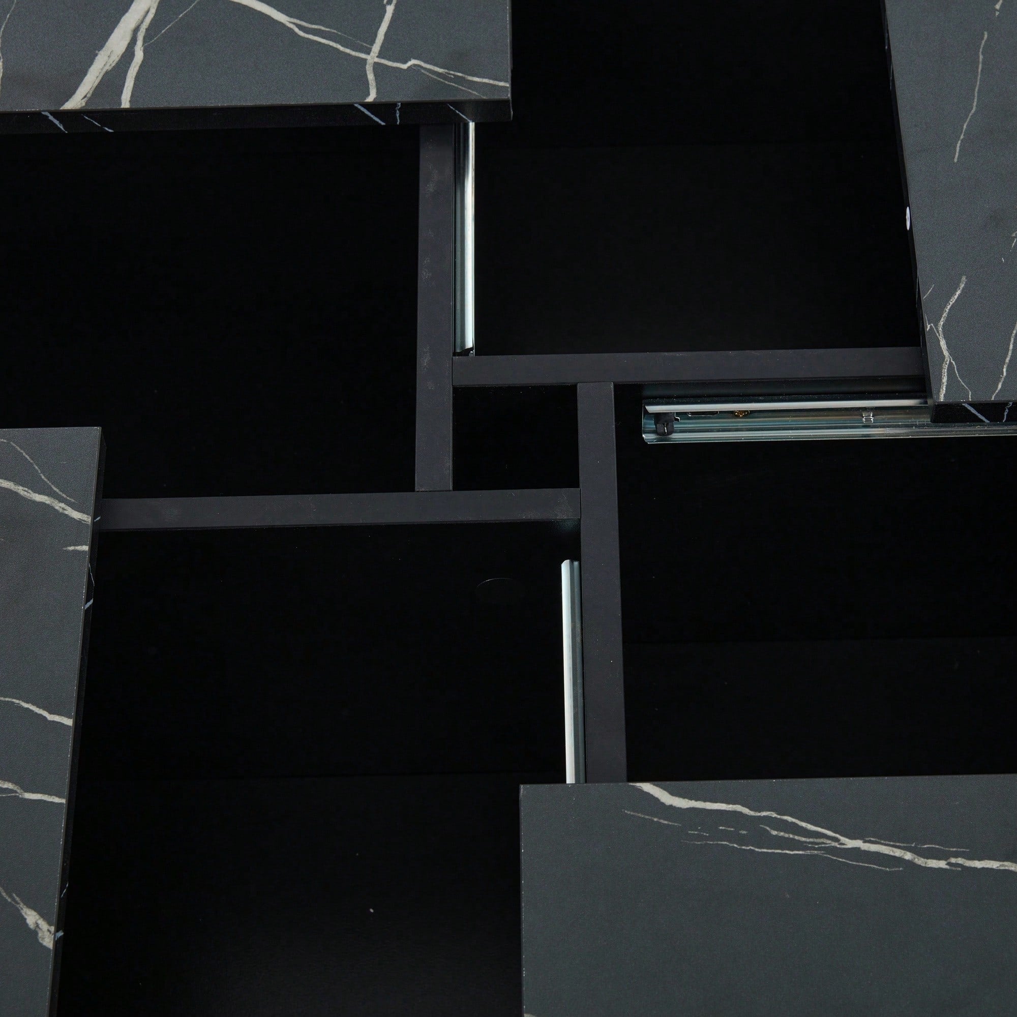 Tavolino Quadrato Da Salotto, Design Moderno Con Cassetti, Effetto Quarzo 90 x 90 x 25 cm, Nero