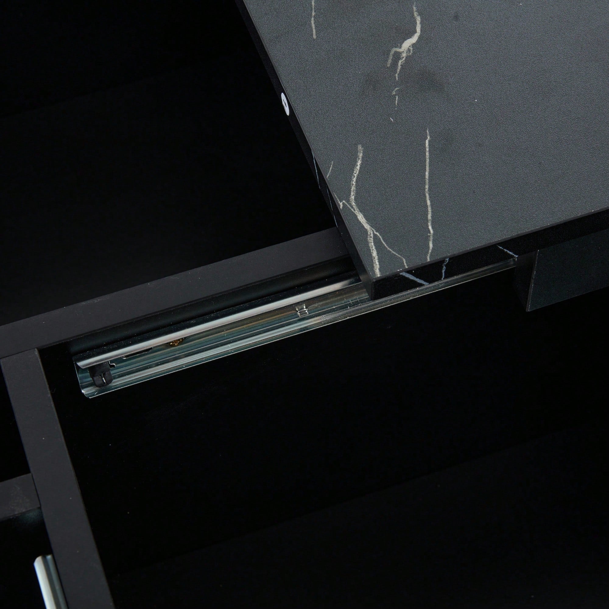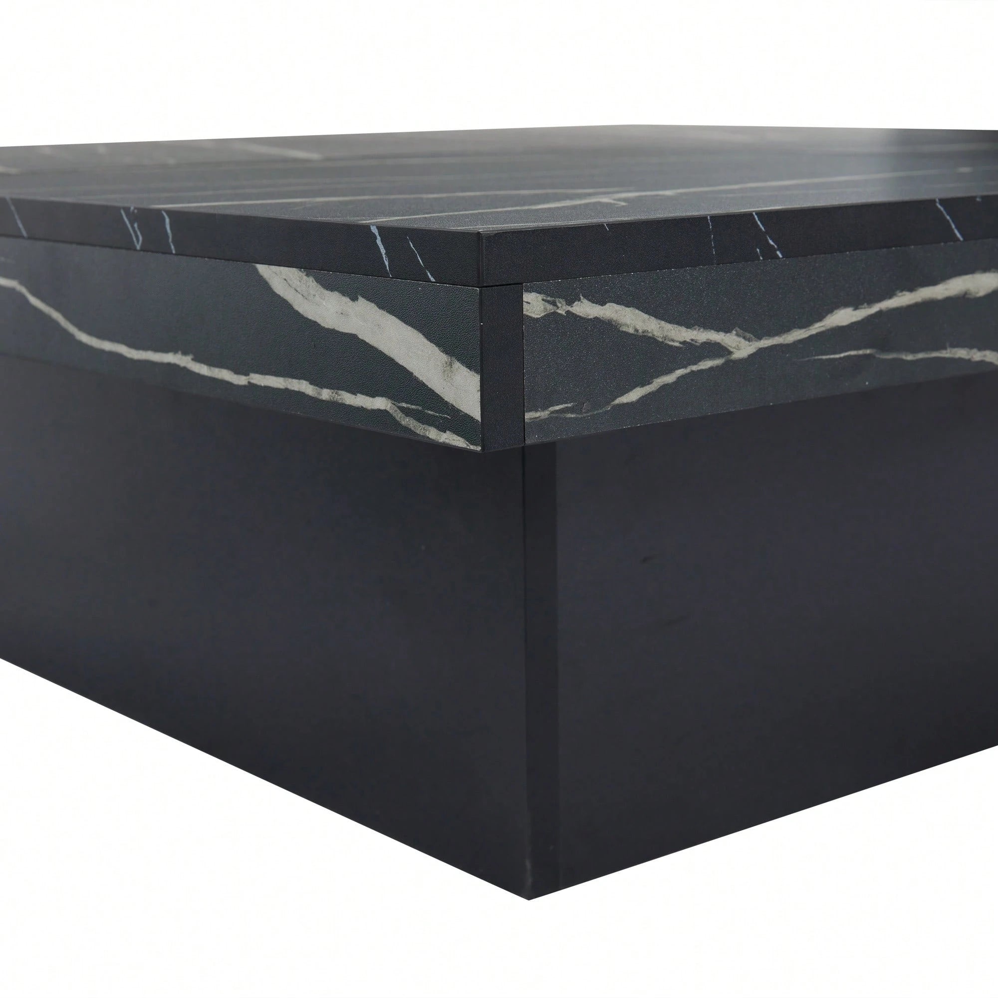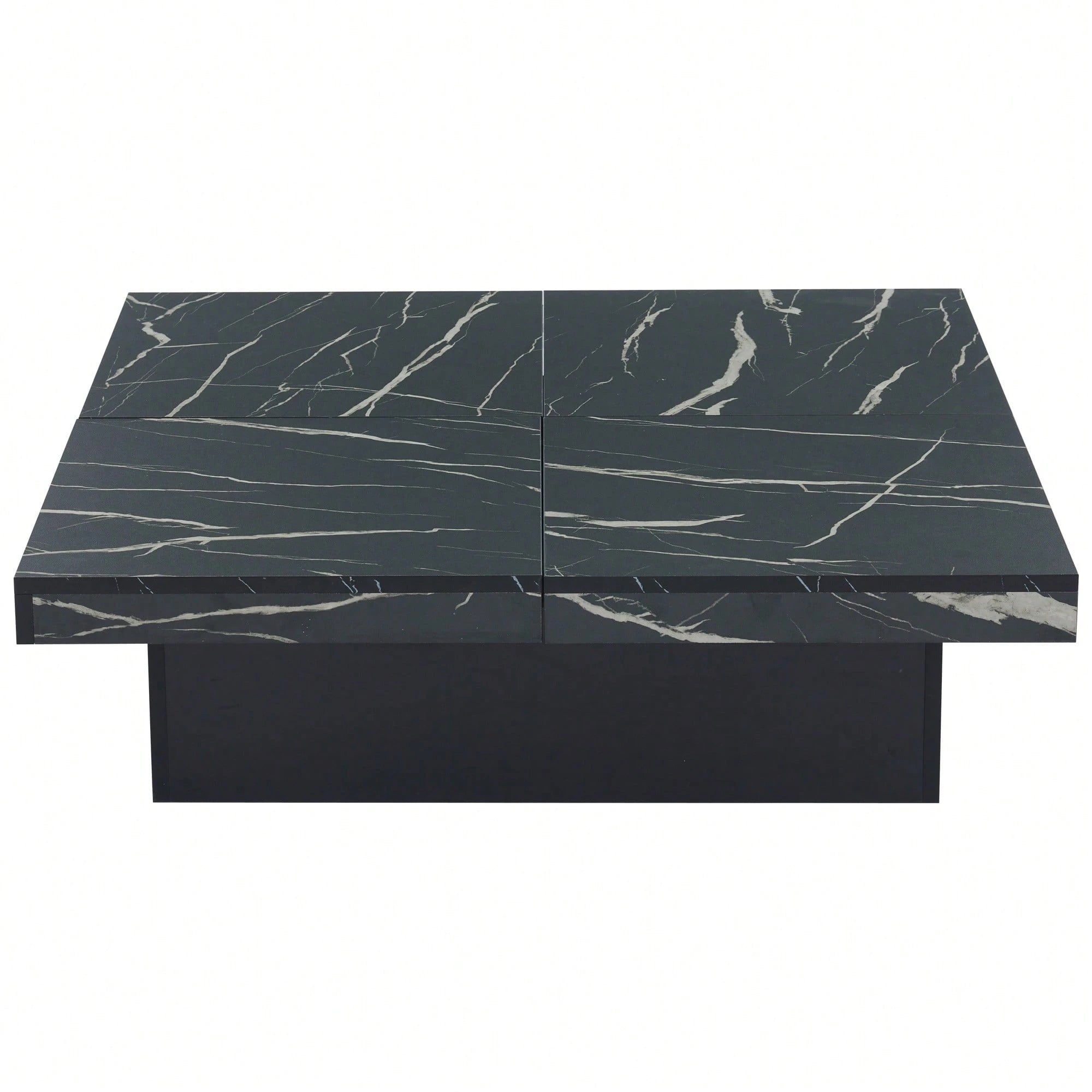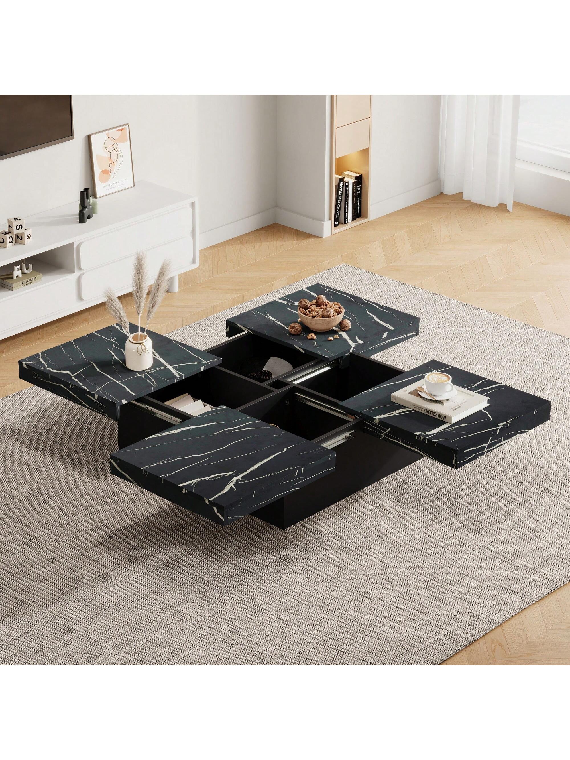 Tavolino Quadrato Da Salotto, Design Moderno Con Cassetti, Effetto Quarzo 90 x 90 x 25 cm, Nero