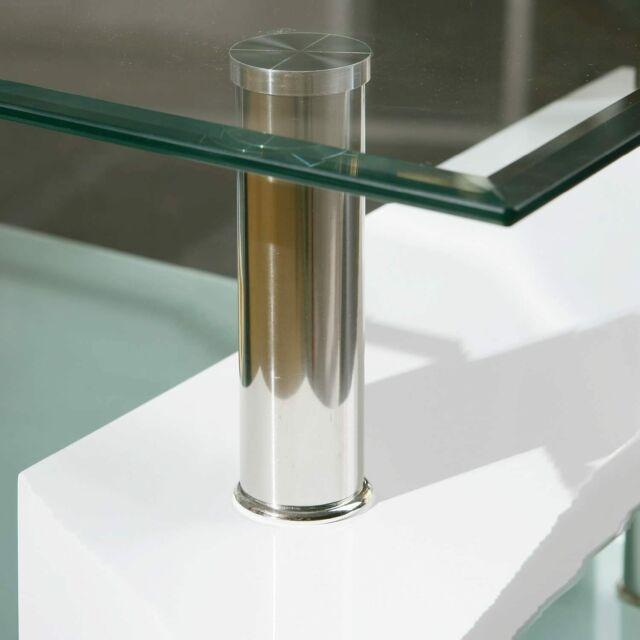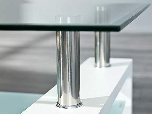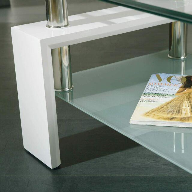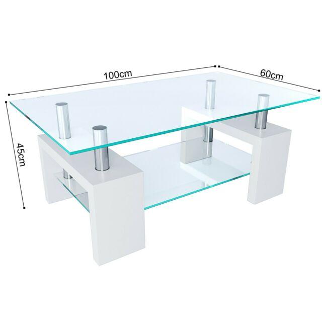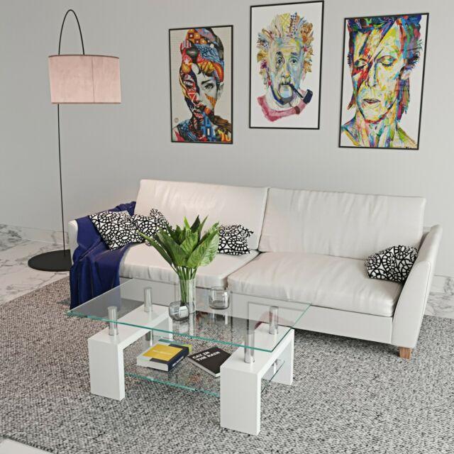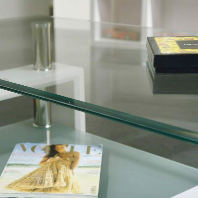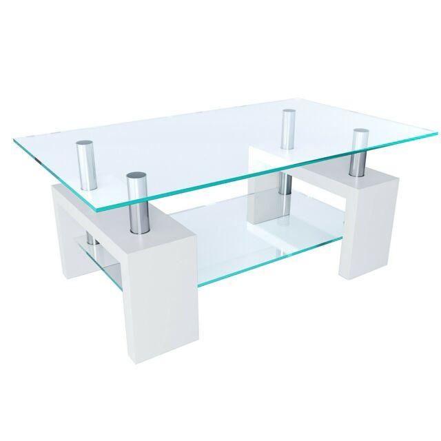Tavolino tavolo basso da caffè salotto elegante in vetro e legno bianco