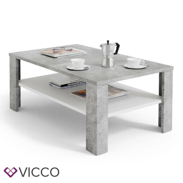Vicco Tavolino da divano Tavolino da salotto cemento bianco con ripiano Tavolino