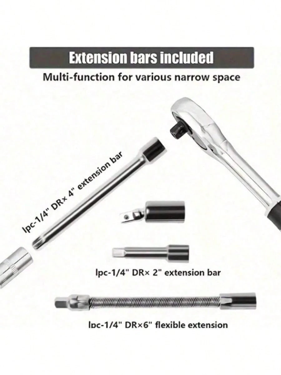 46 pezzi Kit di attrezzi integrati di piccole dimensioni, adatto per riparazioni di emergenza all'aperto per auto, bicicletta e motocicletta, include anche un set di chiavi combinate multifunzionali, senza batteria richiesta, con chiave a cricchetto da 1 Batterie incluse : NonAltro materiale : ABSColore : MulticoloreTessuto : Acciaio Hadfield