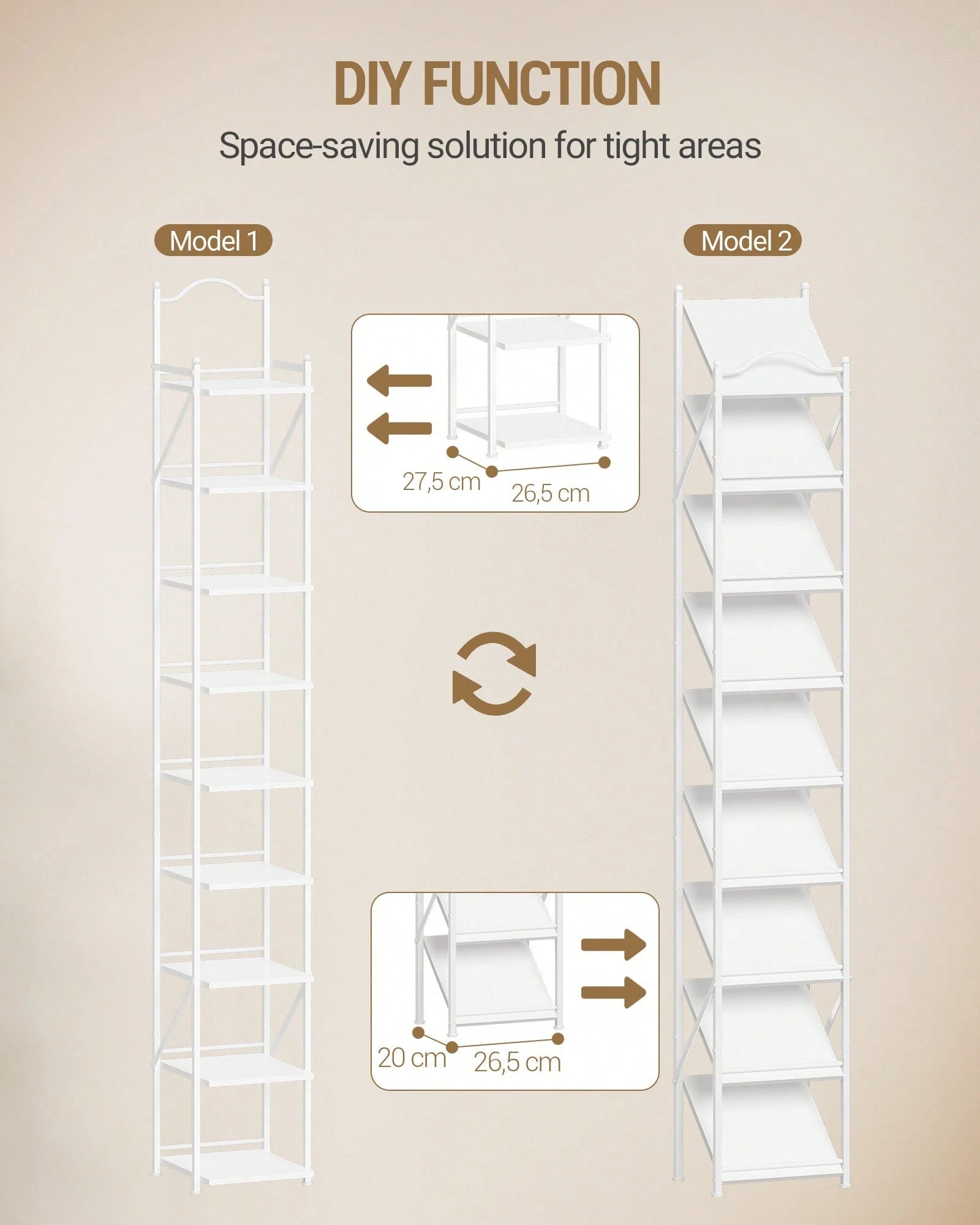Le 2 modalità regolabili permettono di personalizzare l'altezza dei ripiani in base alle vostre esigenze di stoccaggio.
