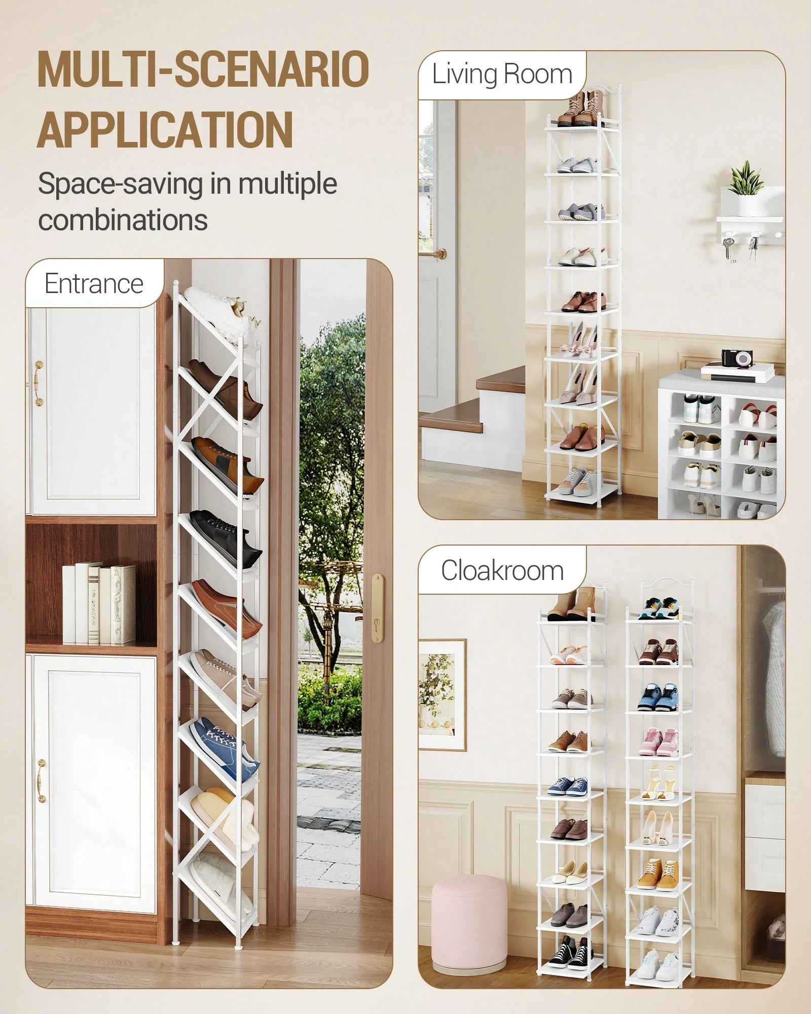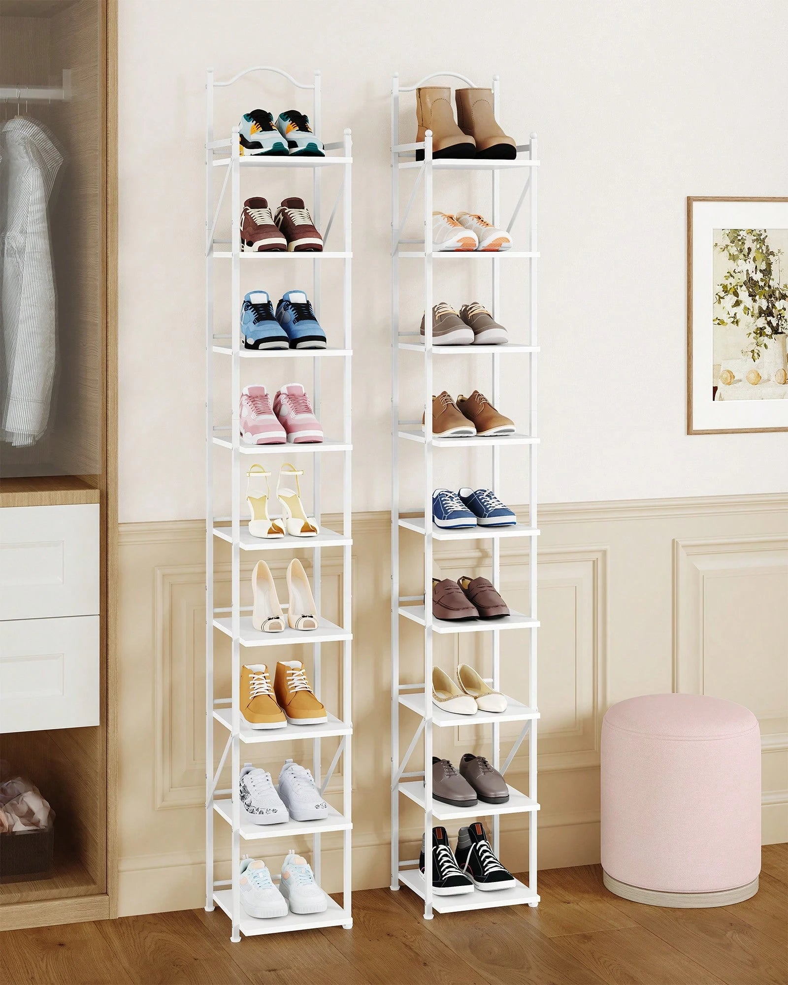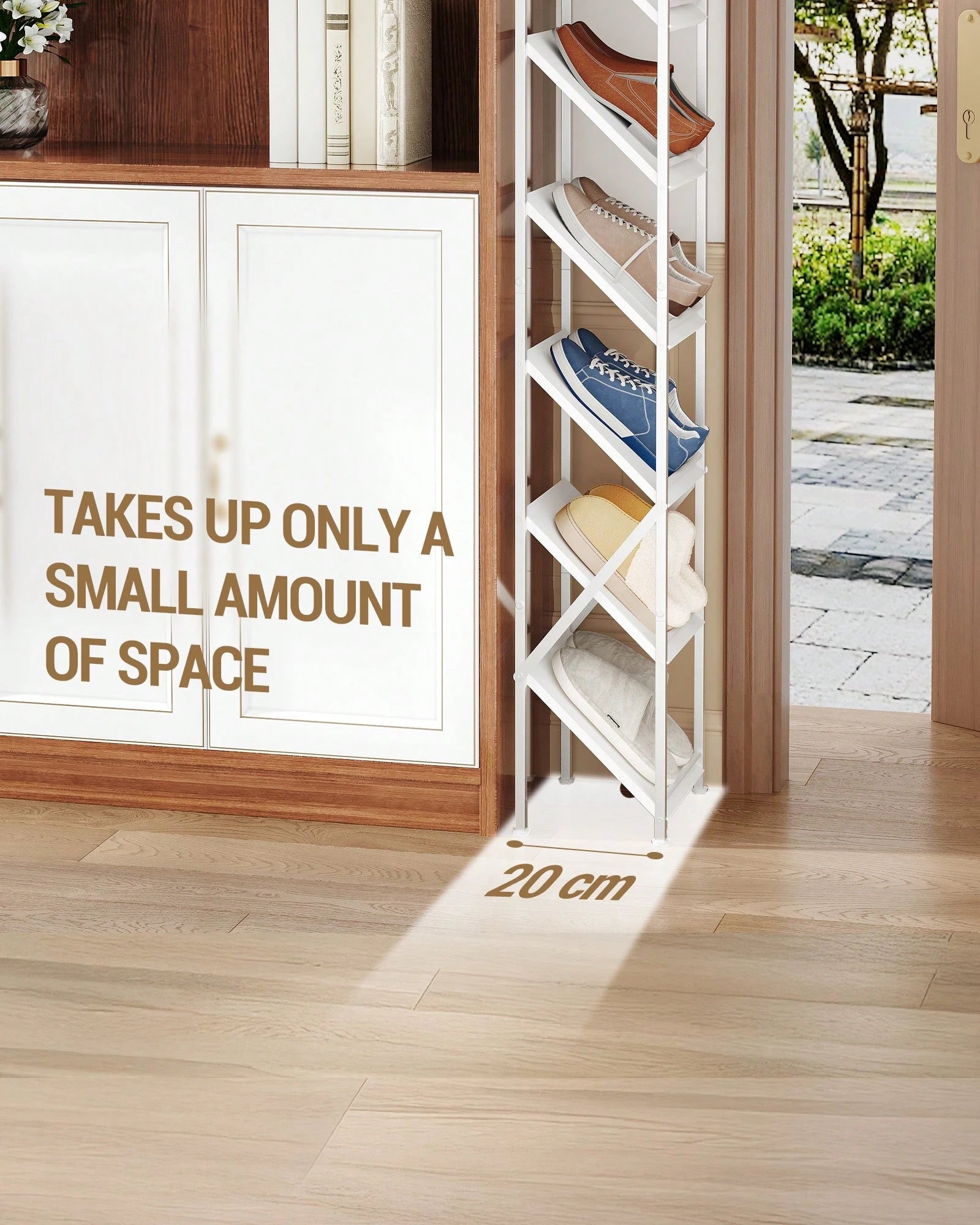Scarpiera Verticale 9 livelli Stretta Scarpiera in ferro e legno 2 Modalità Regolabili