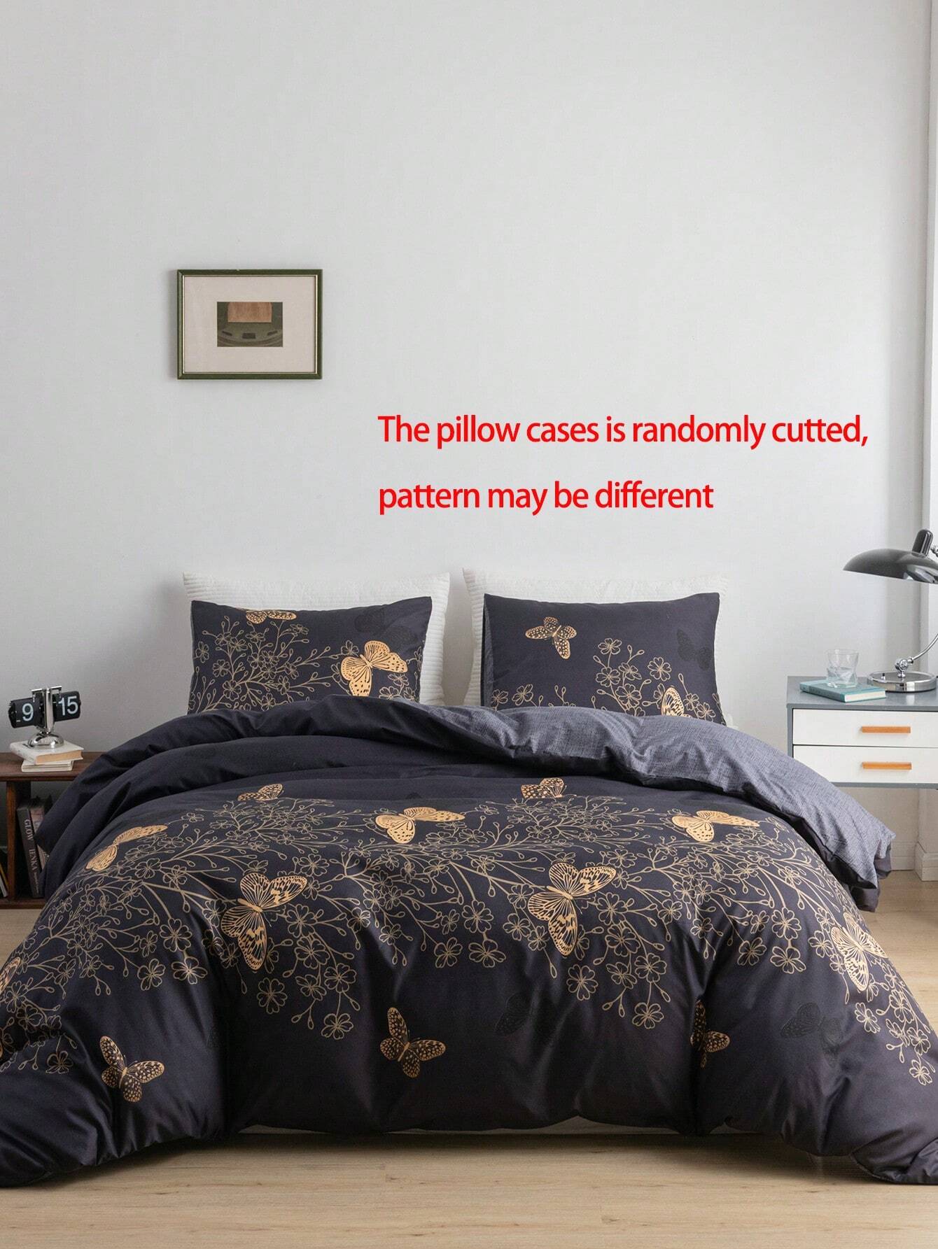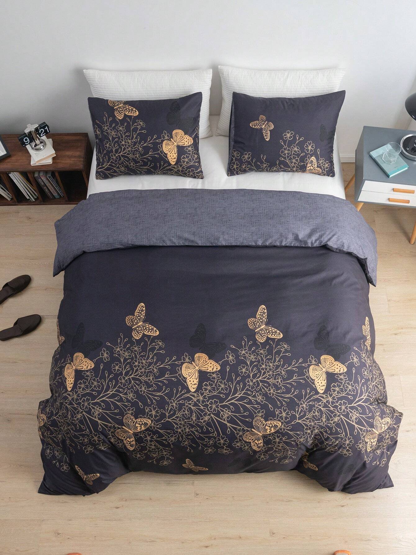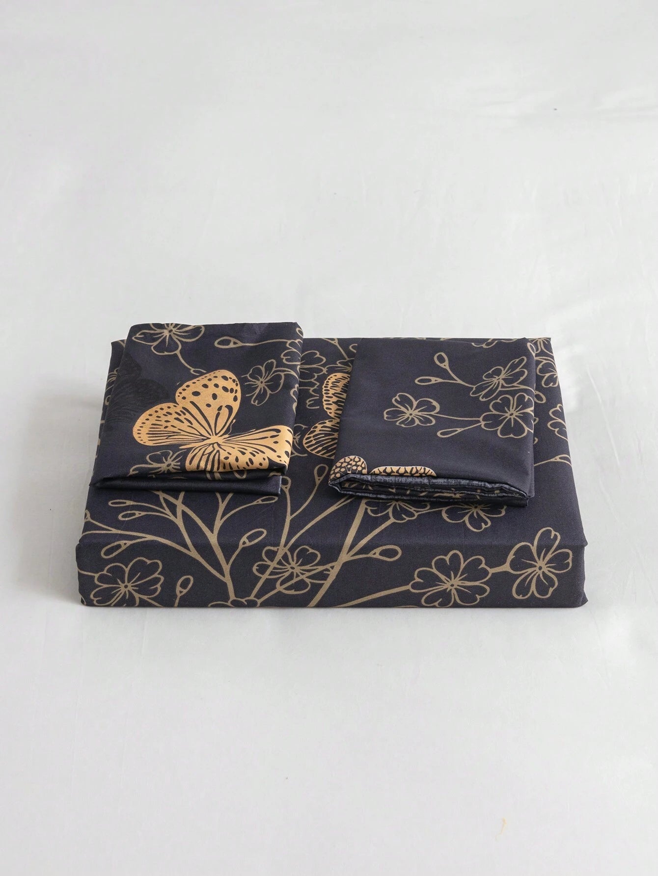 Set copripiumino e federa stampa farfalle oro in morbido poliestere