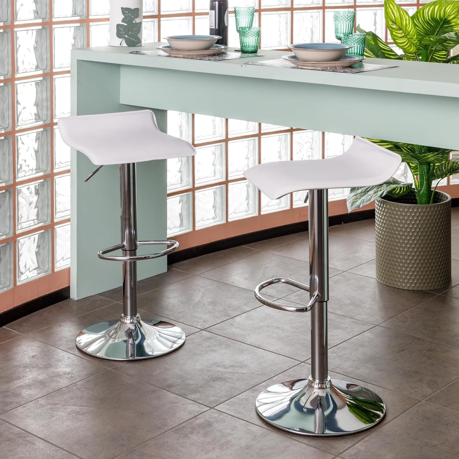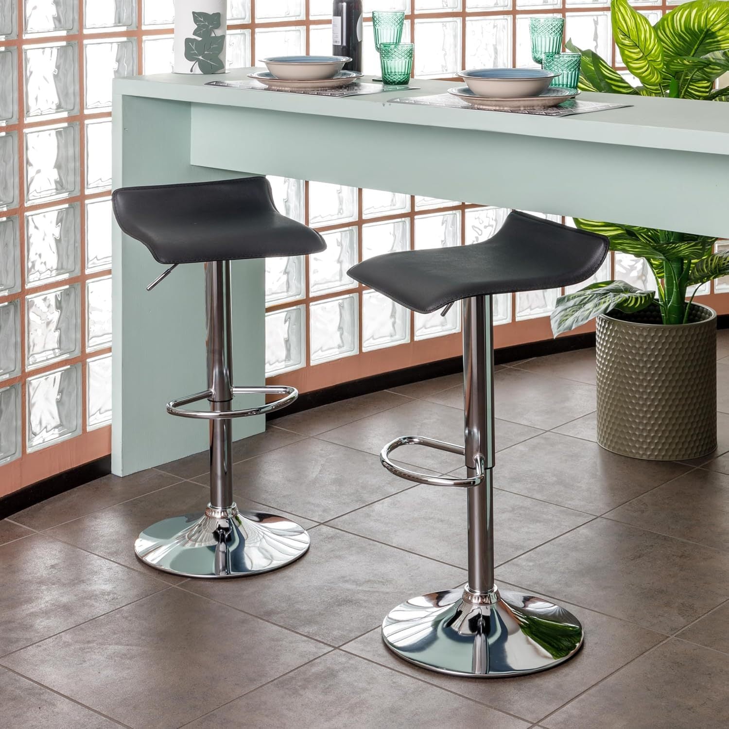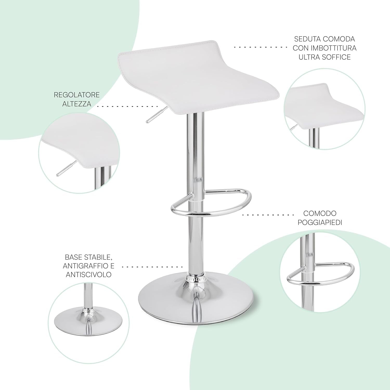 Sgabello Bar Girevole con Altezza Regolabile, Base Cromata
