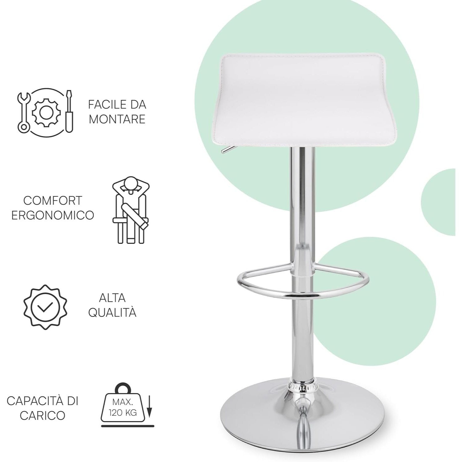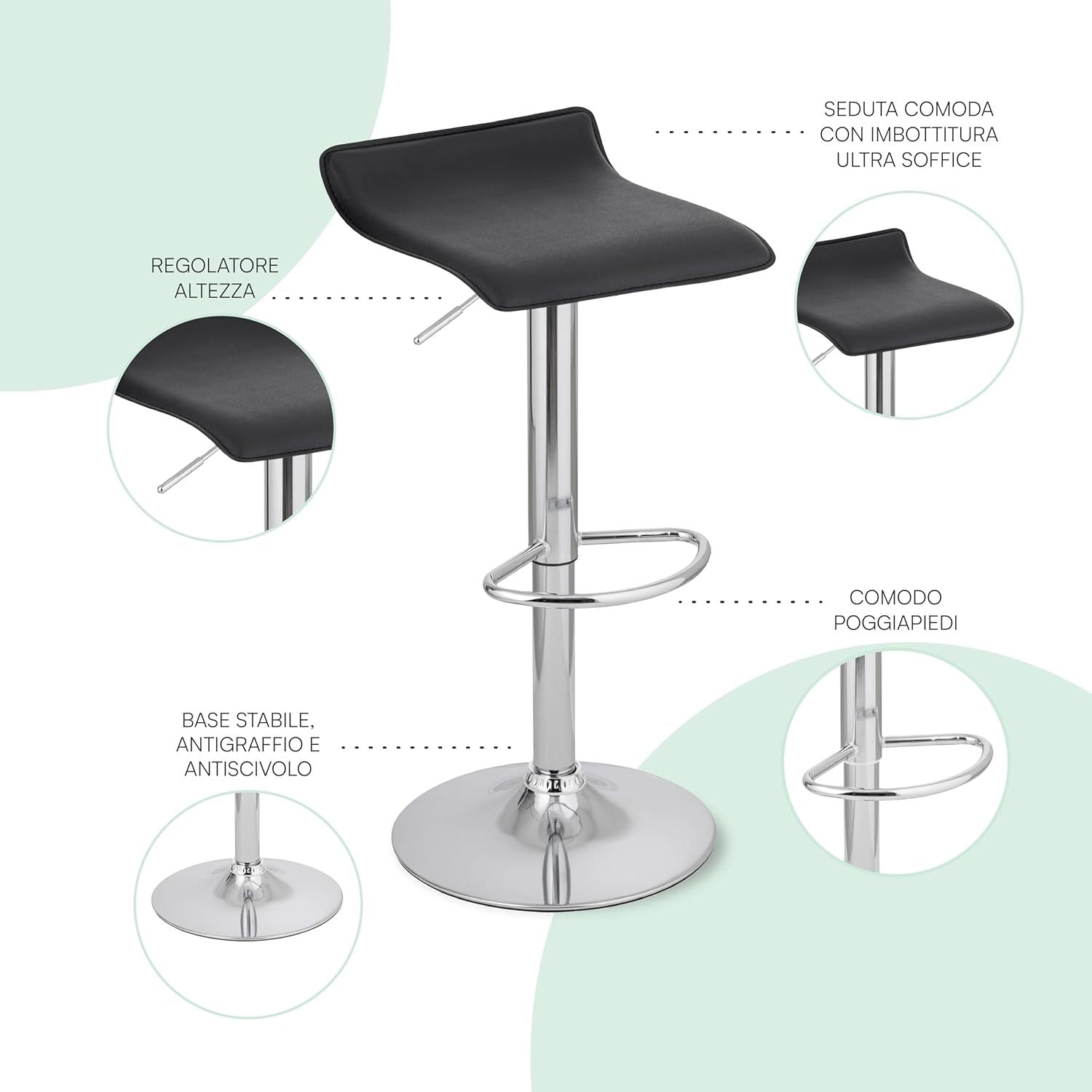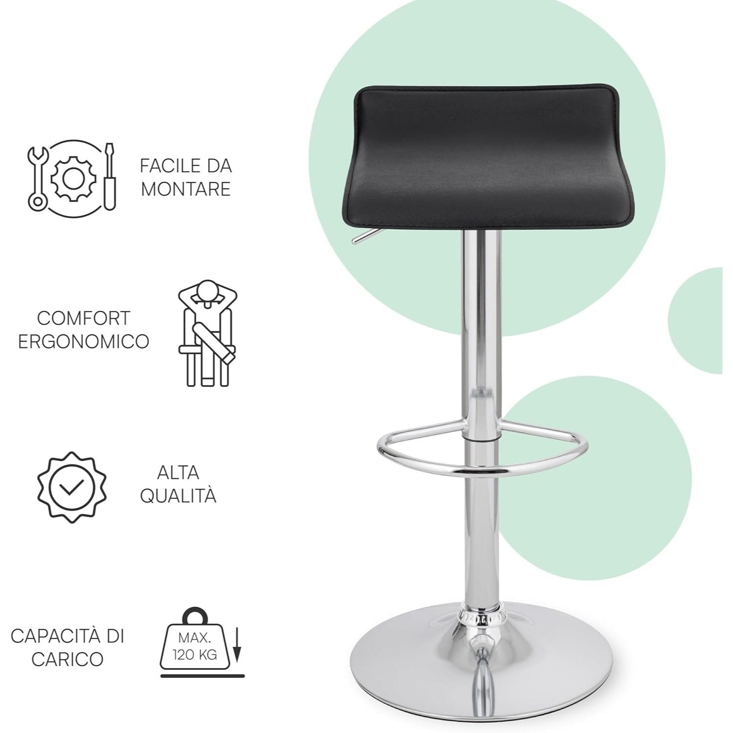 - MATERIALI ROBUSTI E DI QUALITÀ - La seduta dello sgabello è rivestita in ecopelle