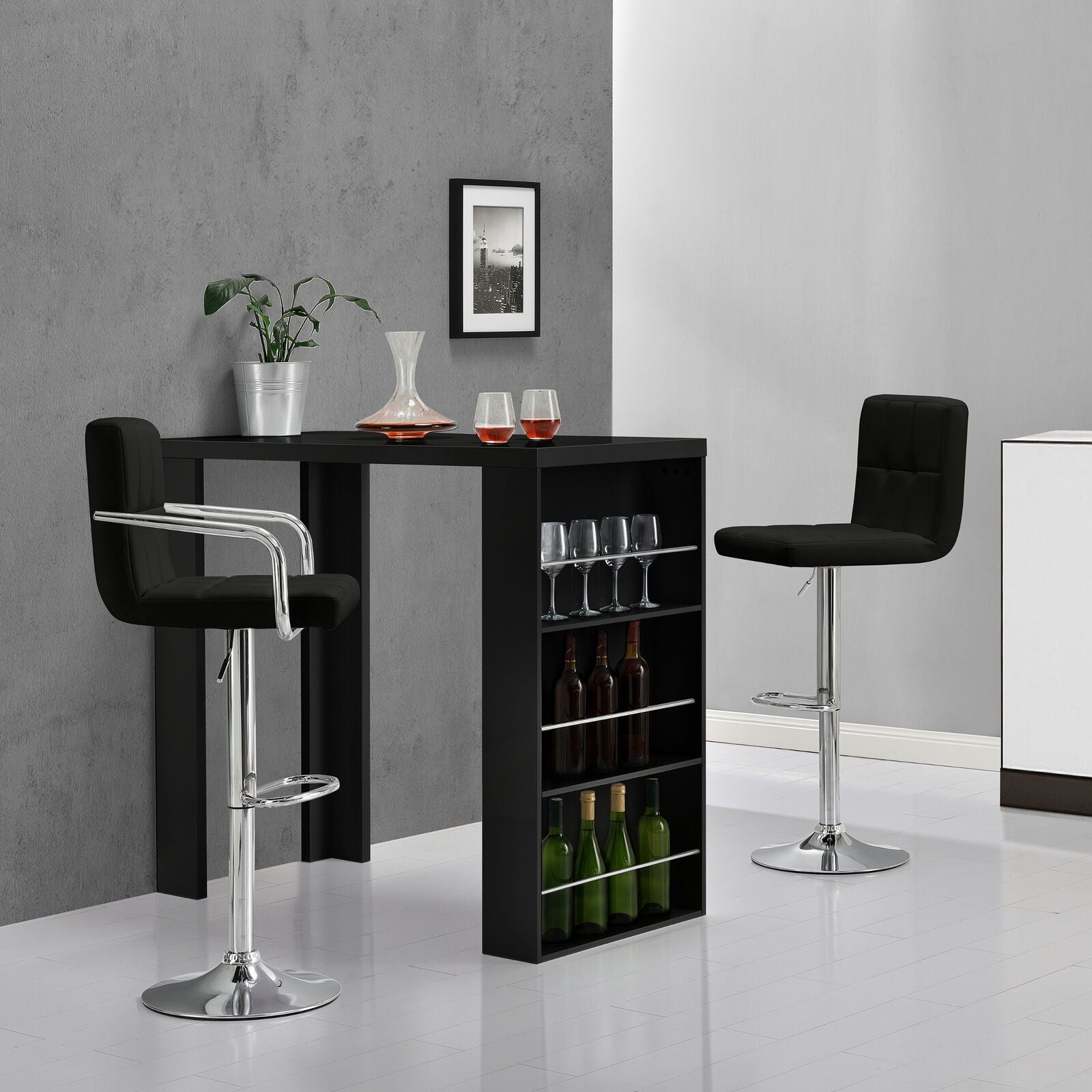 Tavolo da bar elegante con bar integrata Dettagli del prodotto: - bar integrata con 3 cassetti- Truciolare rivestito- Lavorazione stabile e di alta qualità- Facile da pulire- Facile e veloce da montareColore:neroMisure: Totale (lunghezza x larghezza x altezza): 117 x 57 x 106,5 cmMisure per un cassetto (lunghezza x larghezza x...