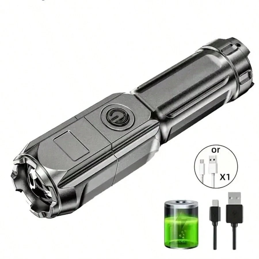 Illumina le tue avventure all'aperto con questa torcia LED ricaricabile USB, perfetta per campeggio, pesca e caccia.