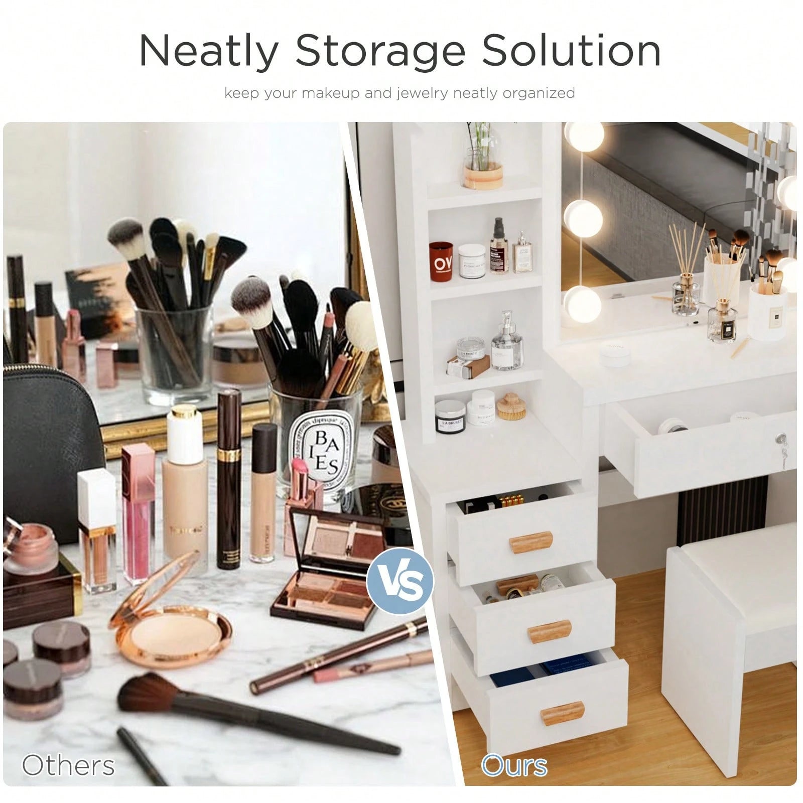Le vanità garantiscono ampio spazio di stoccaggio per i tuoi articoli da bagno, mentre le panche abbinate aggiungono comfort e stile.