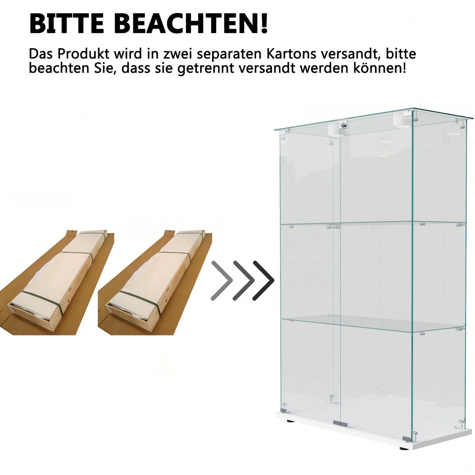 Vetrina in vetro autoportante con 3 ripiani in vetro e 2 ante in vetro temperato, vetrina multifunzionale con luce LED