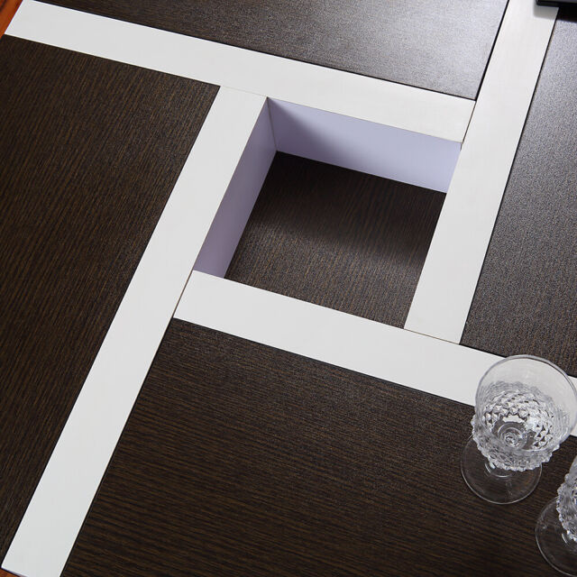 Le dimensioni di base del piano del tavolo sono quadrate e diffondono una sensazione di spazio elegante e moderna. La superficie non solo ha un aspetto chic, ma è anche facile da pulire.