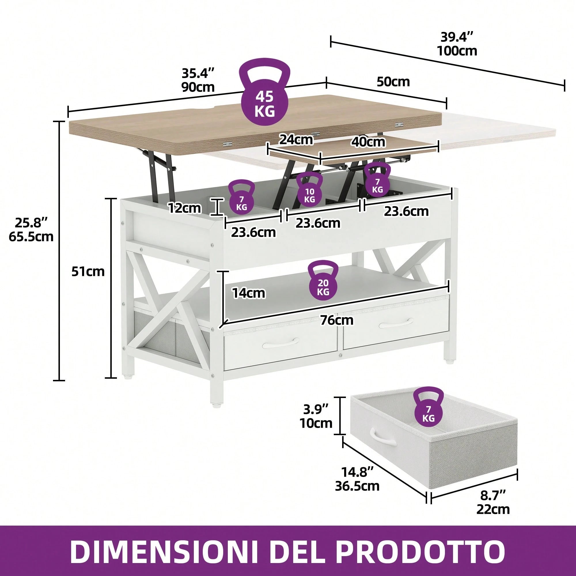 Con dimensioni di 90x55x41,1 cm, offre una superficie ampia ideale per esporre oggetti decorativi o appoggiare bevande.