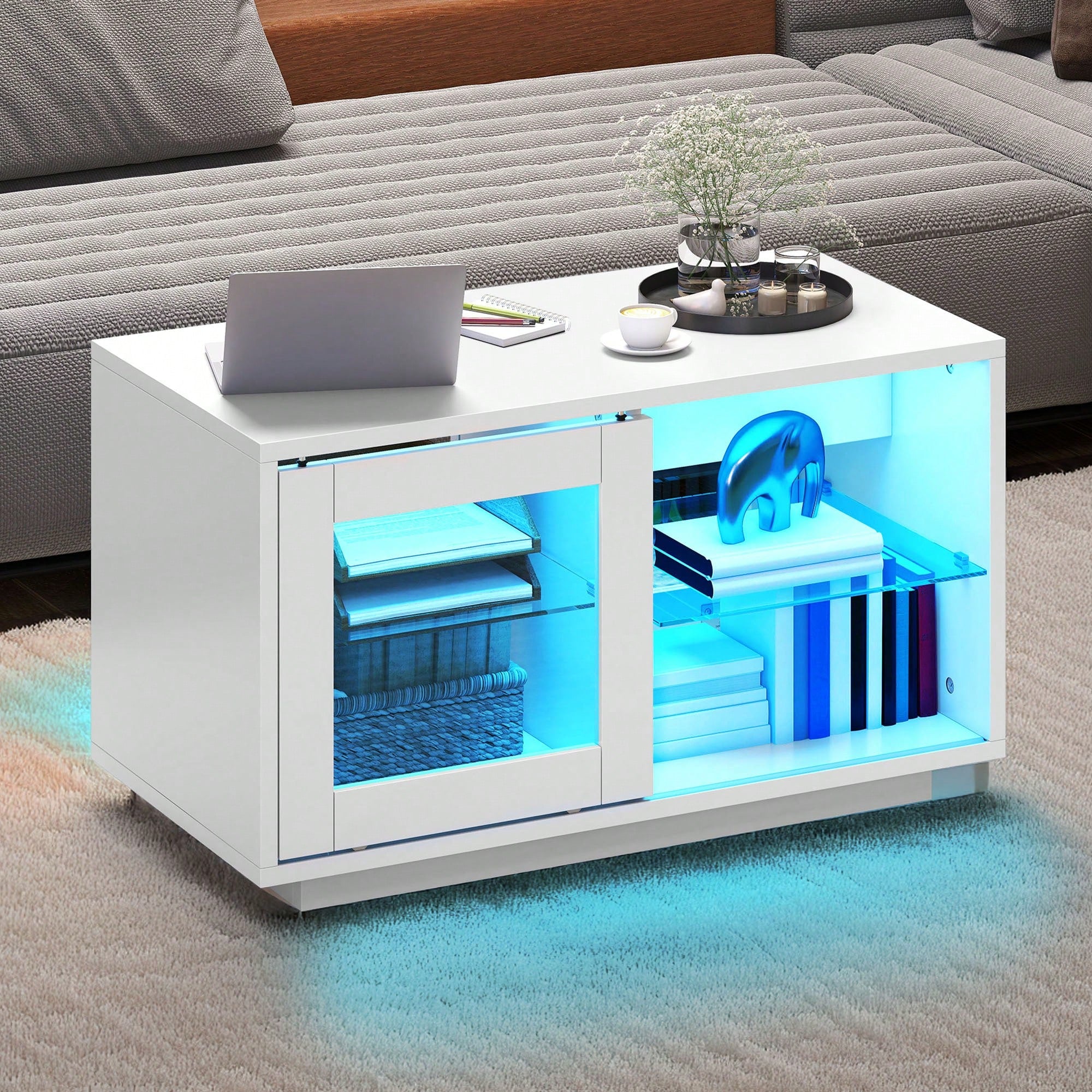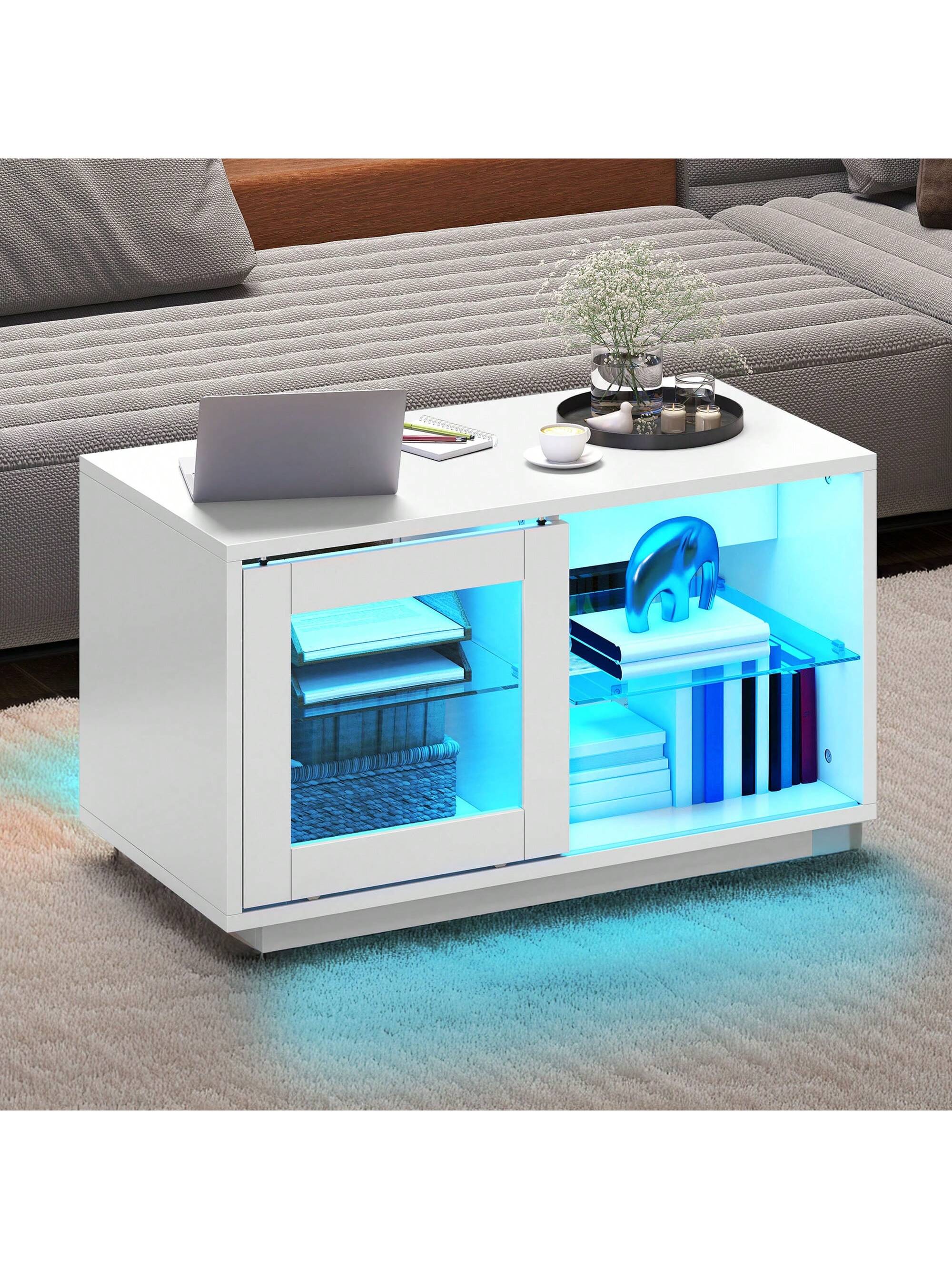 Trasforma il tuo soggiorno con questo elegante tavolino da caffè bianco lucido.