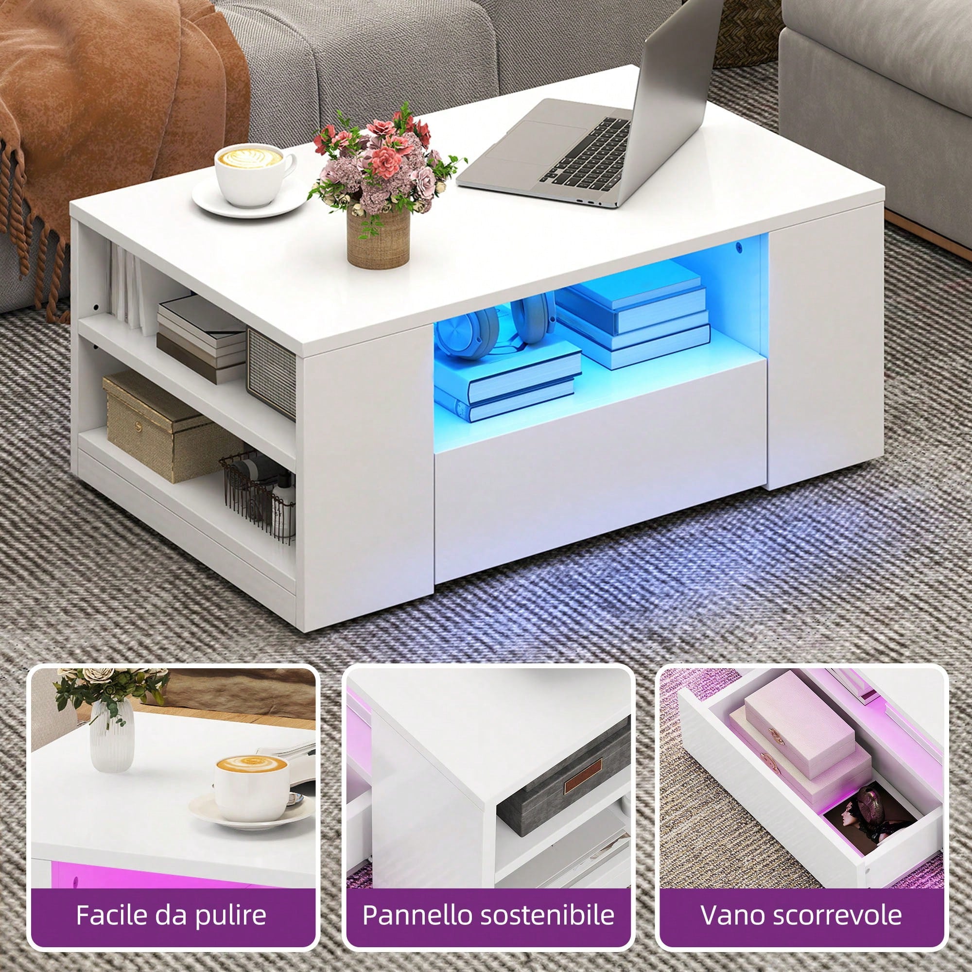 Soluzione versatile per chi cerca un tavolino che unisce praticità e stile moderno nel soggiorno.