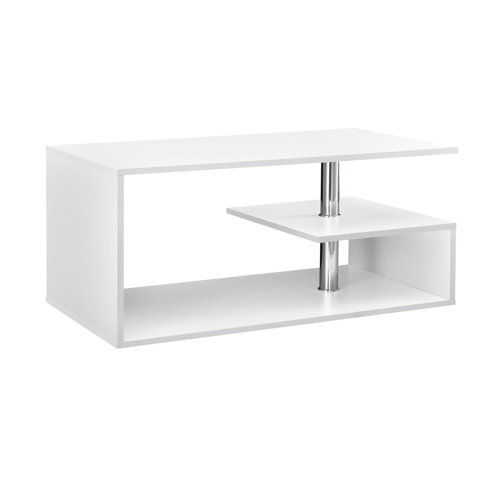 Tavolino da Salotto 3 Mensole 90x50x41cm da Caffè Truciolato Bianco