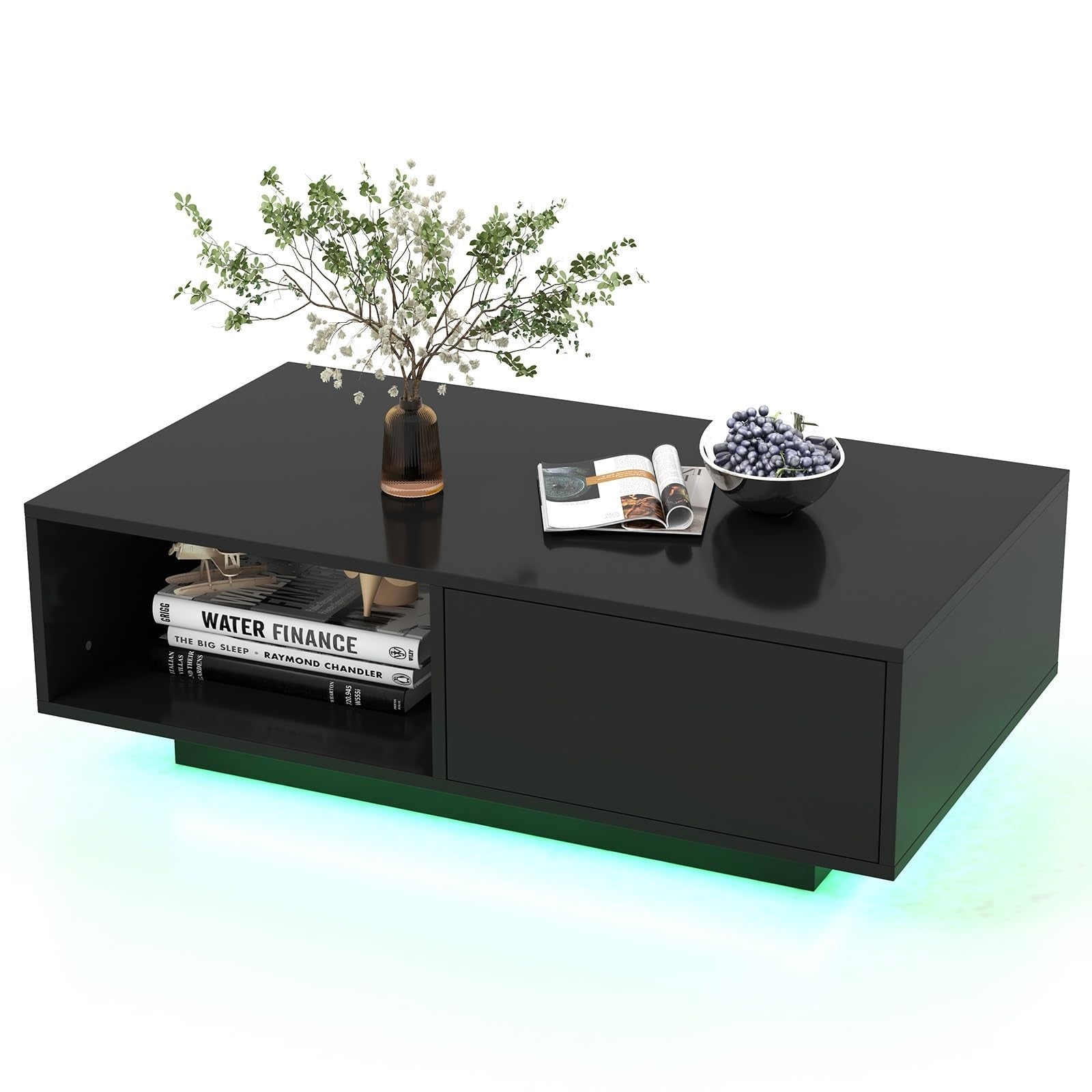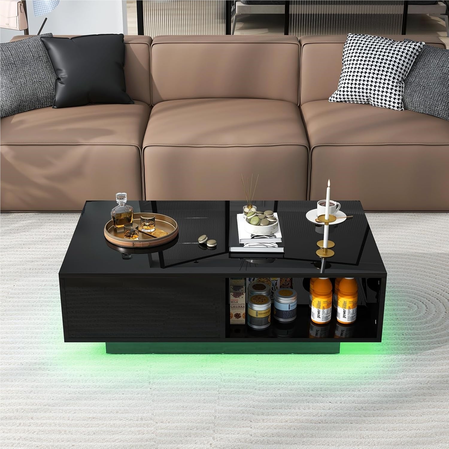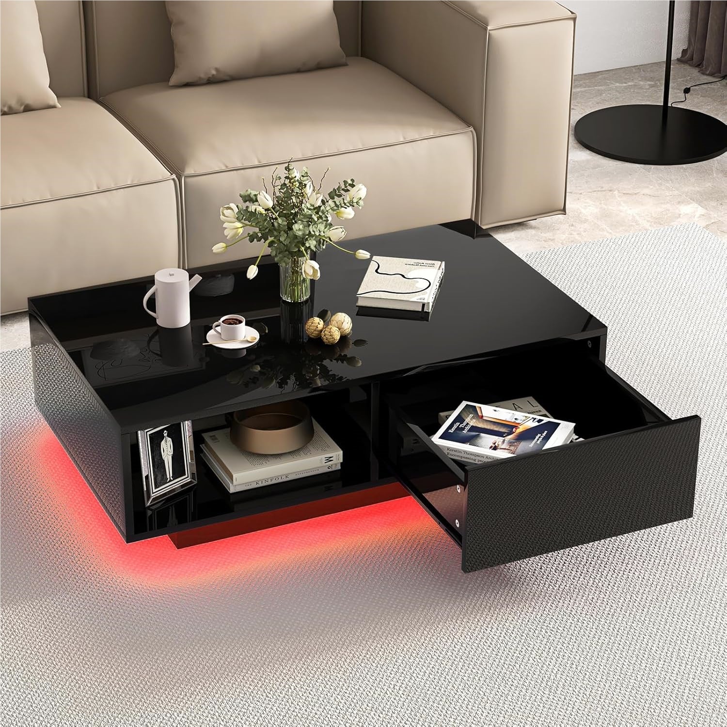 Tavolino LED con 20 colori statici e 5 livelli di regolazione della luminosità, 22 modalità dinamiche e 10 livelli di regolazione della velocità, controllabile tramite telecomando 【Finitura Lucida e Resistente】Il tavolino centrale presenta una finitura PET lucida e affascinante che non solo gli conferisce un aspetto moderno, ma offre anche...