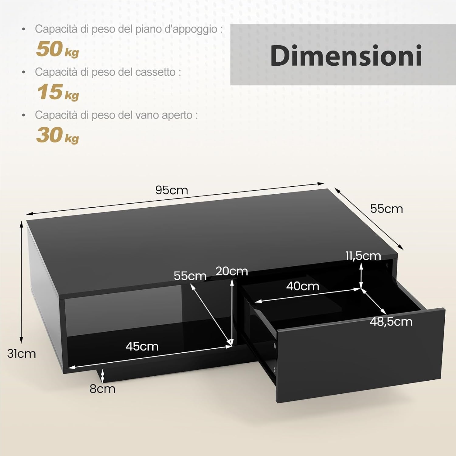 - 【Finitura Lucida e Resistente】Il tavolino centrale presenta una finitura PET lucida