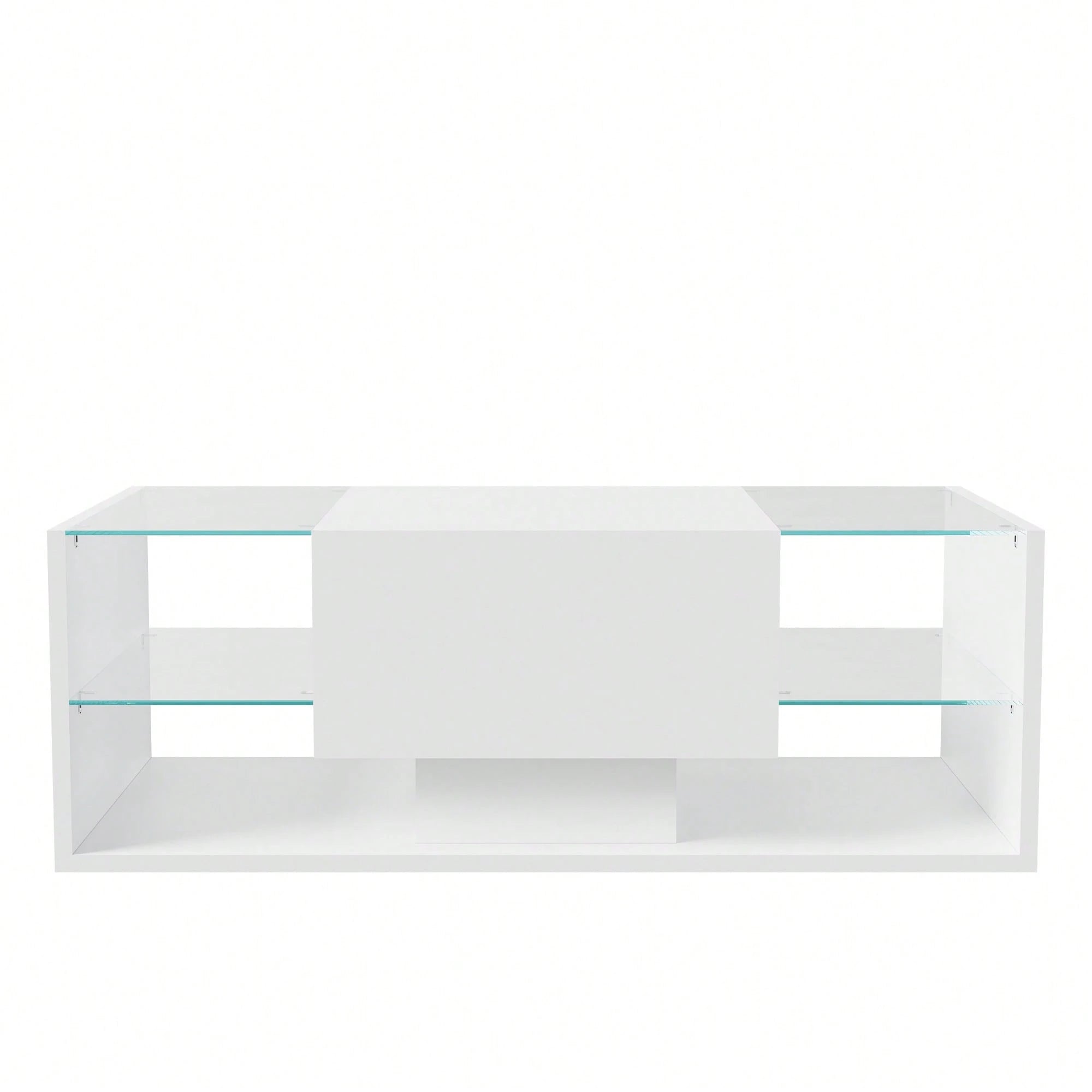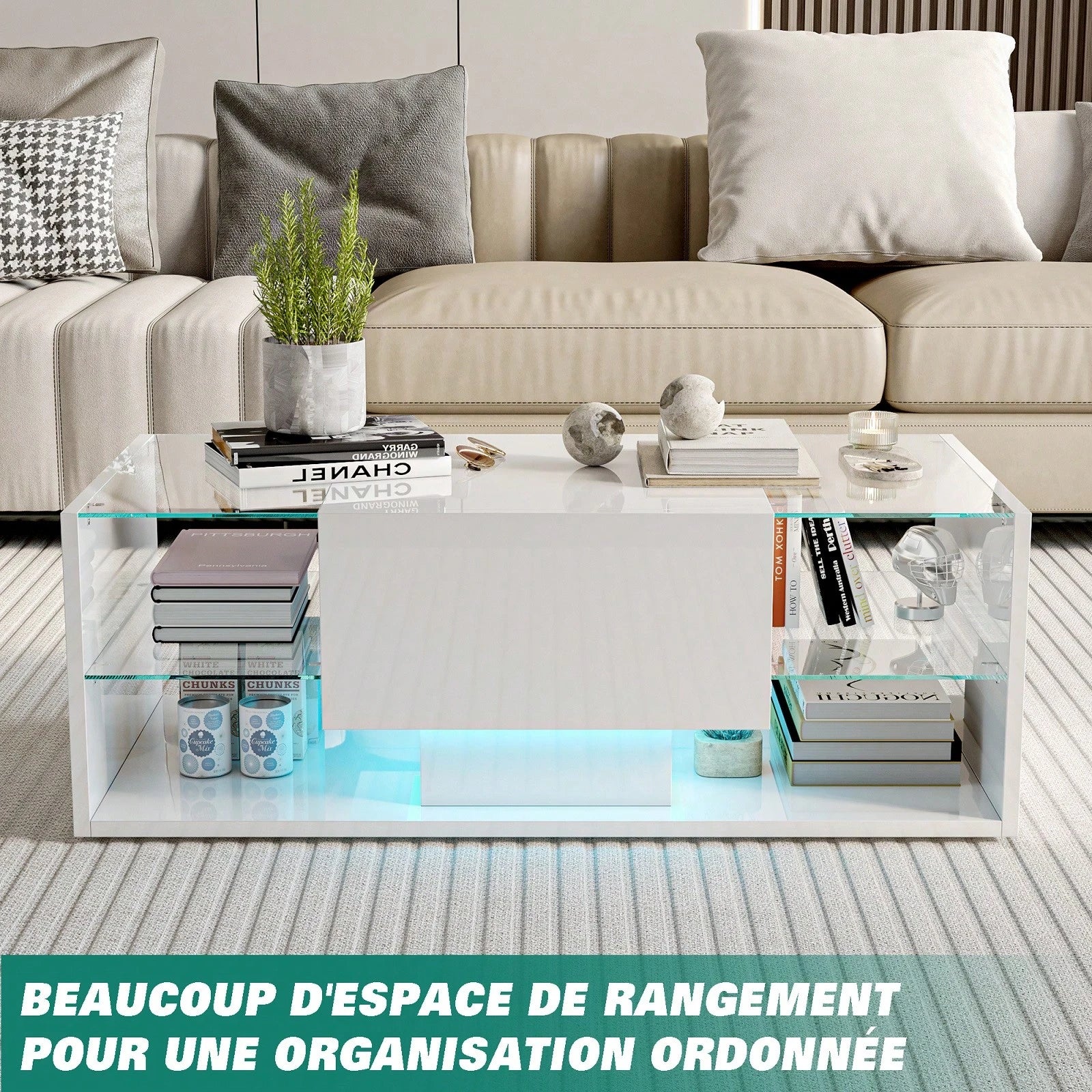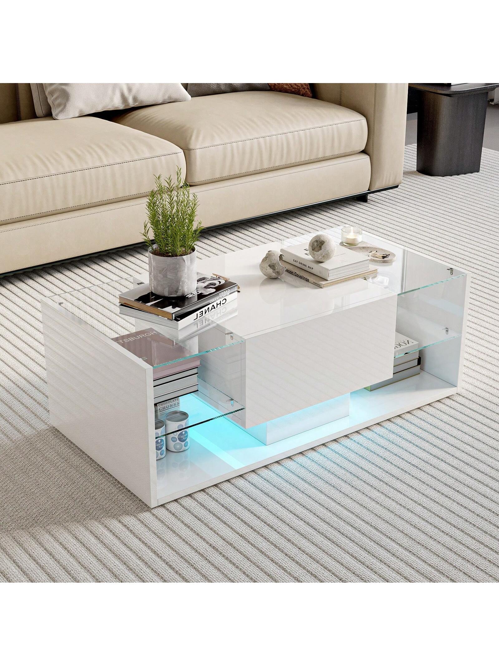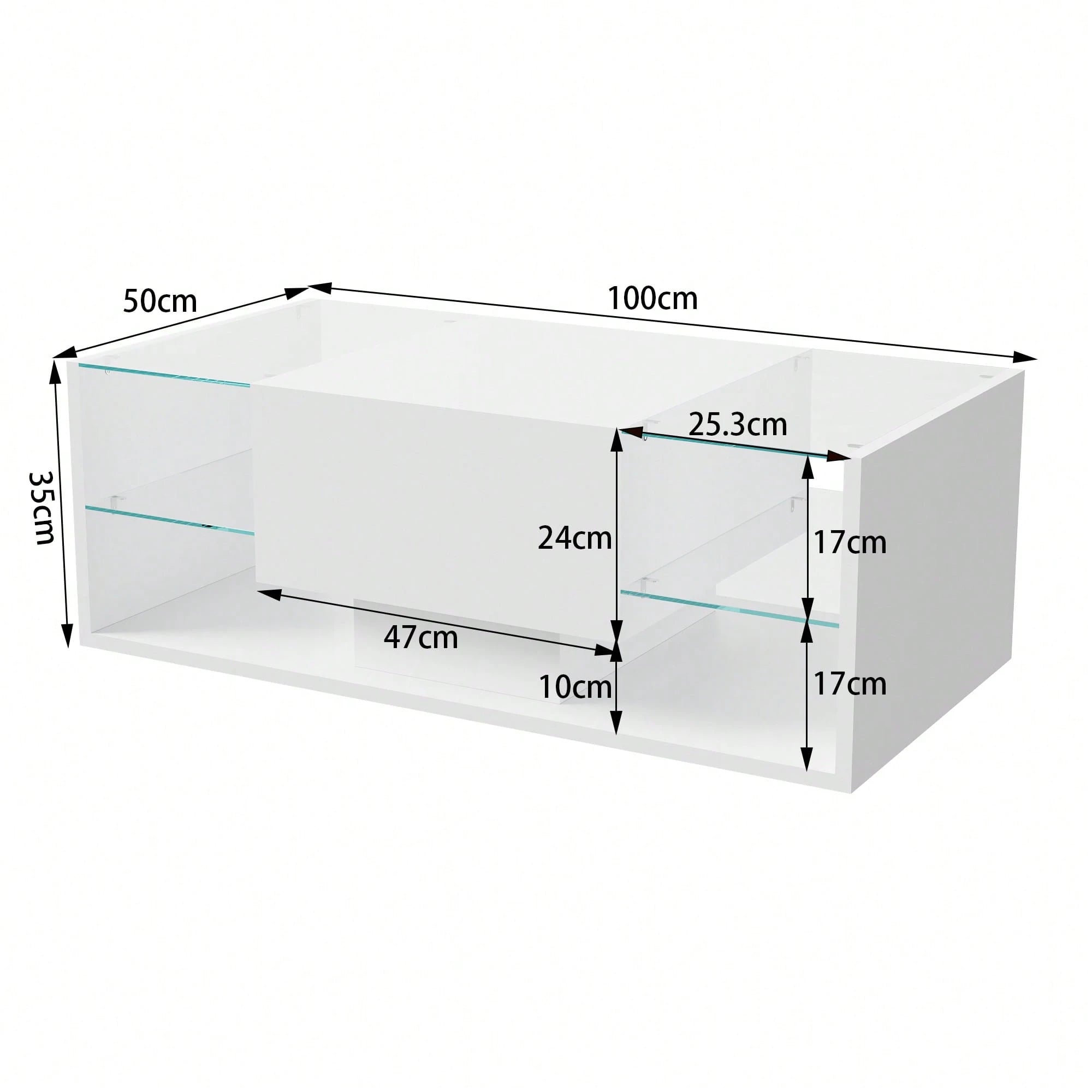 Tavolino moderno per il soggiorno con contenitore, tavolino lucido in MDF e vetro temperato