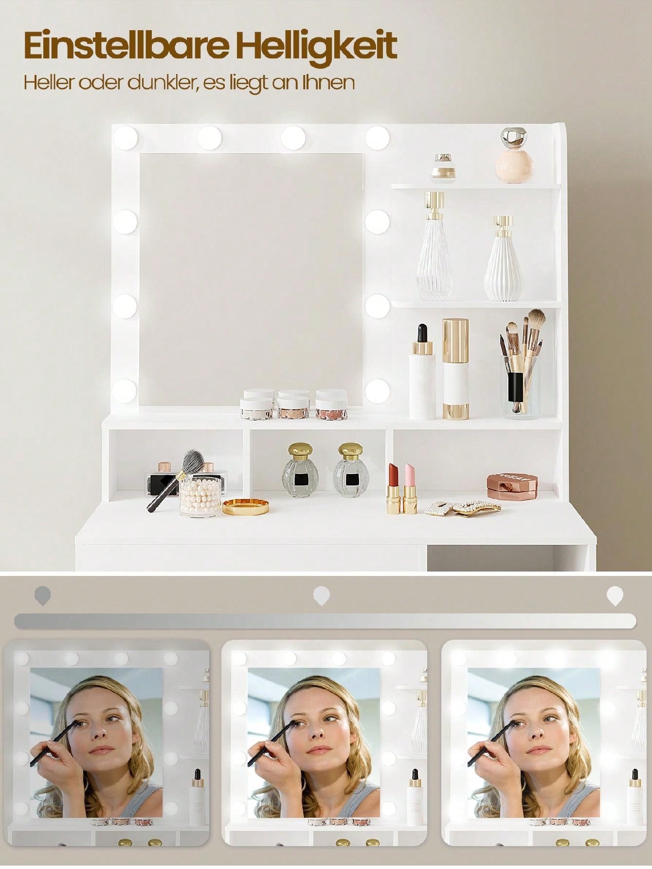 Toeletta da Trucco, Luminosità Regolabile, Tavolo da Trucco con Specchio Grande,