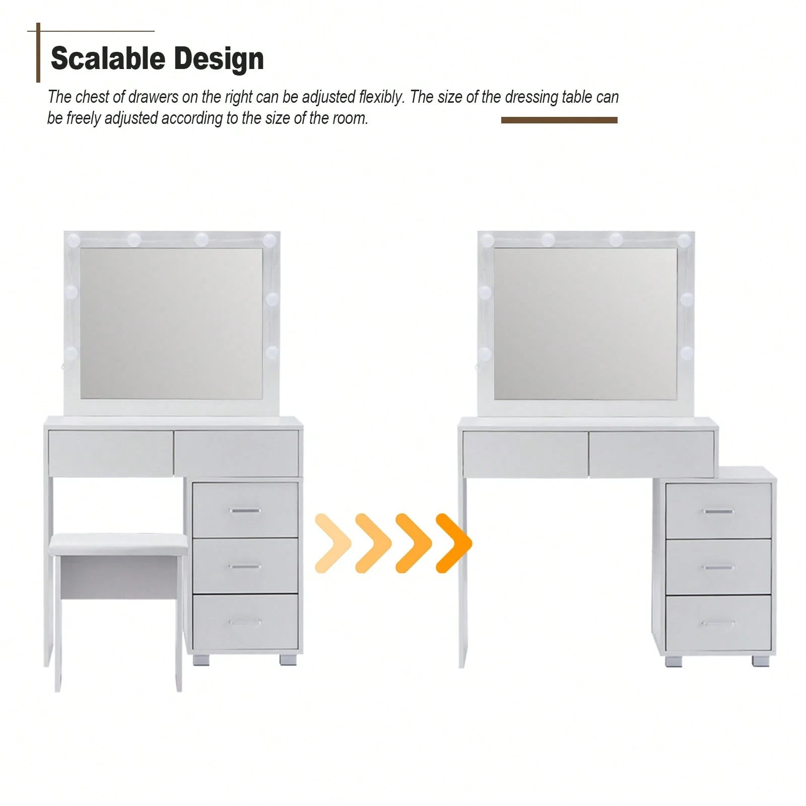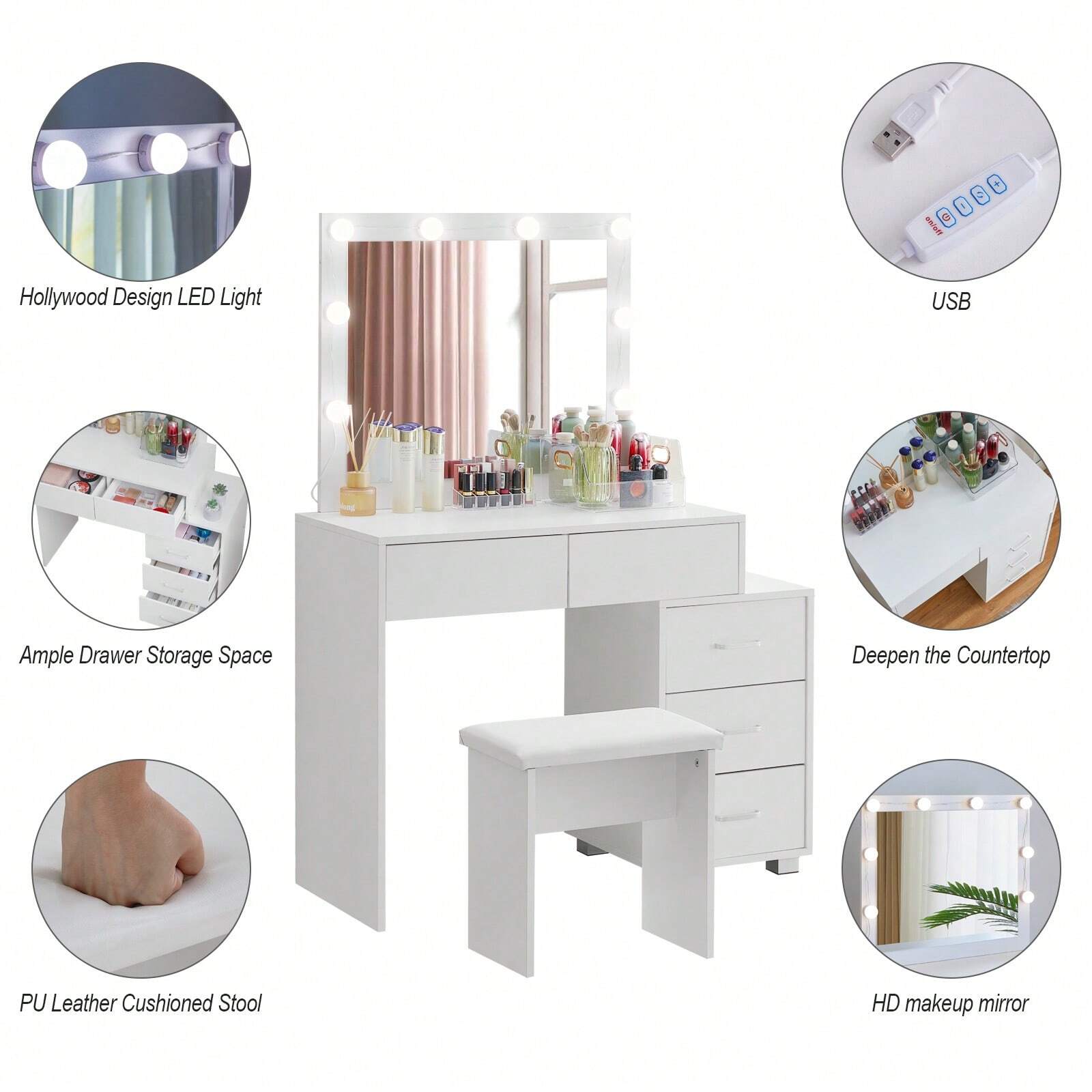 Stazione parrucchiere professionale completa con specchio a LED integrato e illuminazione regolabile a 3 livelli per un'applicazione del trucco precisa. La struttura angolare ottimizza lo spazio, ideale per saloni e uso domestico. Dotata di sgabello ergonomico e sistema di storage intelligente con 3 cassetti e ripiani per organizzare strumenti e...
