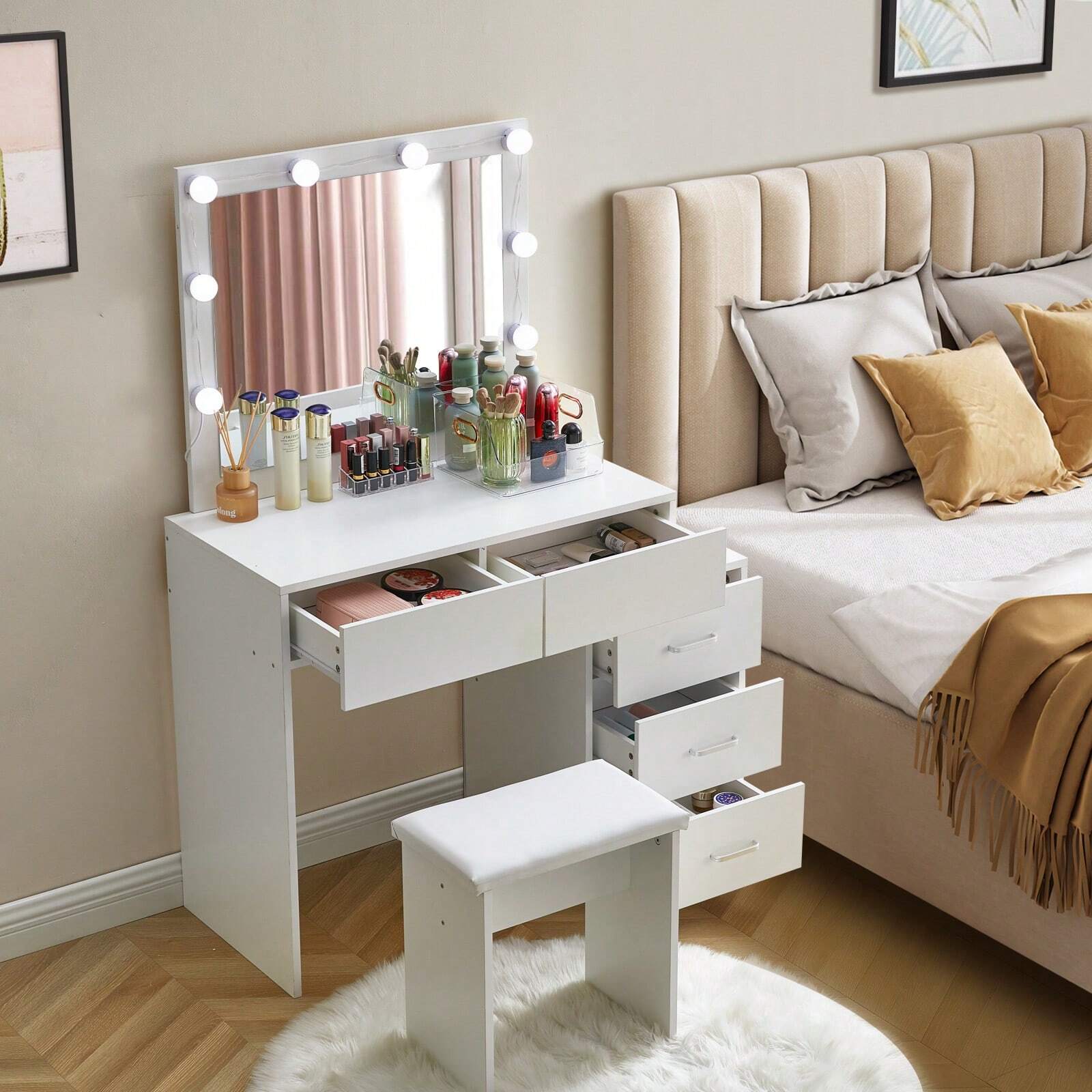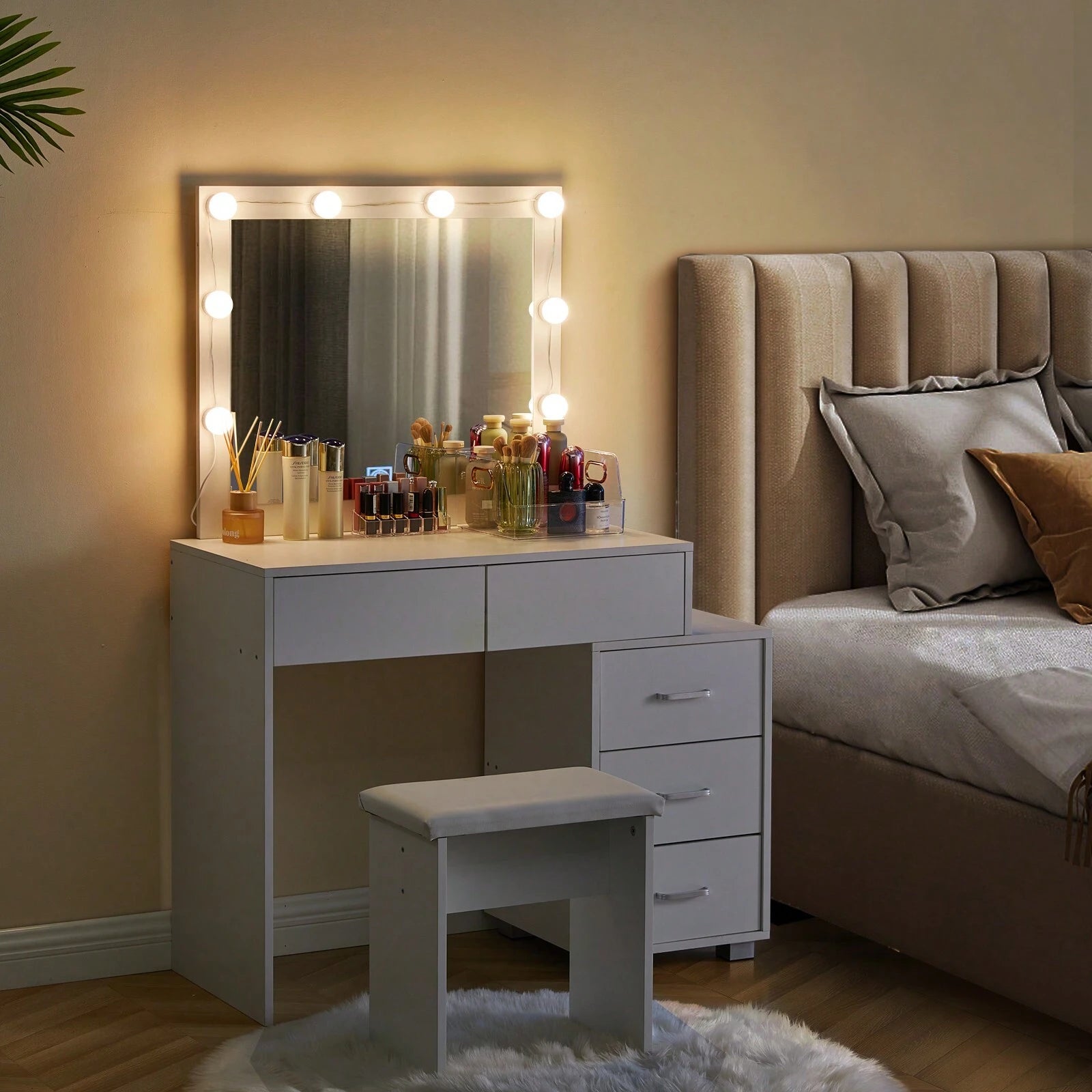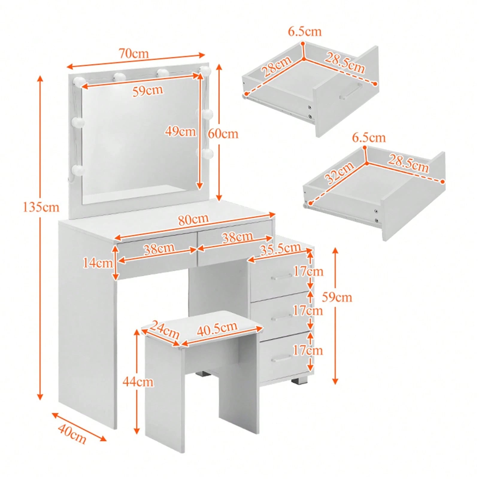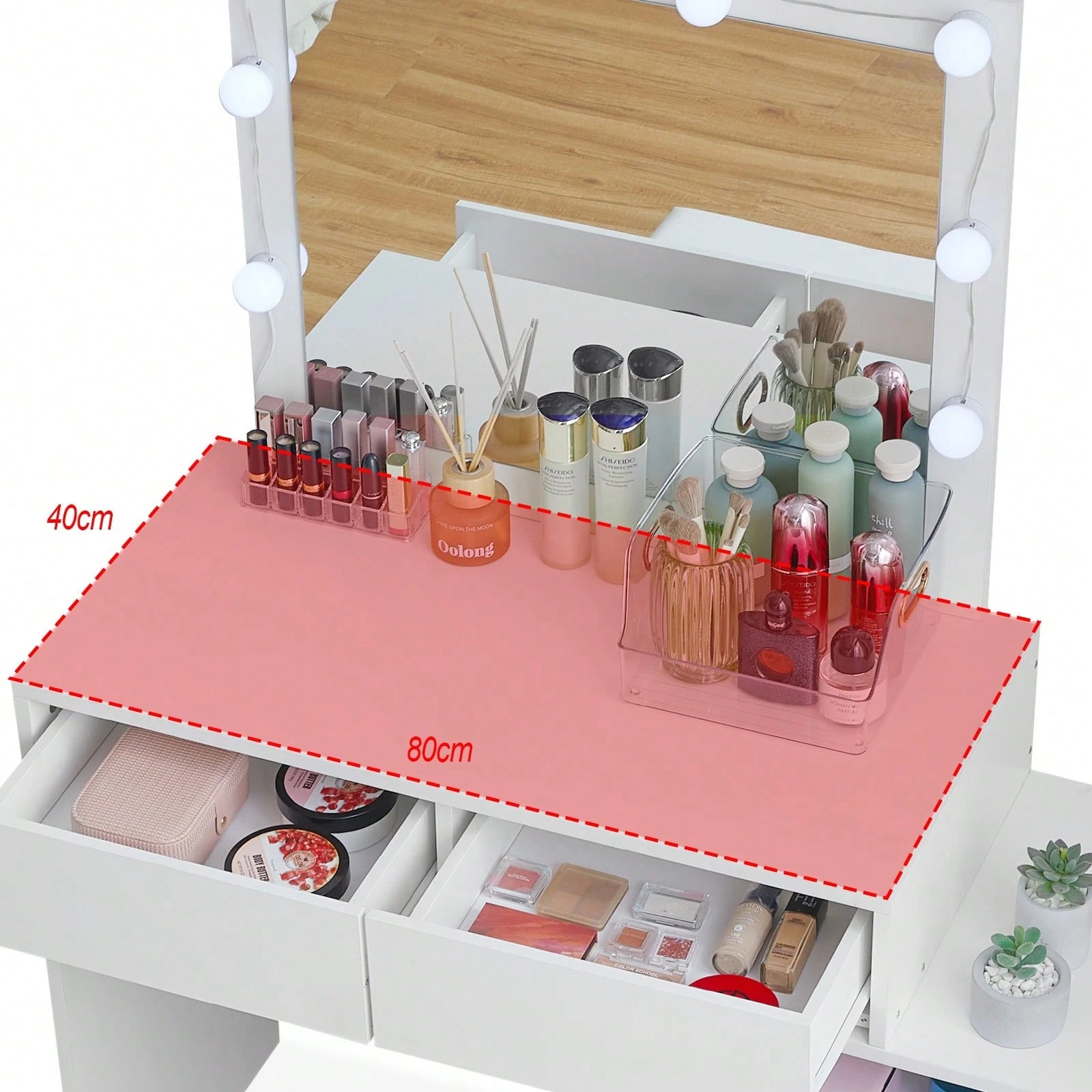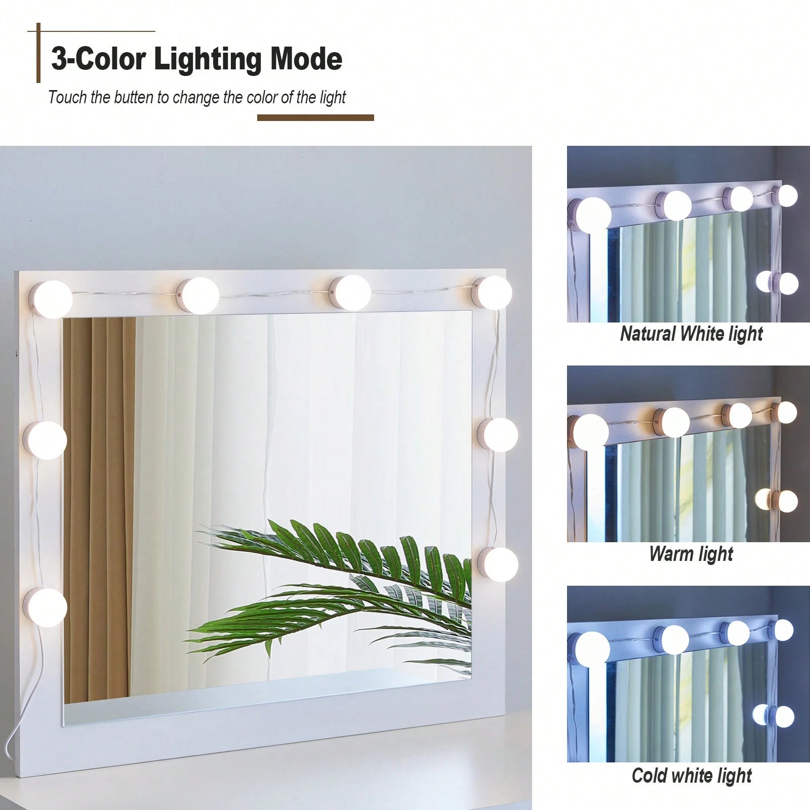 Stazione parrucchiere professionale completa con specchio a LED integrato e illuminazione regolabile a 3 livelli per un'applicazione del trucco precisa.