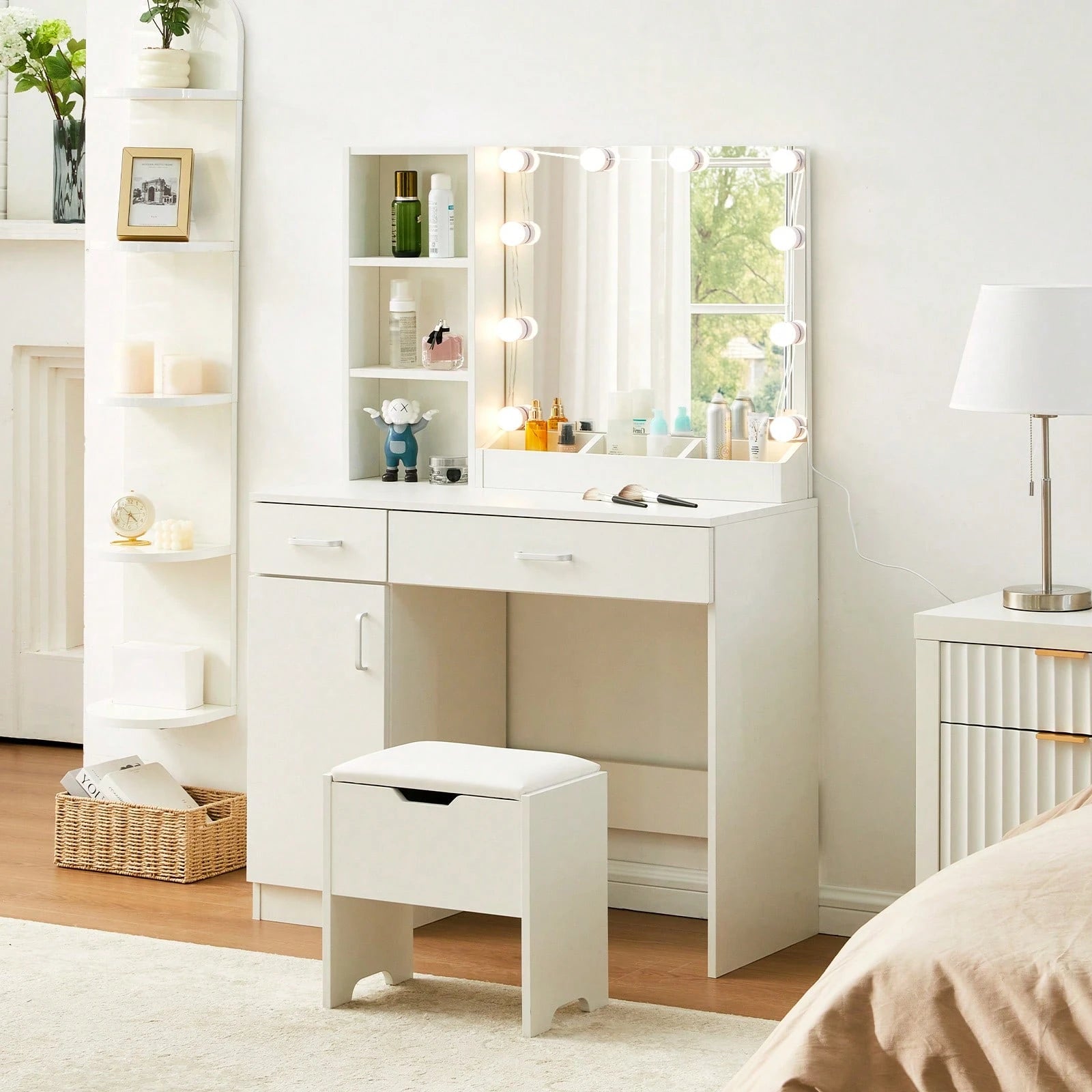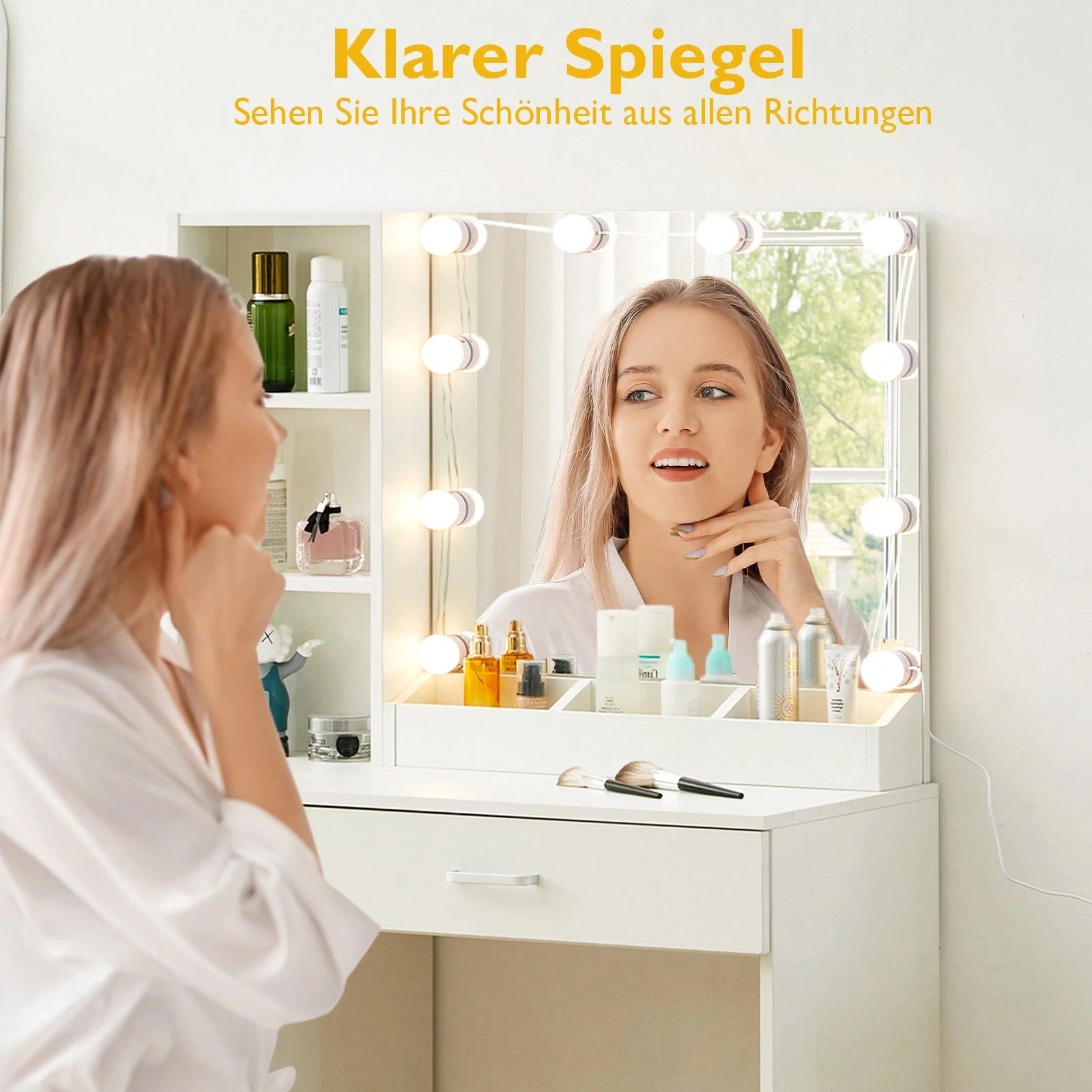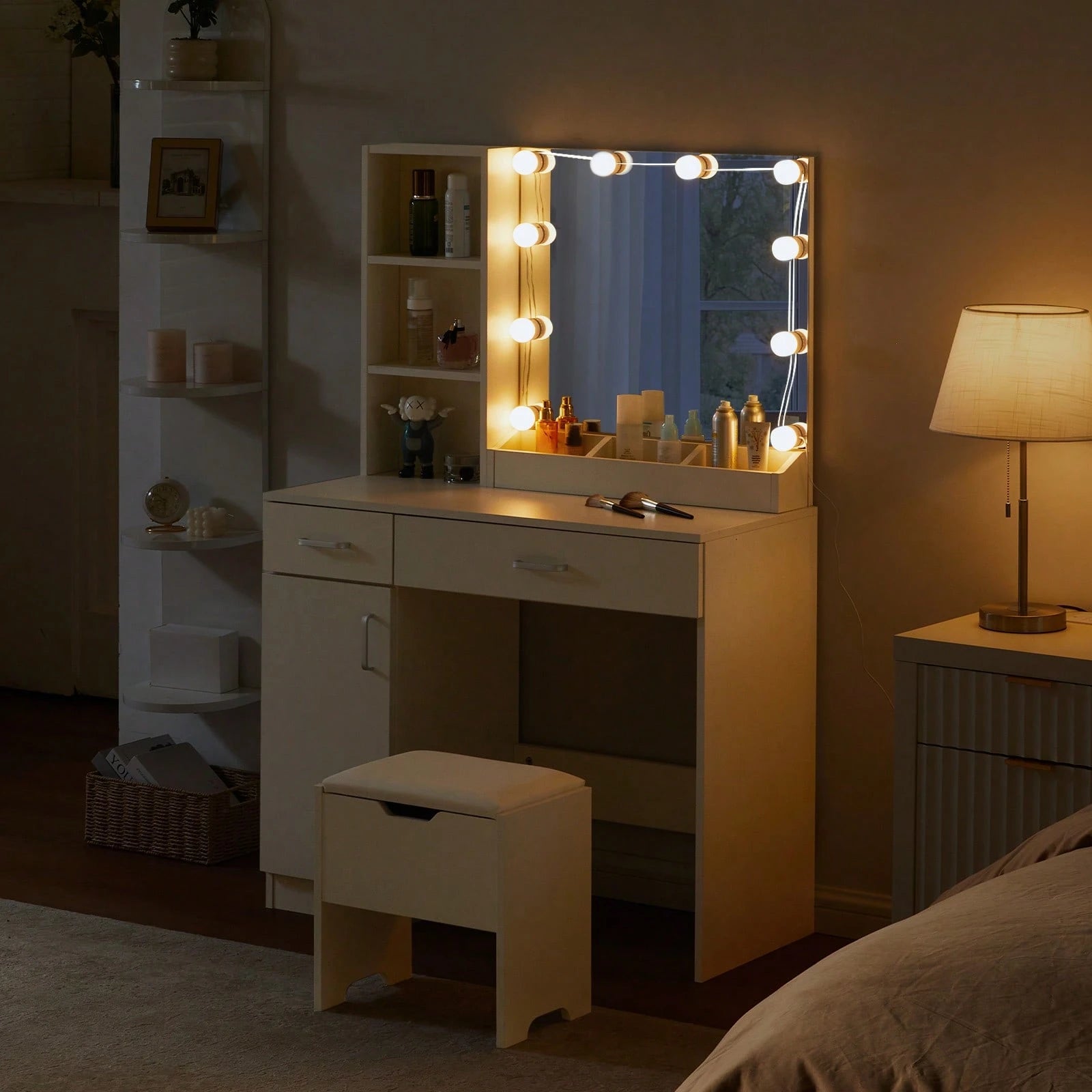 Trasforma la tua routine di bellezza con questo elegante set da toeletta bianco dotato di illuminazione professionale.