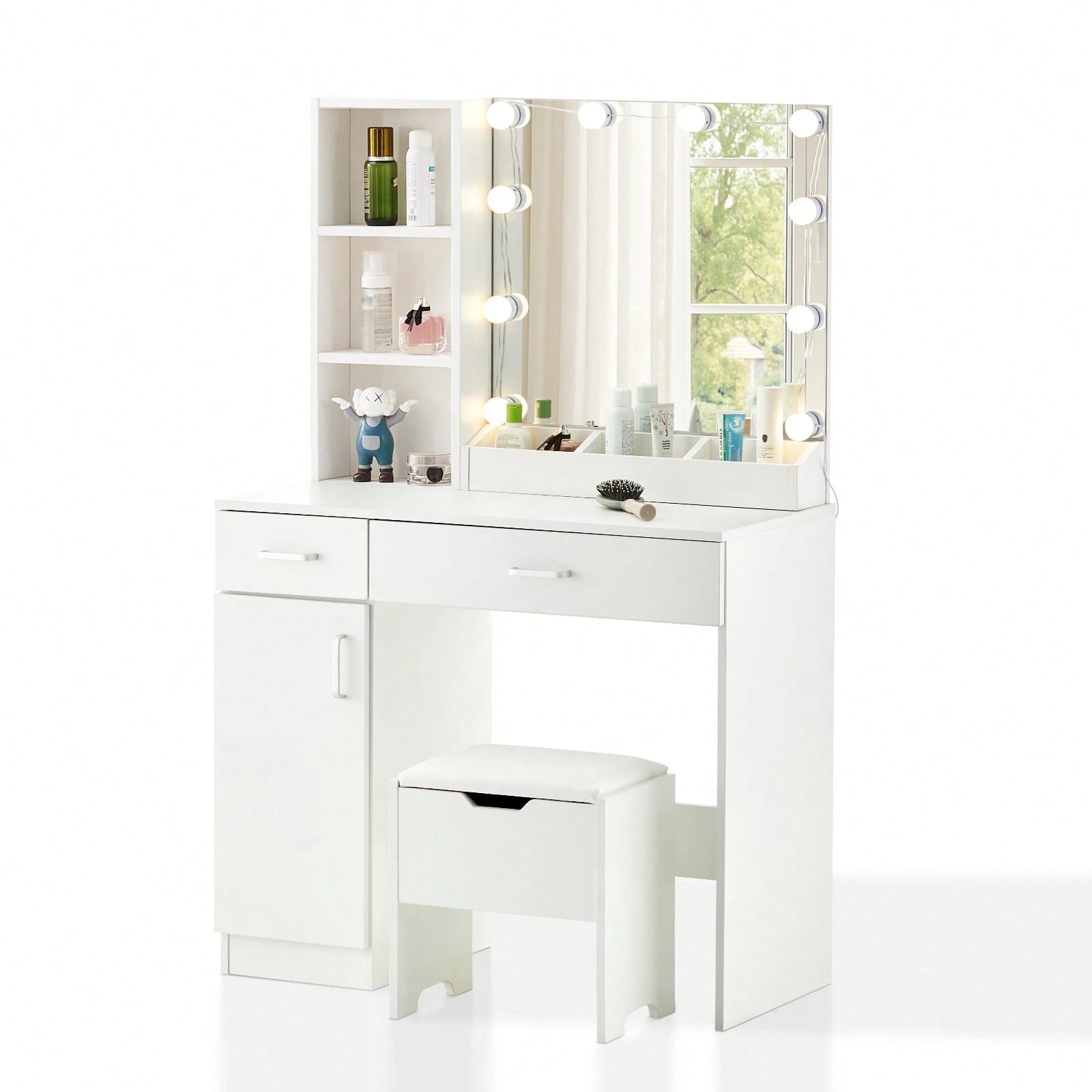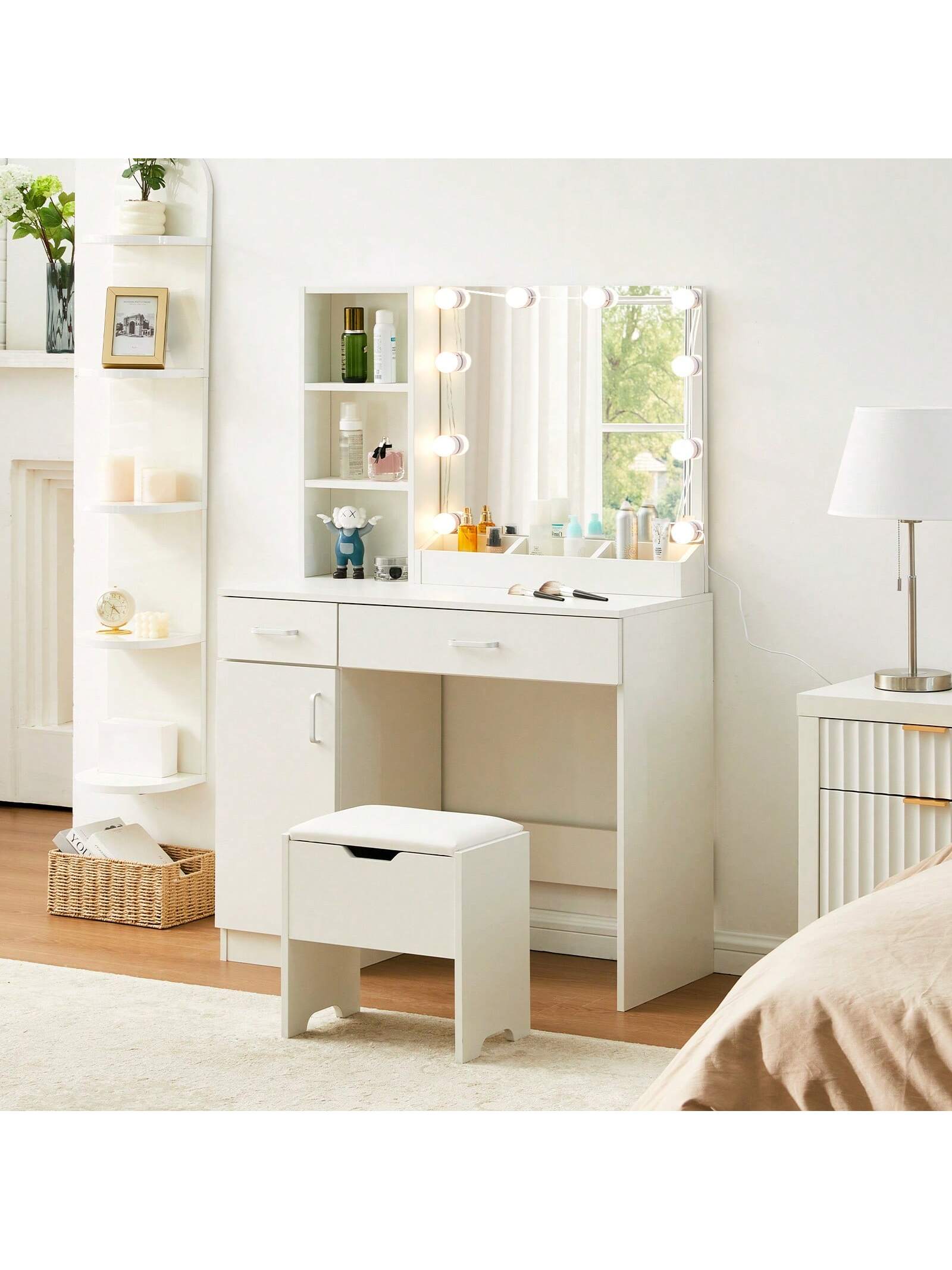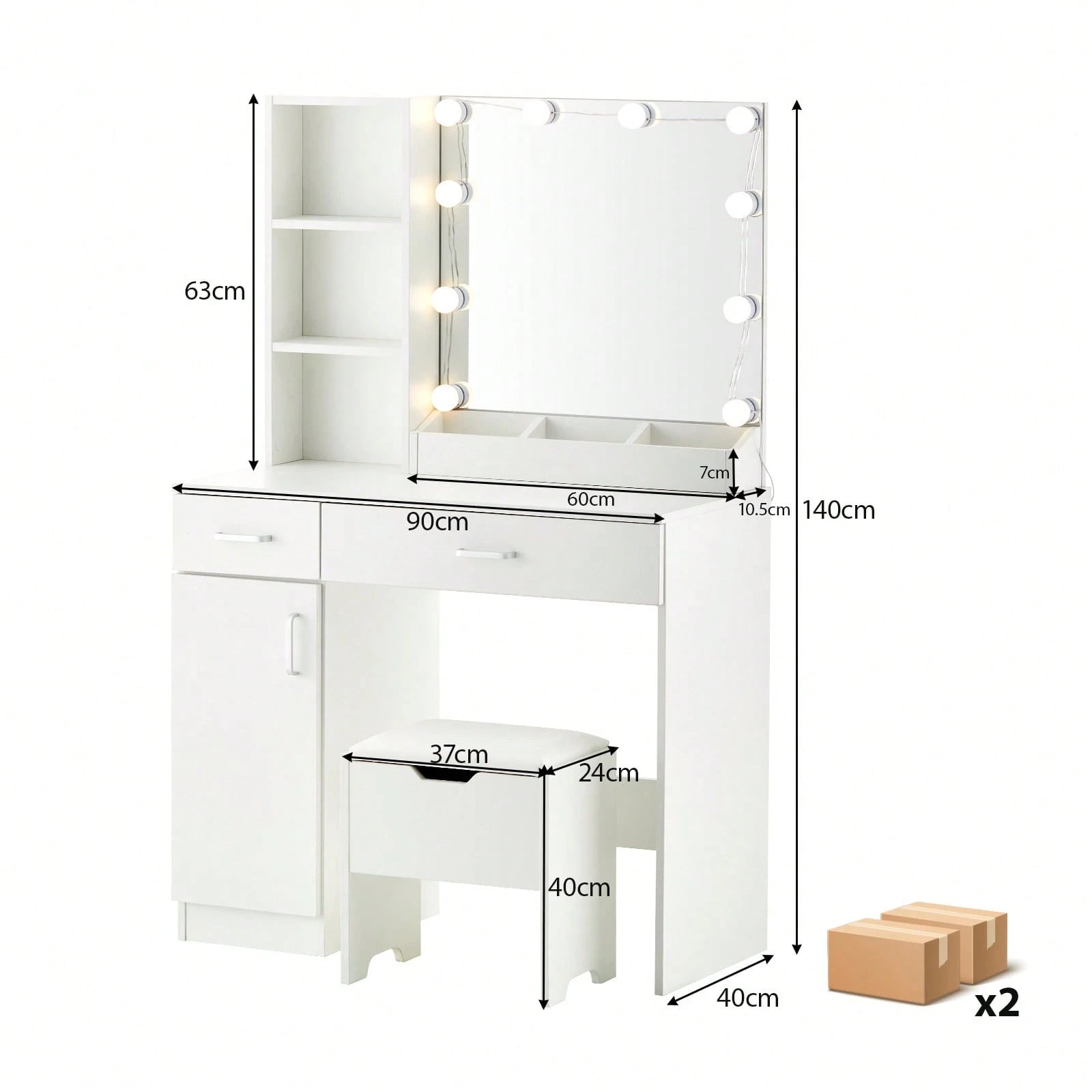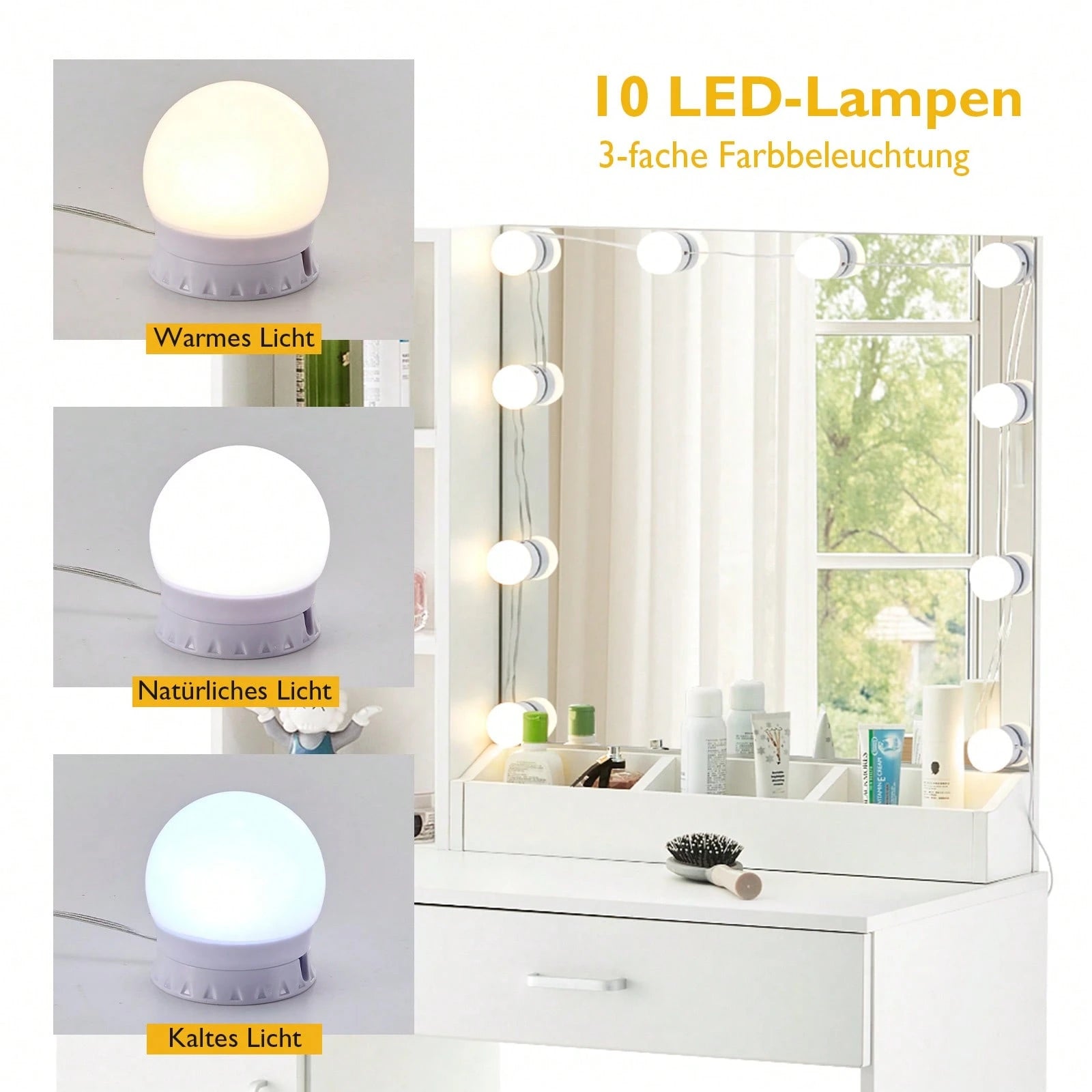 Trasforma la tua routine di bellezza con questo elegante set da toeletta bianco dotato di illuminazione professionale.