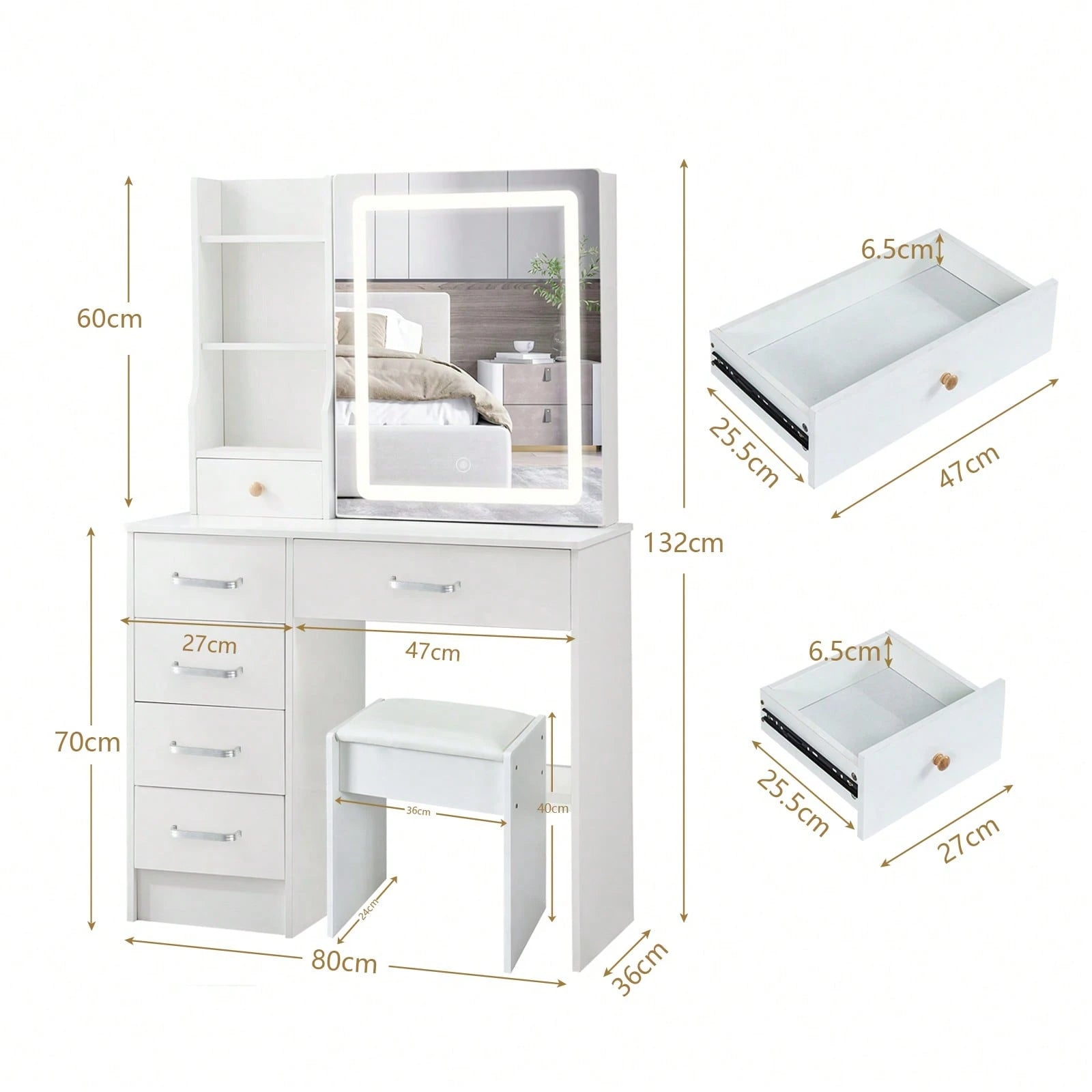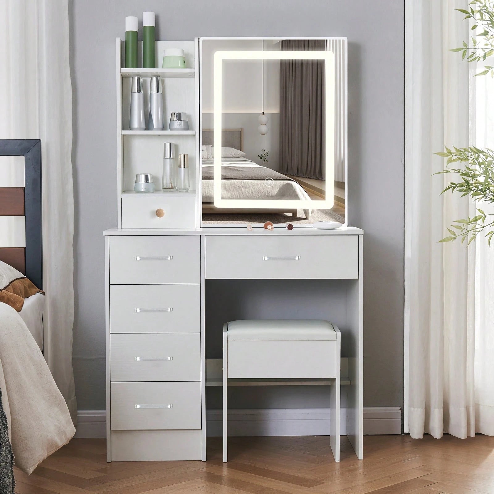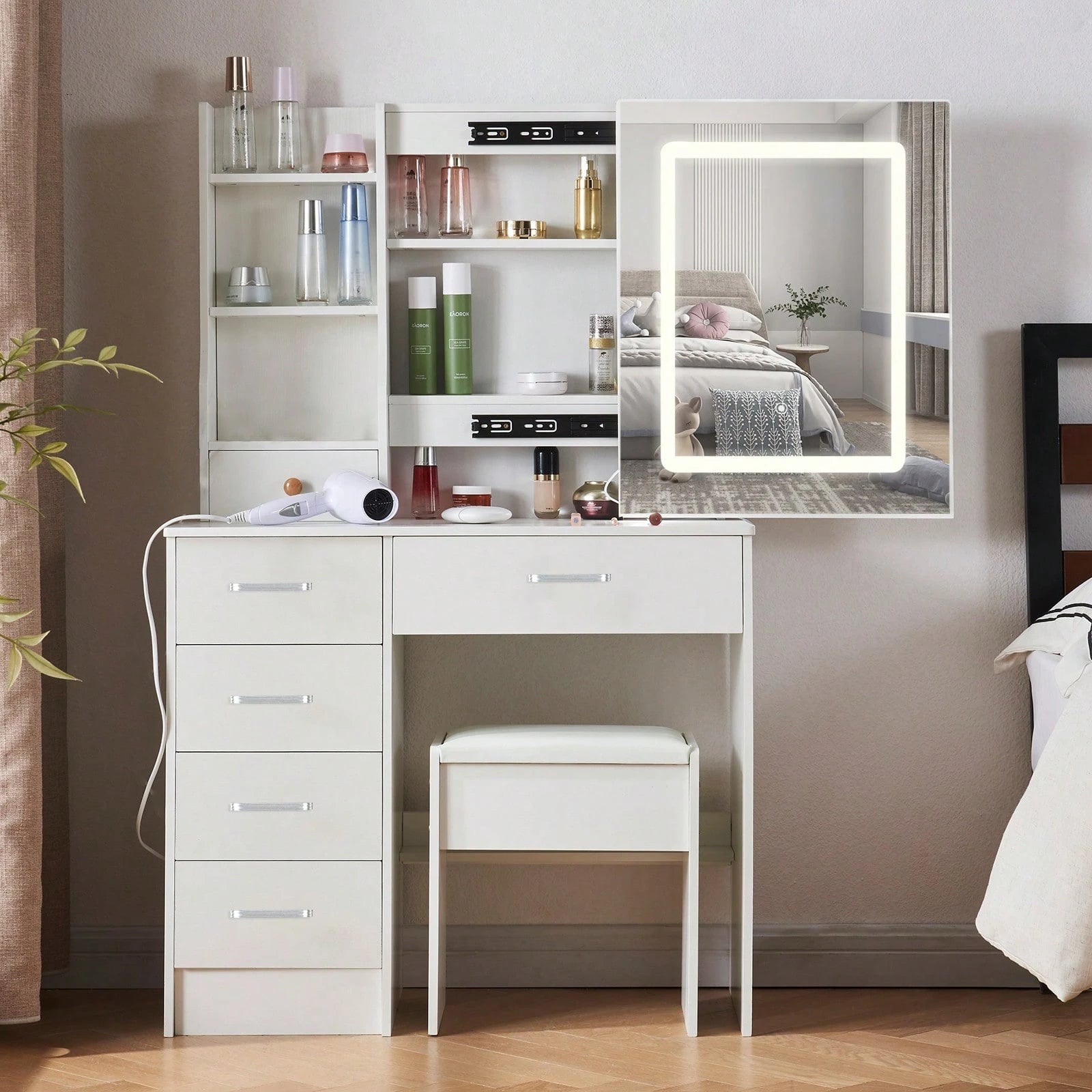 Set da toeletta con sgabello, specchio scorrevole, toeletta, sedia da scrivania, cassetto
