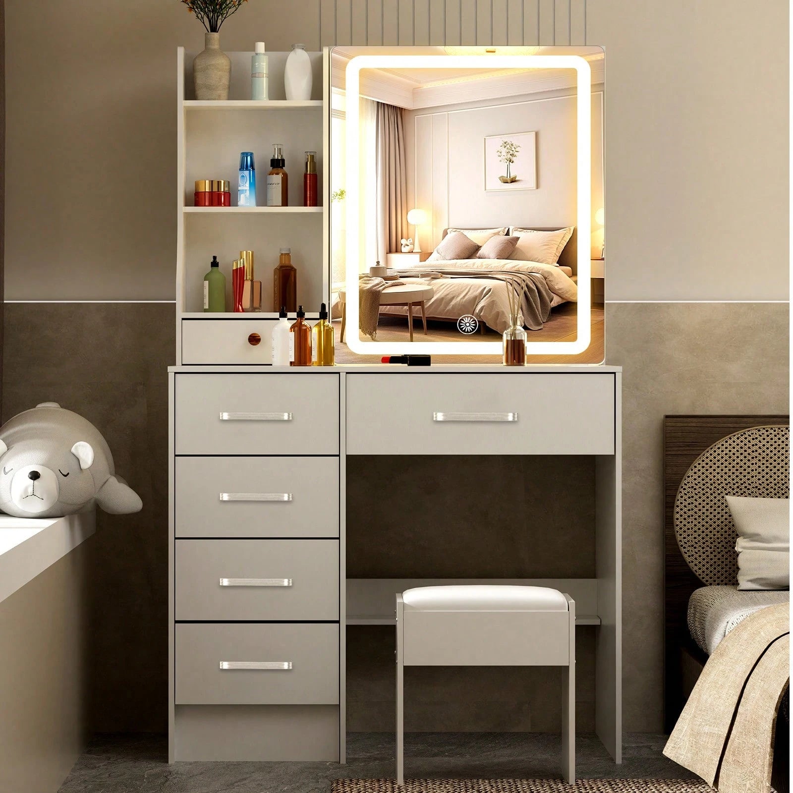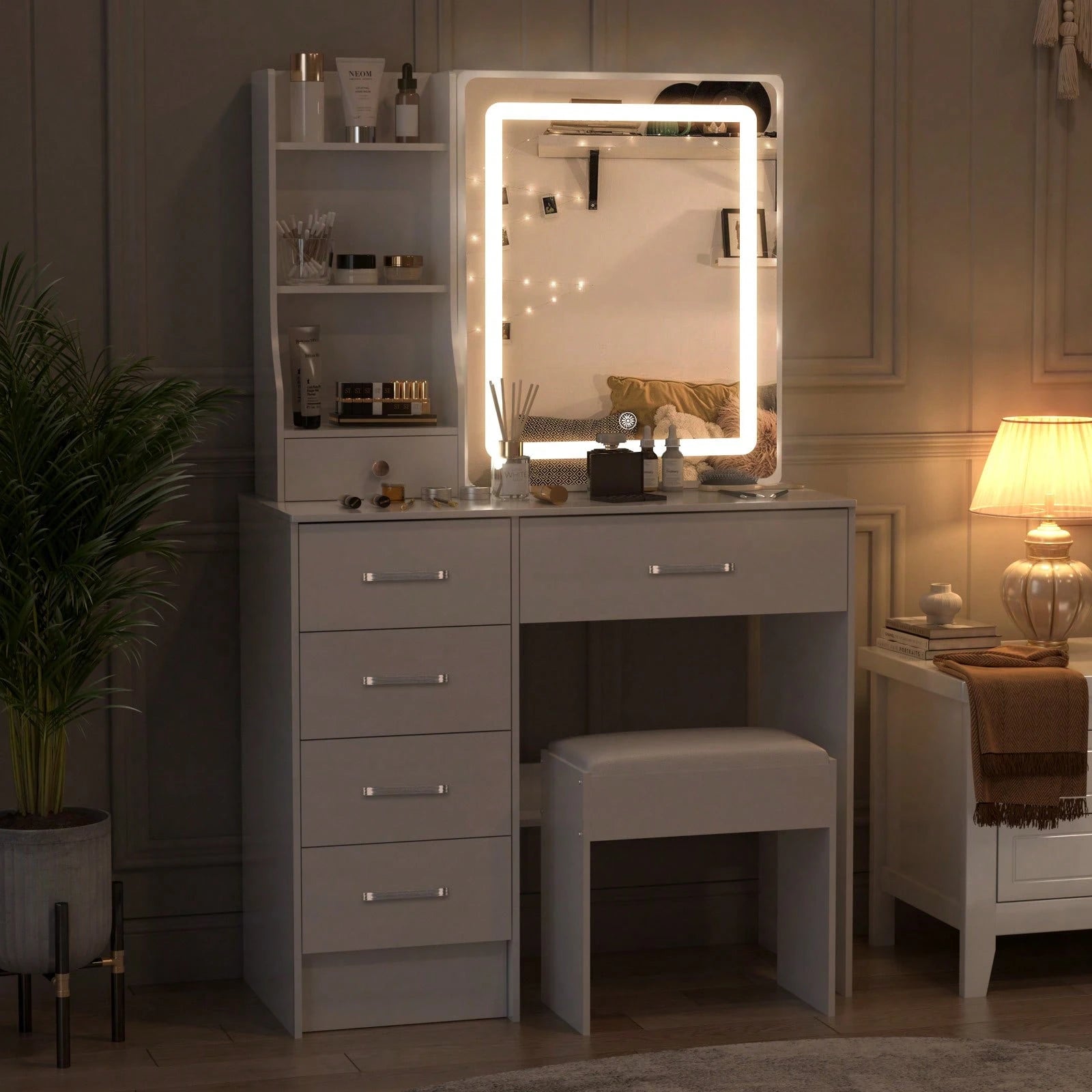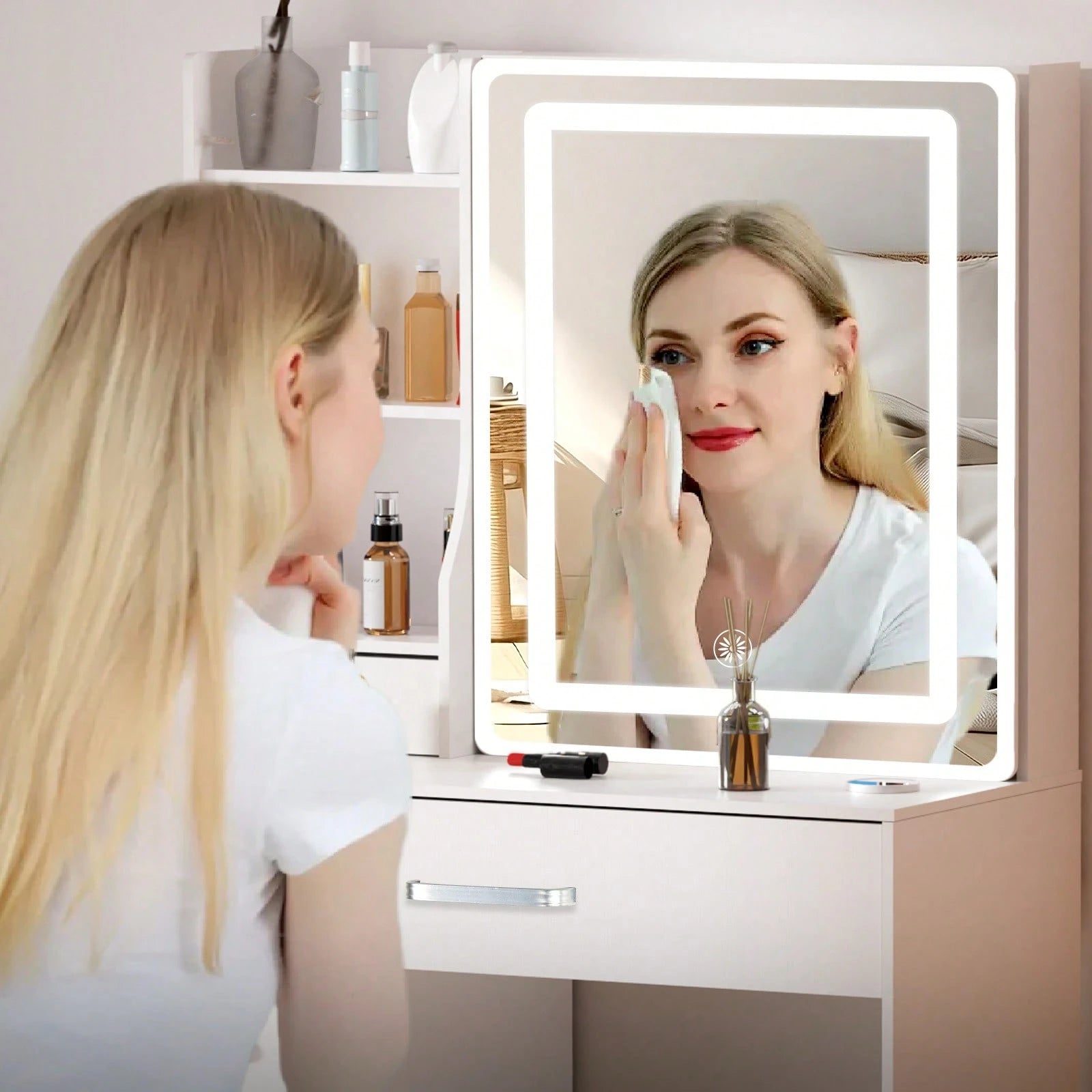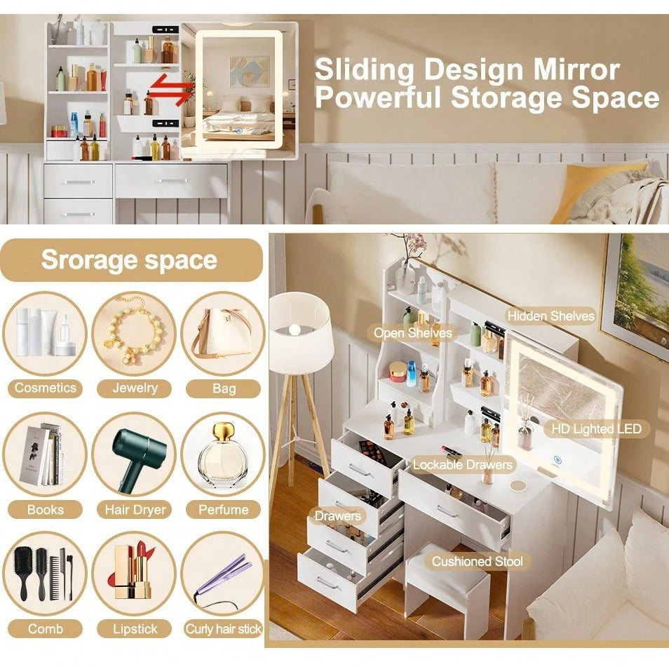Set da toeletta con sgabello, specchio scorrevole, toeletta, sedia da scrivania, cassetto
