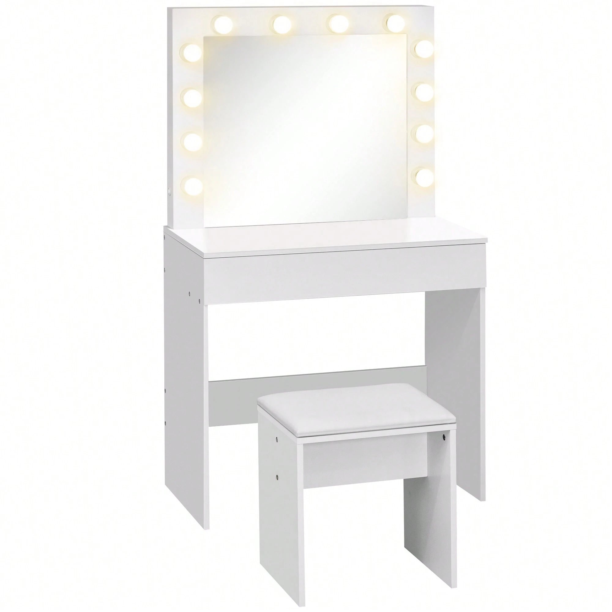 Trasforma il tuo spazio in una stazione di bellezza professionale con questo elegante set toeletta. Dotato di 12 luci LED integrate che garantiscono un'illuminazione uniforme e naturale, ideale per un trucco impeccabile. Lo specchio ampio offre una visione completa, mentre lo sgabello imbottito assicura comfort durante le lunghe sessioni di...