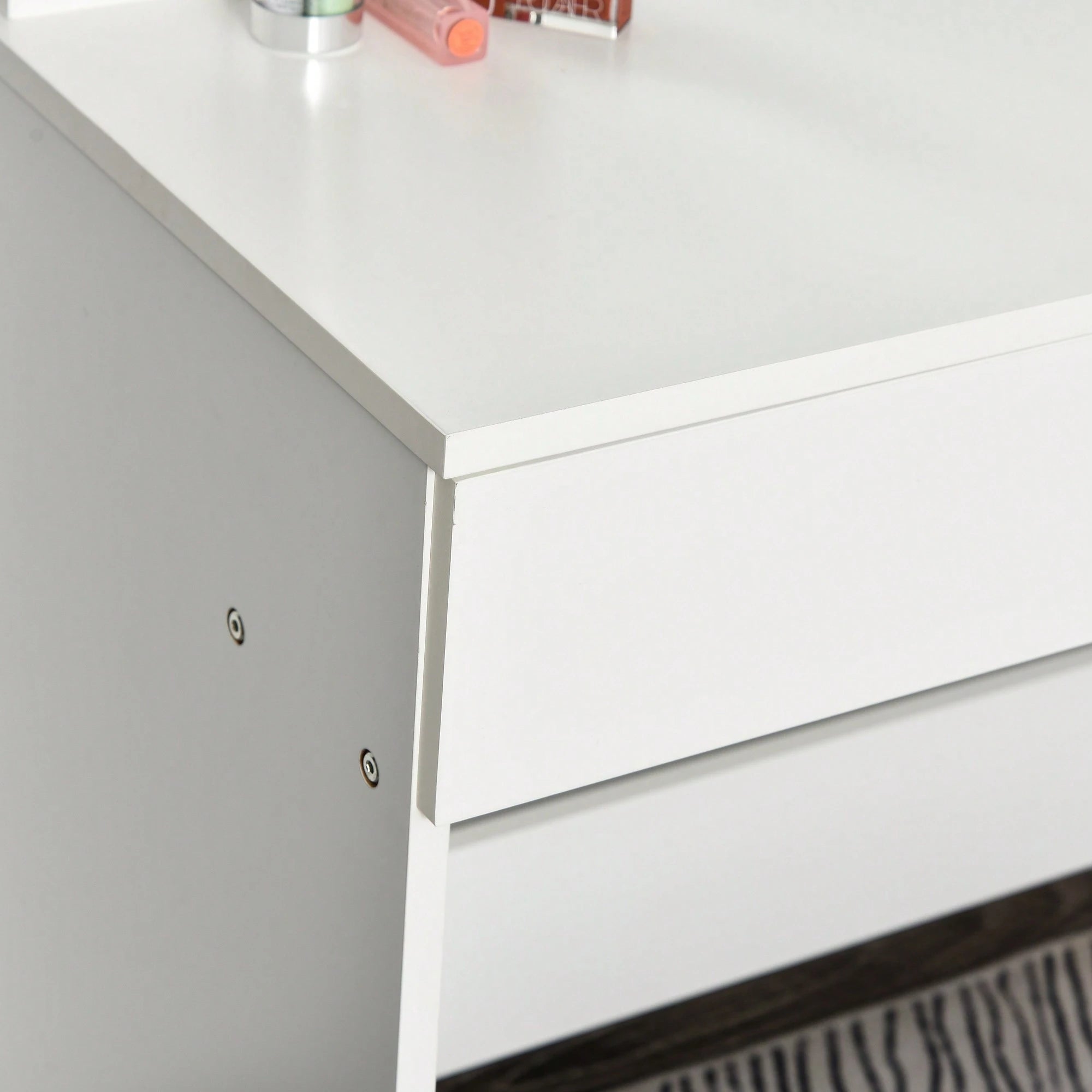 Il cassetto in legno di generose dimensioni fornisce spazio organizzato per conservare cosmetici e accessori.