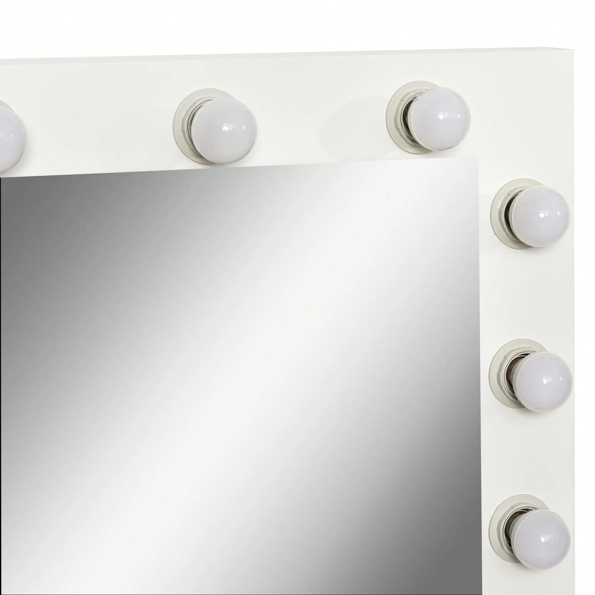 Lo specchio ampio offre una visione completa, mentre lo sgabello imbottito assicura comfort durante le lunghe sessioni di bellezza.