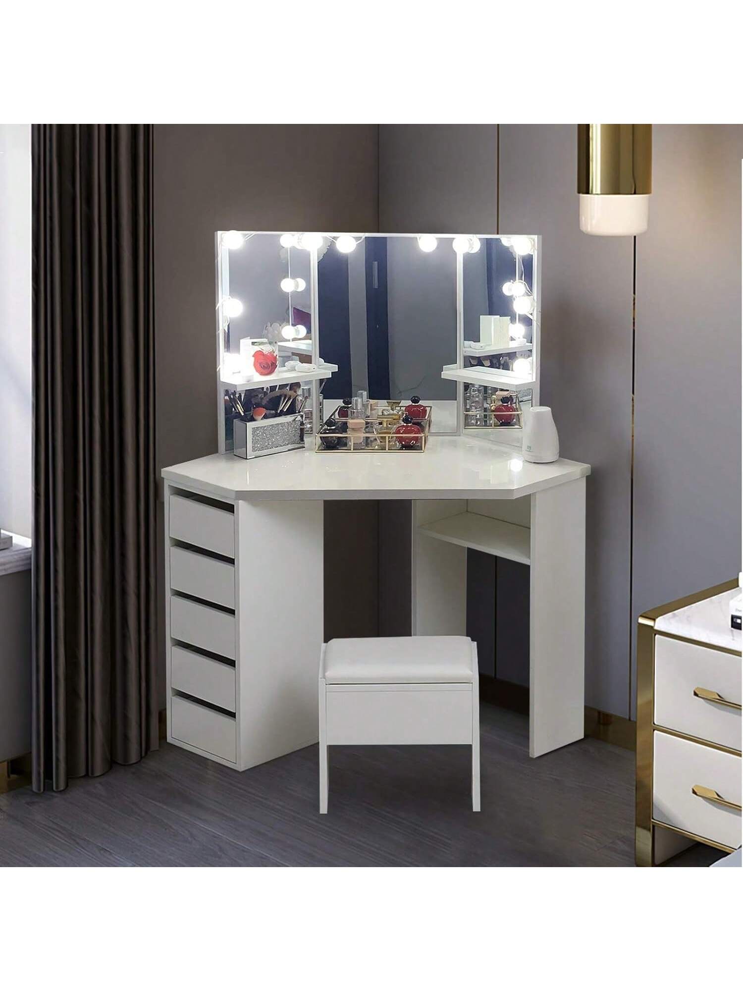Trasforma la tua routine di bellezza con questo elegante tavolo da toeletta angolare, progettato per massimizzare lo spazio senza compromessi.