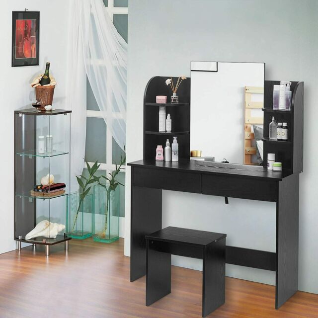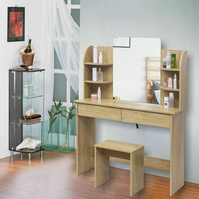 Tavolo da Trucco con Specchio Sgabello Cosmetici Toeletta Tavolino Bianco