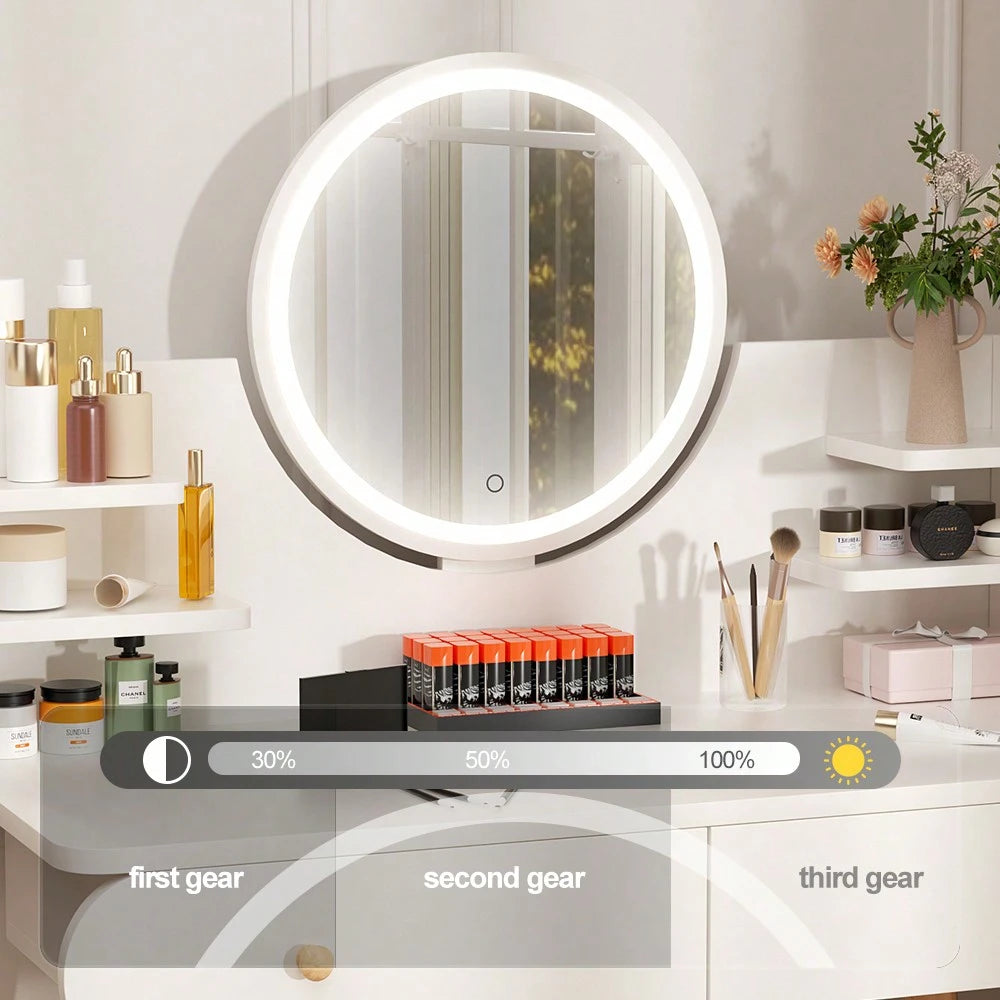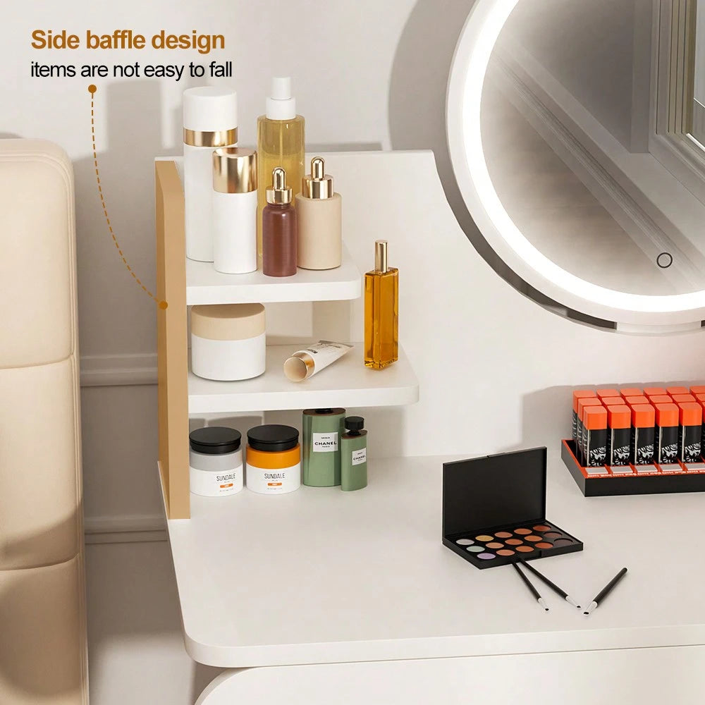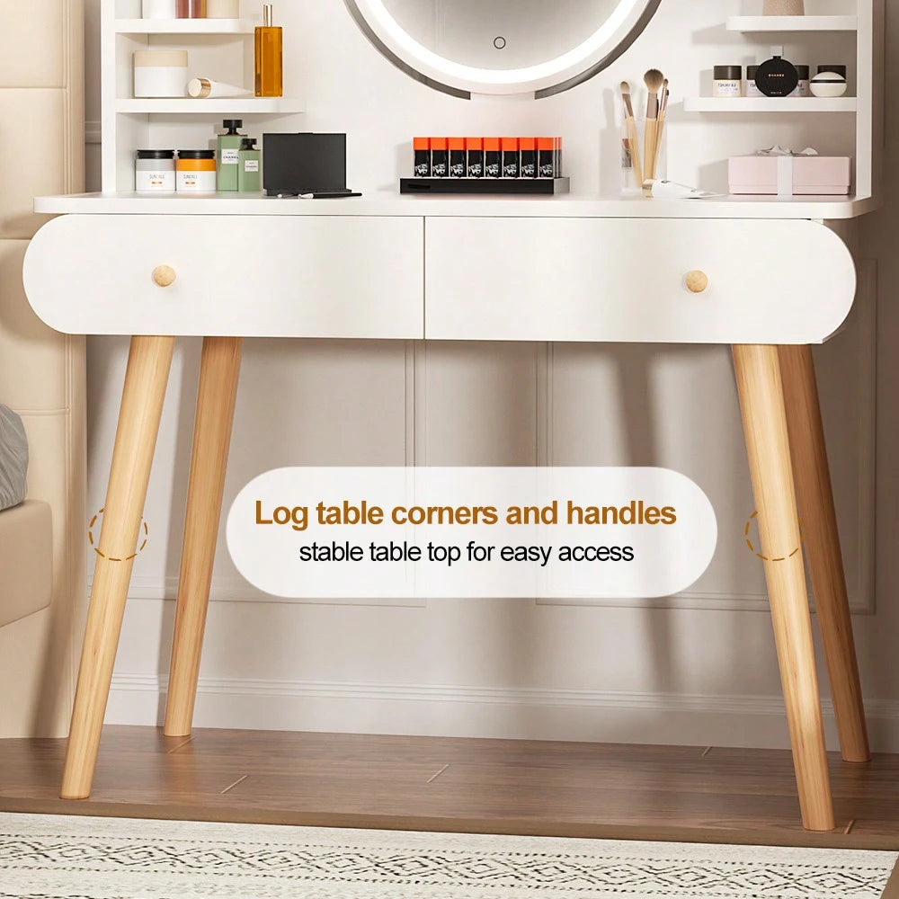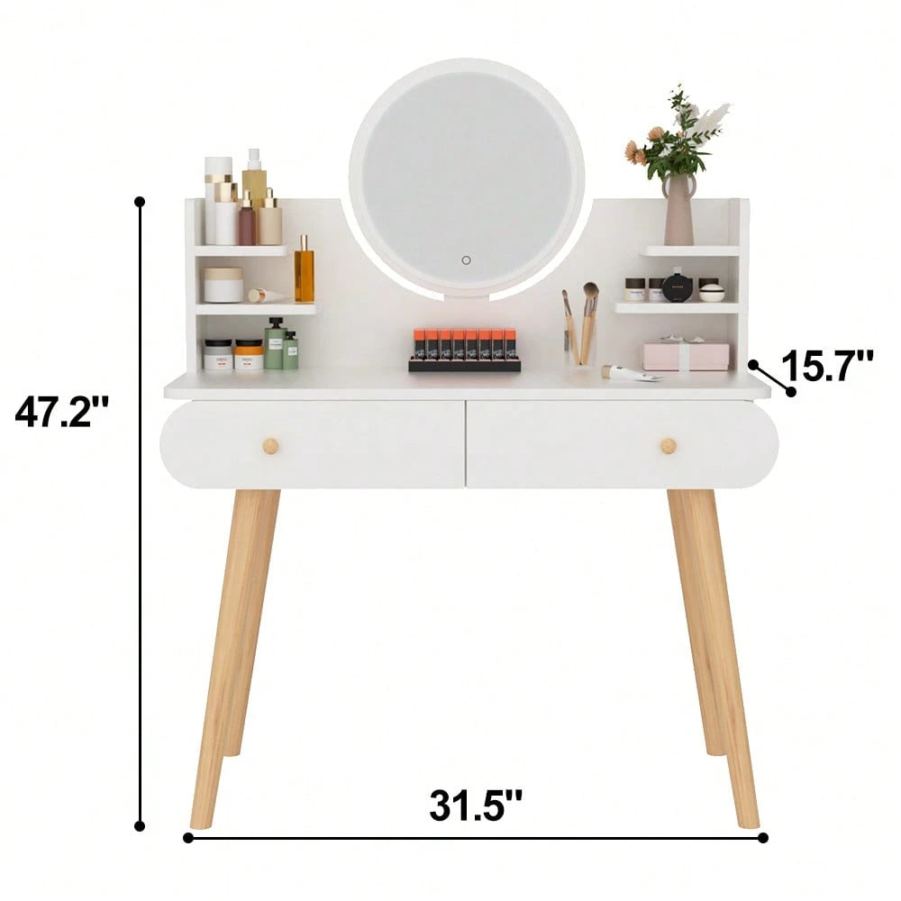 Tavolo Trucco in Legno, Con Specchio LED Regolabile, 2 Cassetti, Mensole Multistrato, Top Tavolo Rinforzato e Spesso, Facile da Montare