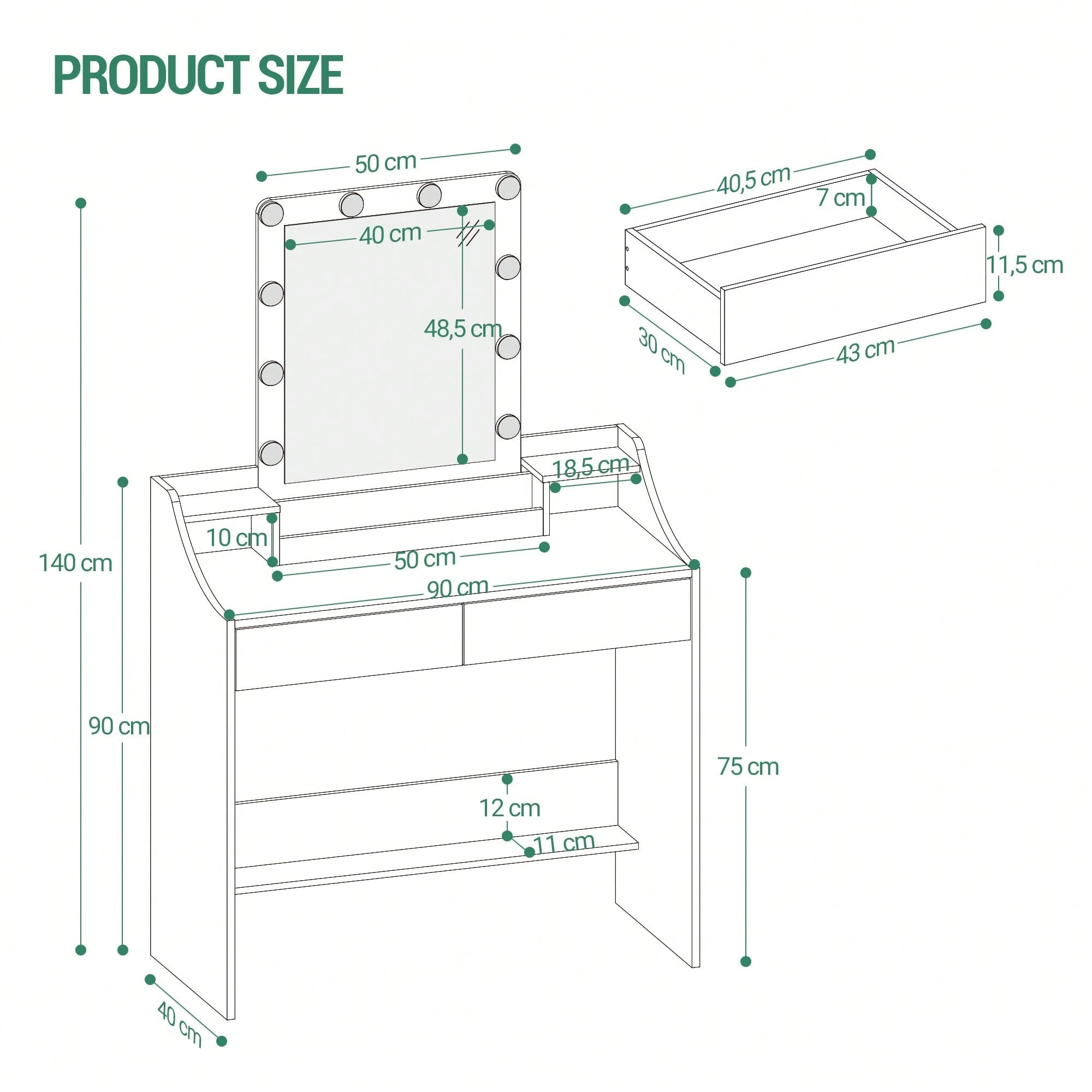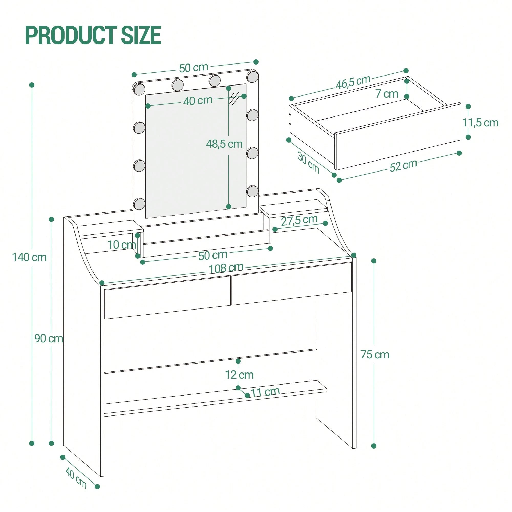 Toeletta con illuminazione a LED, luminosità regolabile, toeletta con specchio
