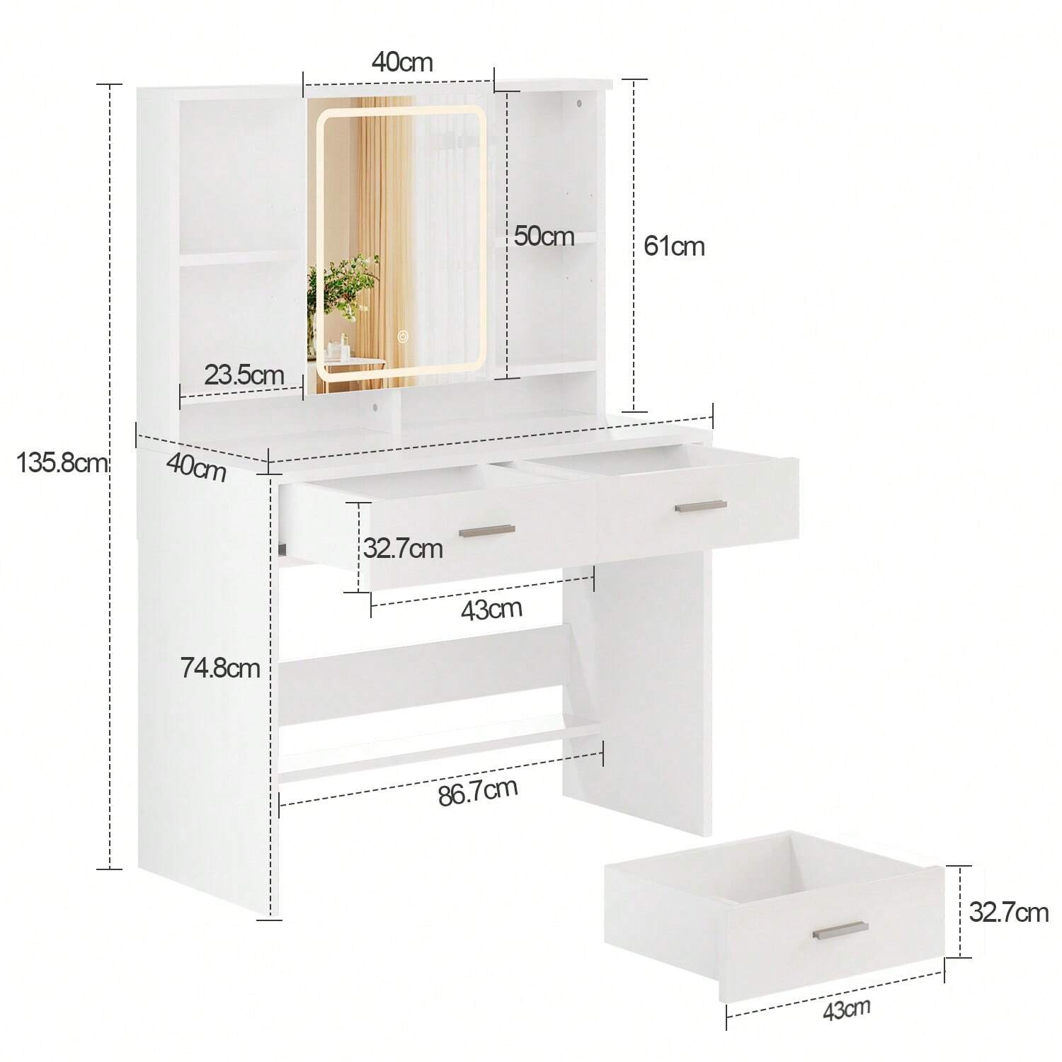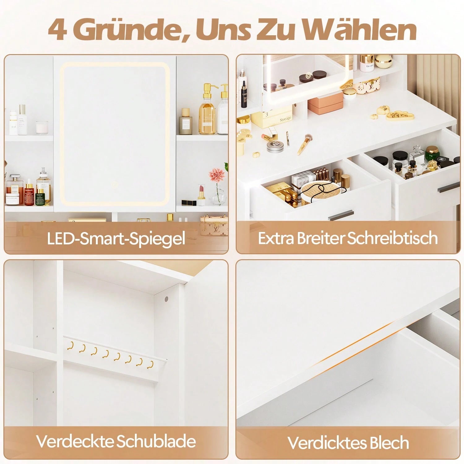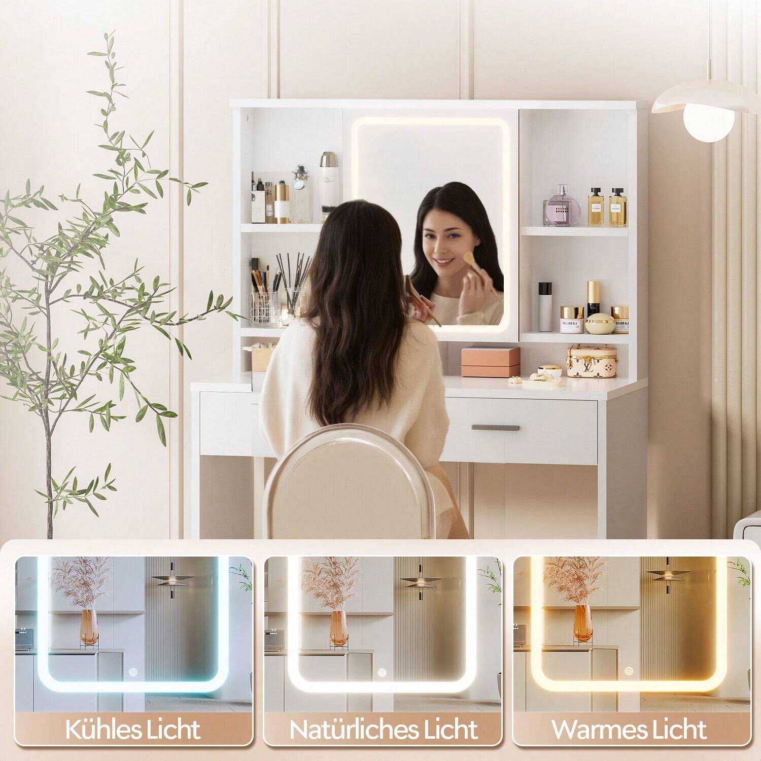 Toeletta con illuminazione a LED tavolo cosmetico con 2 cassetti, moderno bianco