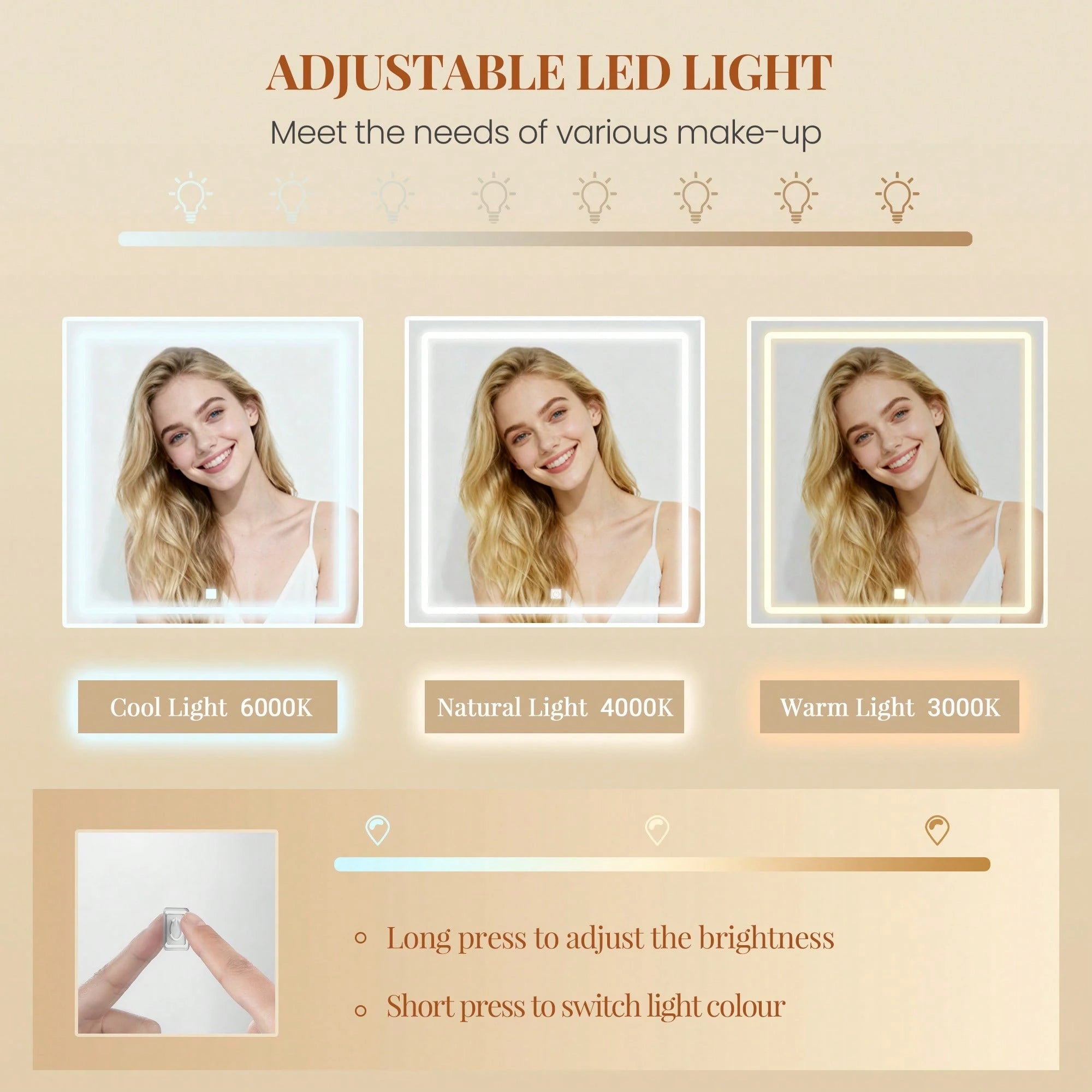 • Lo specchio grande illuminato da luci LED regolabili ti garantisce un'illuminazione