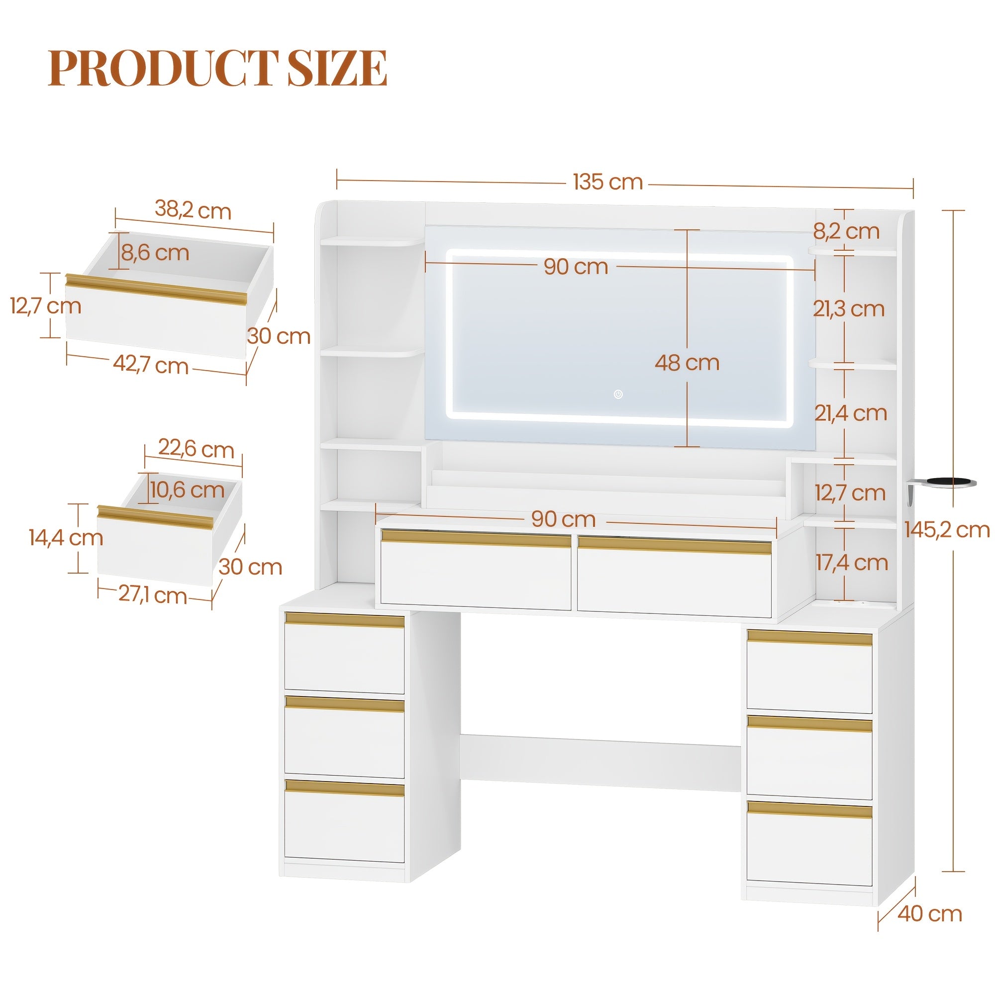 Toiletta da trucco e porta asciugacapelli 8 cassetti scomparti aperti 40 × 135 × 145.2 cm