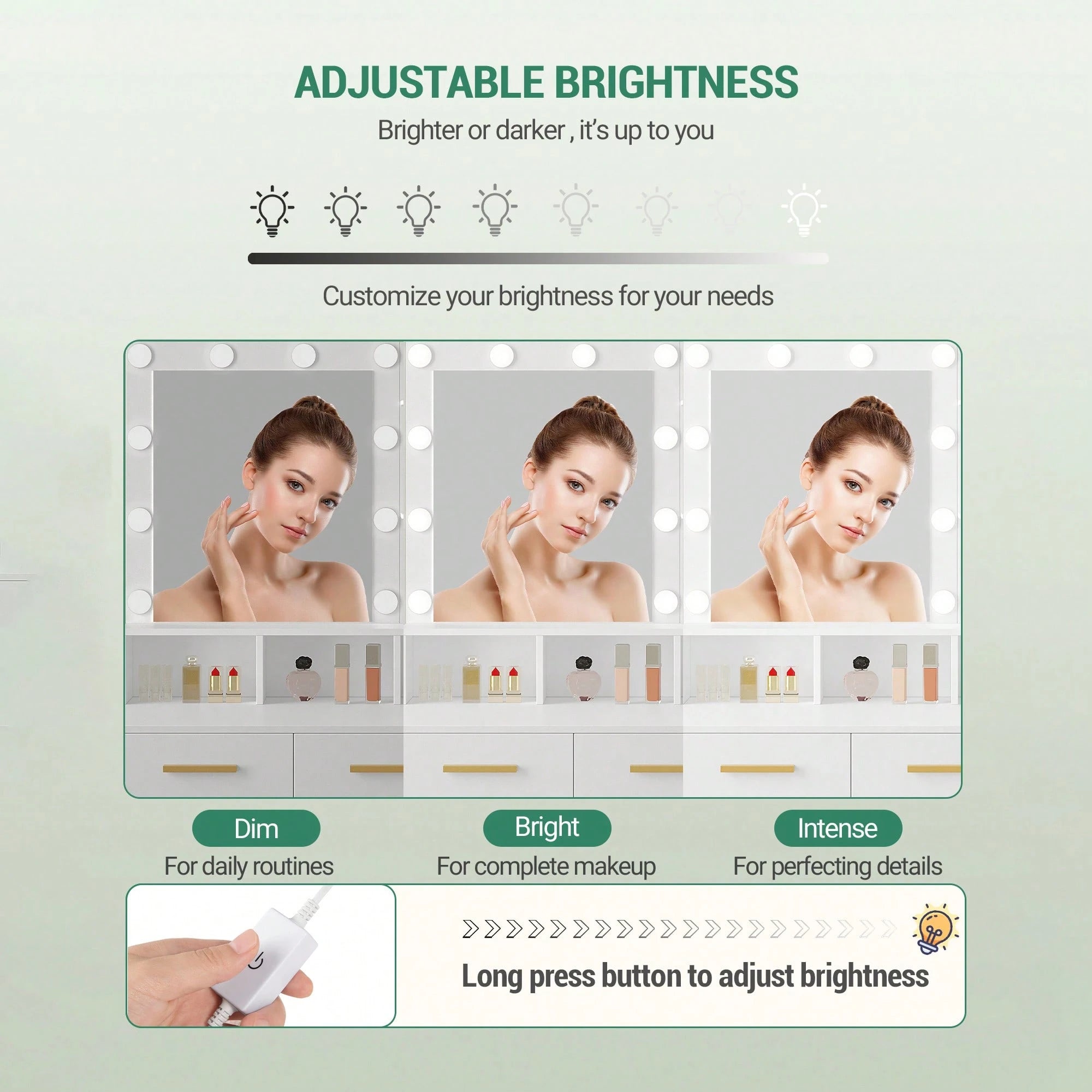 Toeletta da Trucco, con 10 Luce LED con Luminosità Regolabile, Tavolo da Trucco con Specchio