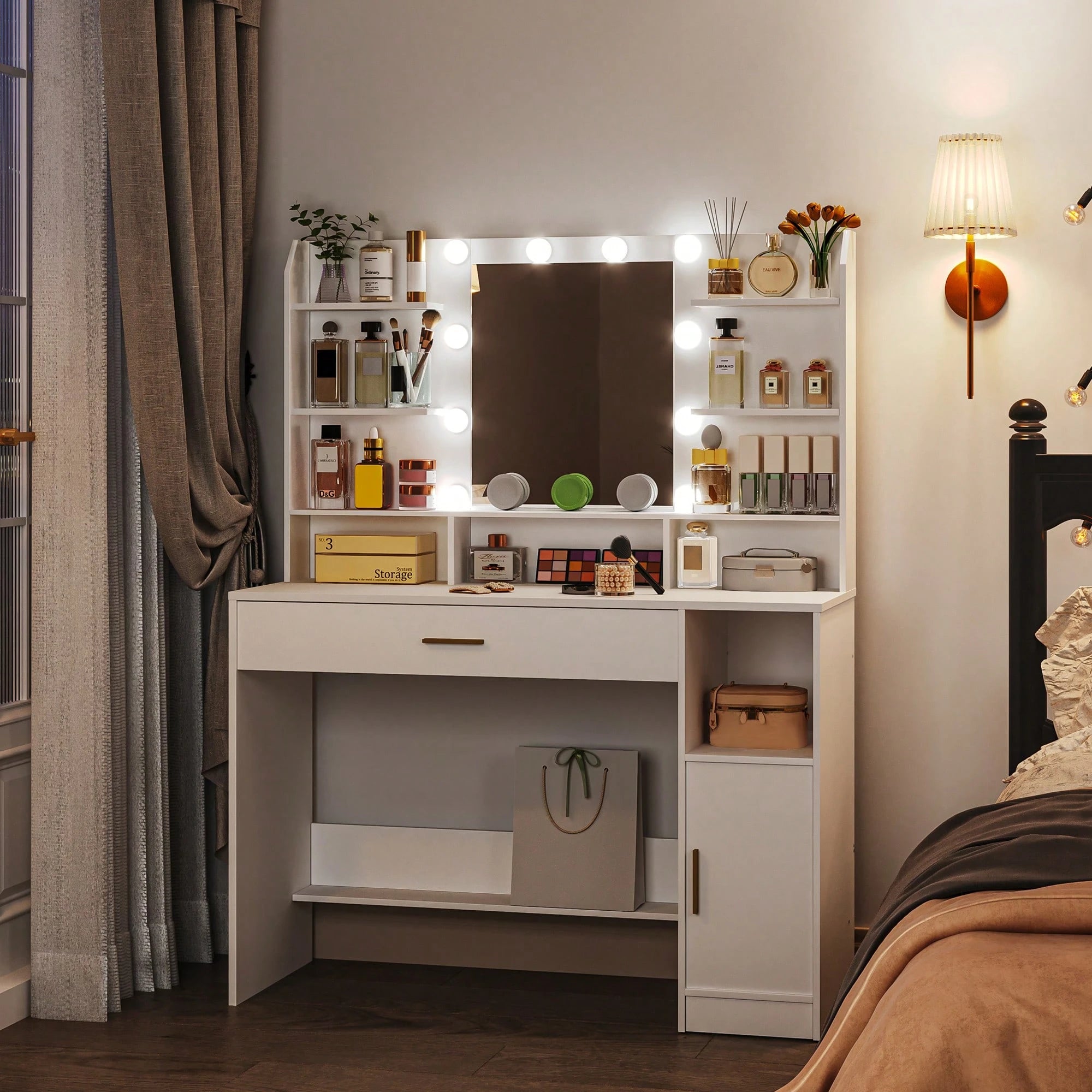 Toeletta da Trucco con Specchio luce LED a Luminosità Regolabile con Cassetti e Portaoggetti