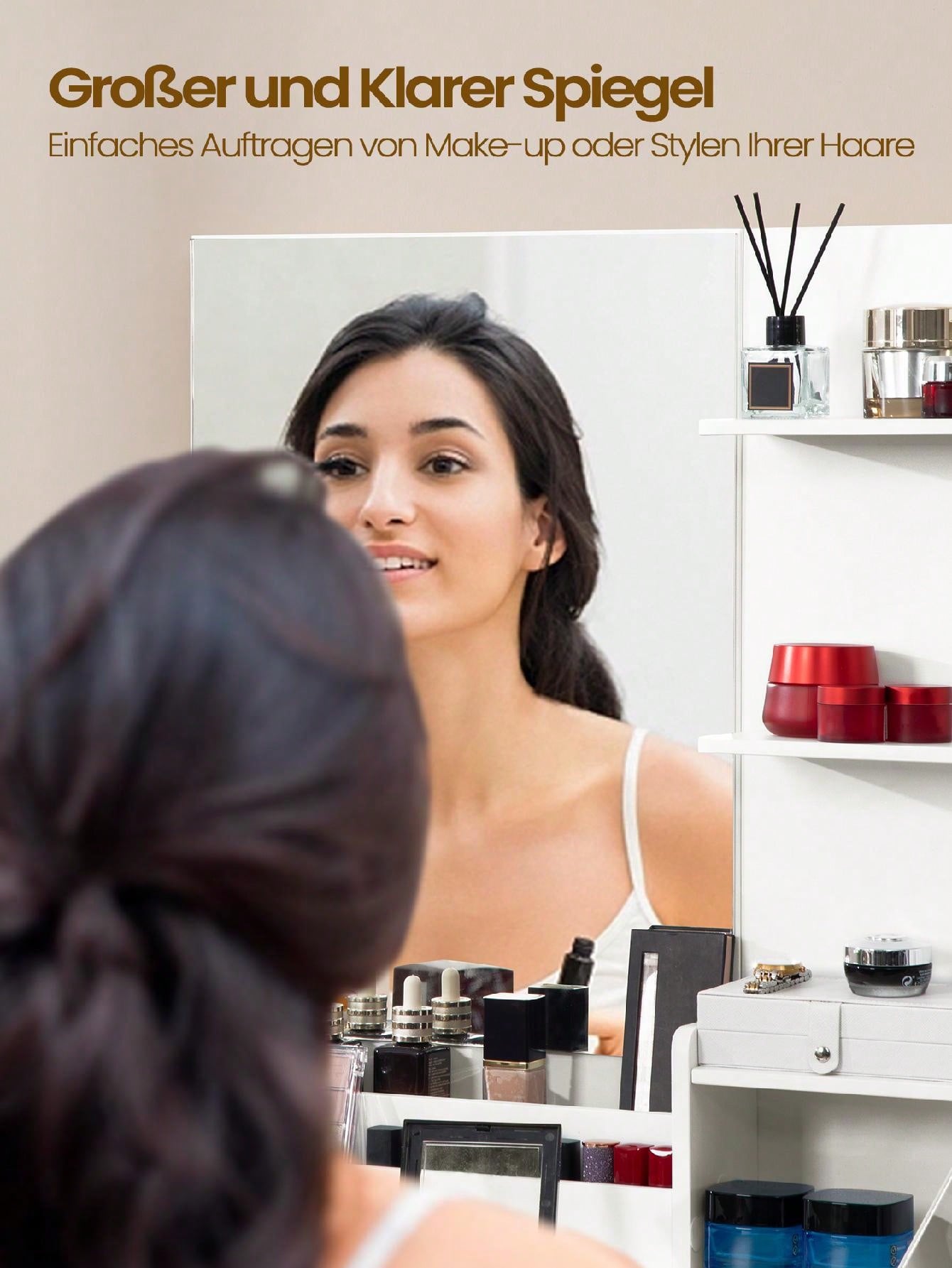 - riporre cosmetici, asciugacapelli, gioielli e altri oggetti di bellezza. Inoltre,