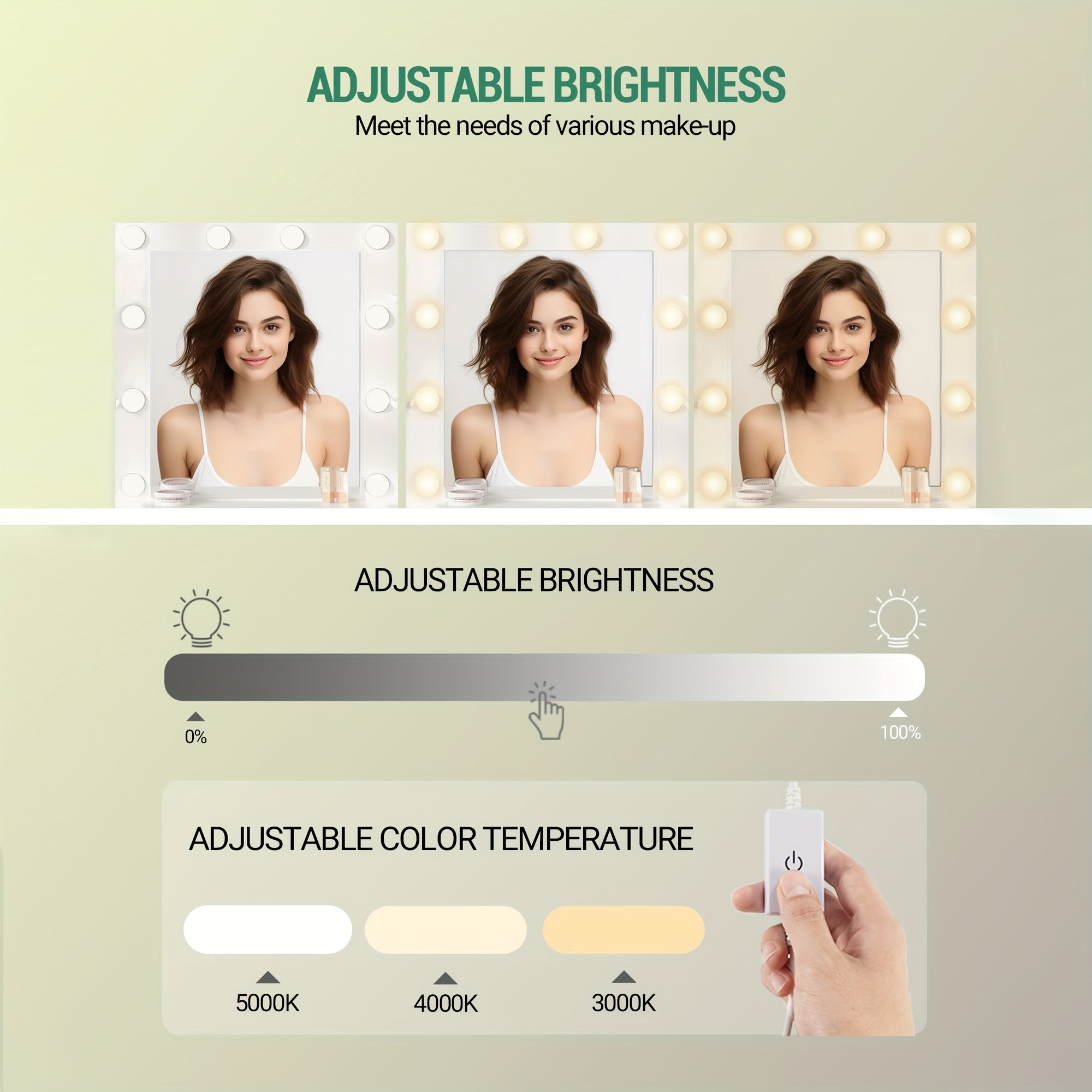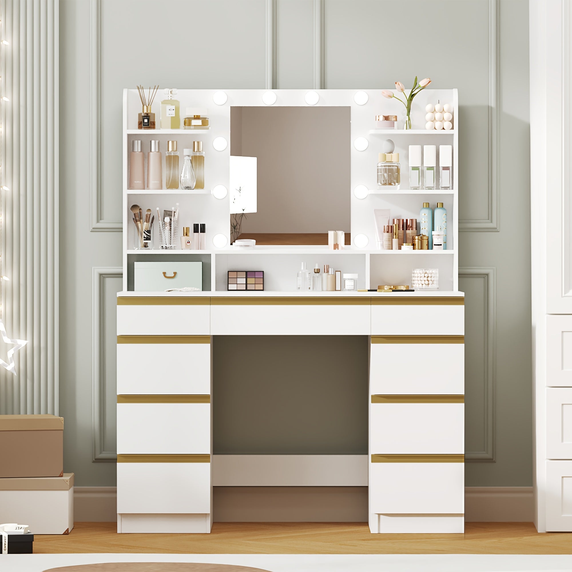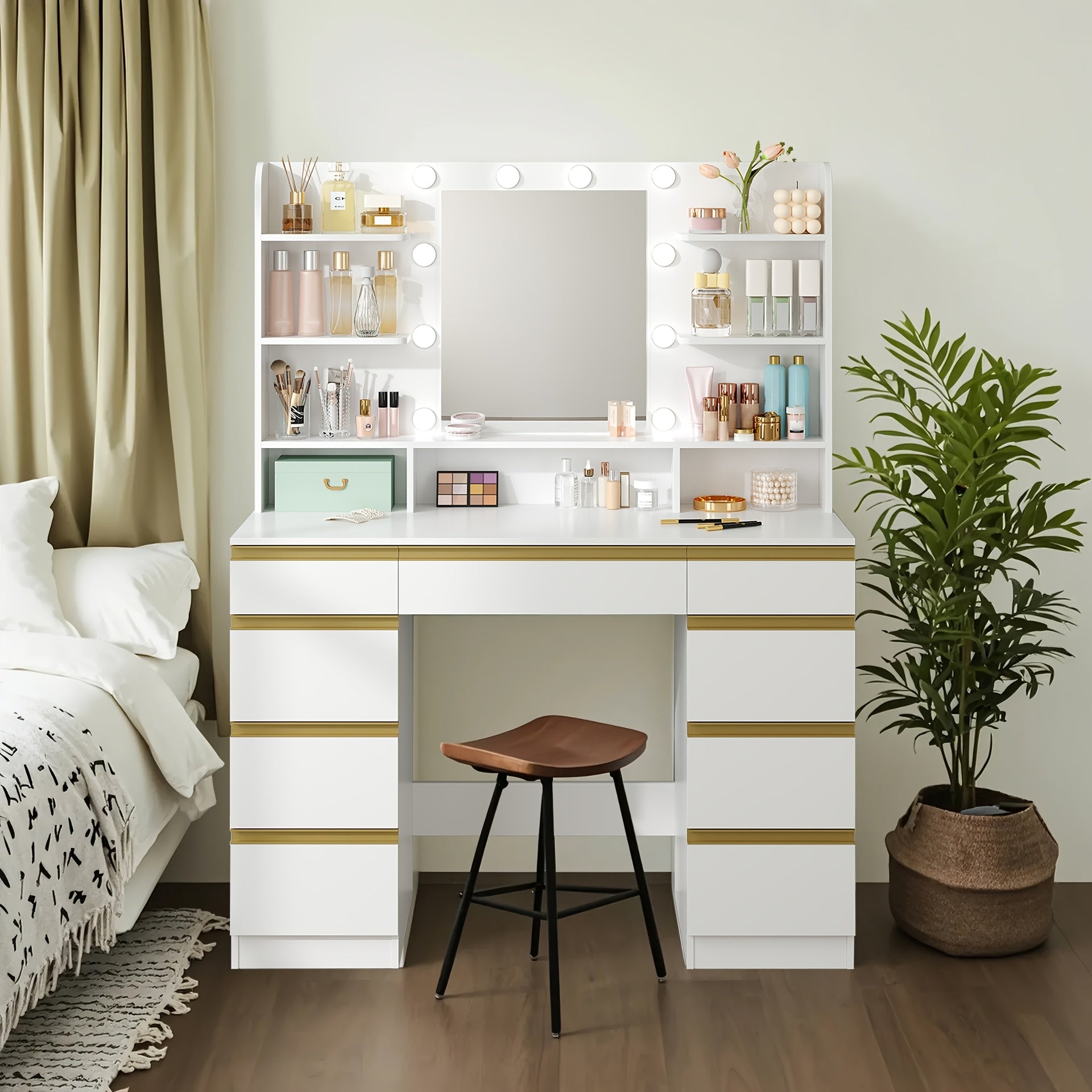 Toilette con Specchio e 10 Luci LED, Toilette in 3 Colori, Luminosità Regolabile, 1 Cassetto Grande e 8 Piccoli Cassetti,
