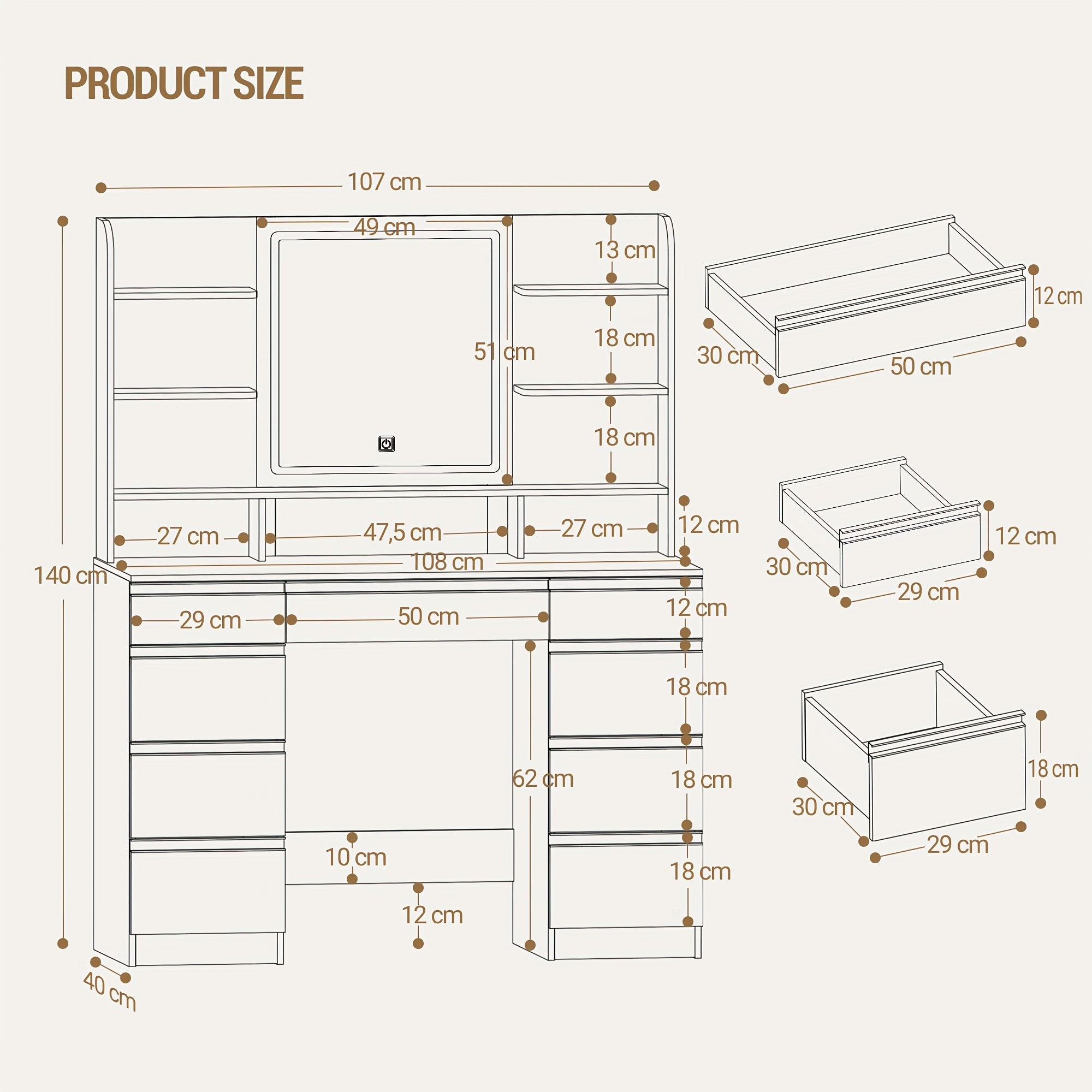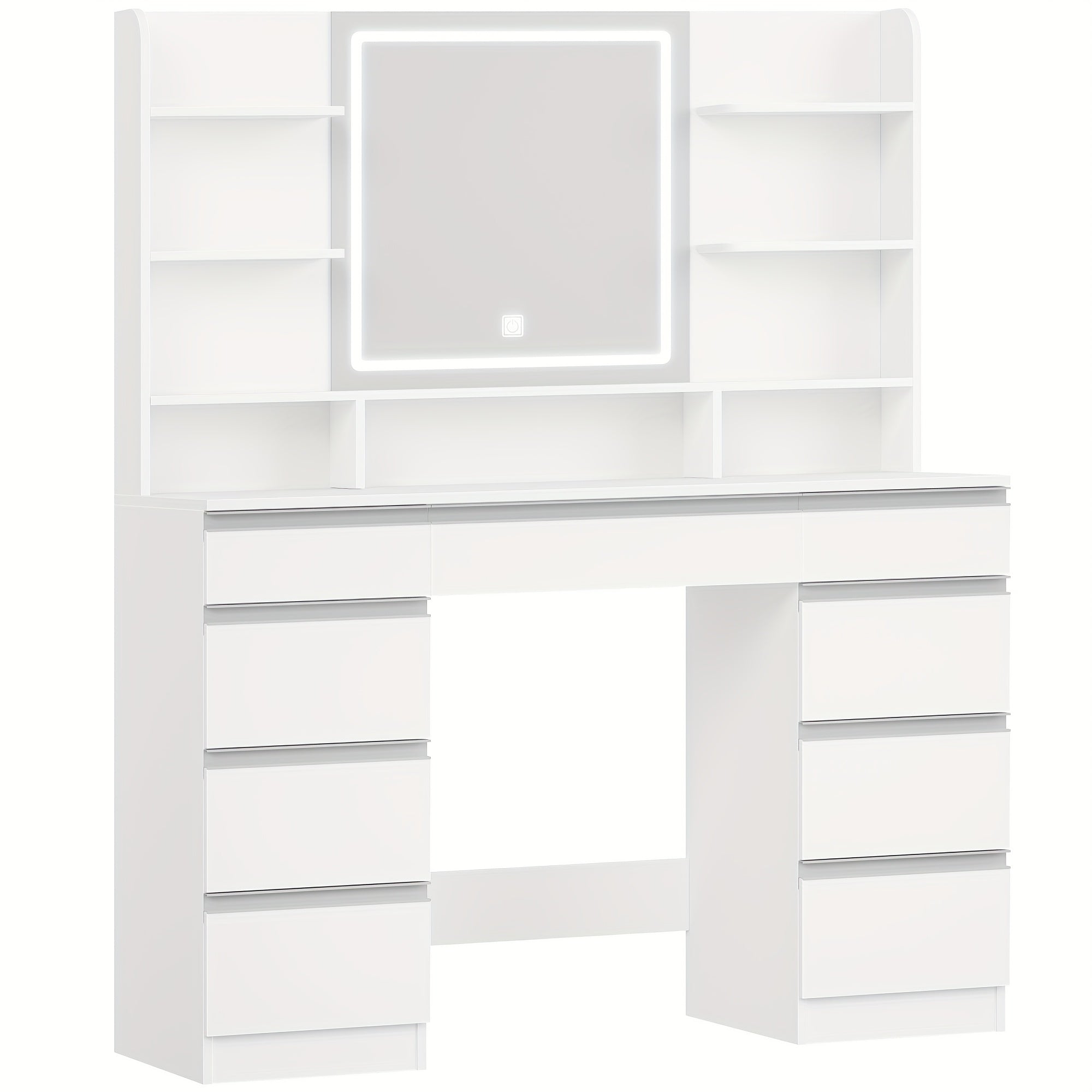 Toilette con Illuminazione LED Controllo Luminosità, Specchio, 9 Cassetti 9 Ripiani Aperti
