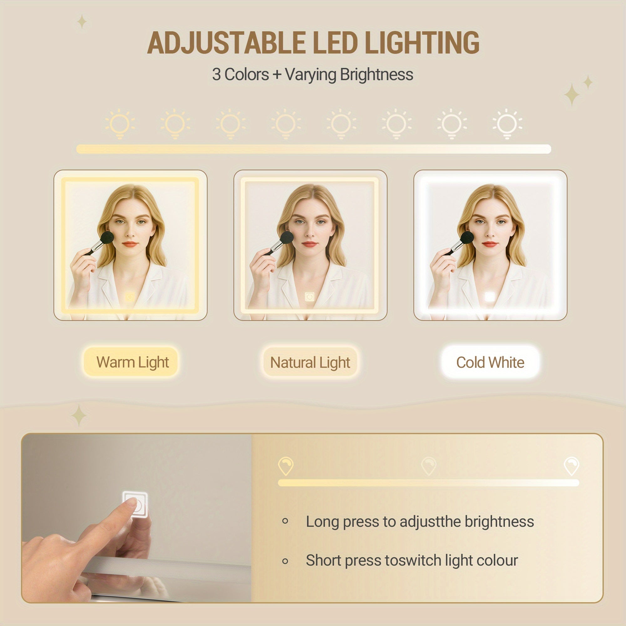 Trasforma il tuo spazio bellezza con questa toilette di grandi dimensioni che combina funzionalità e design contemporaneo. Dotata di illuminazione LED regolabile in 3 tonalità di colore, ti permette di ottenere il trucco perfetto in qualsiasi condizione di luce. Lo specchio ampio offre una visione completa, mentre i 9 cassetti...