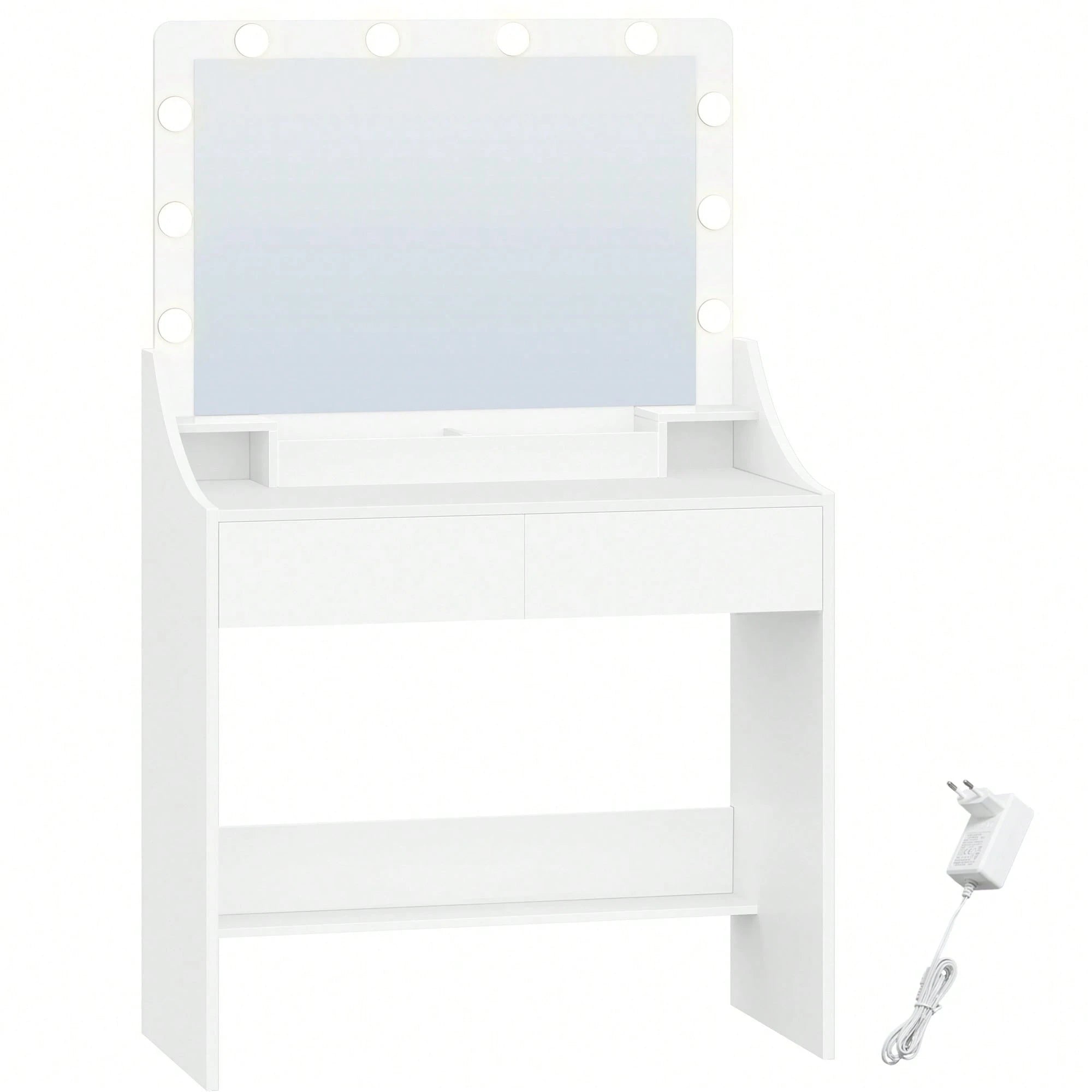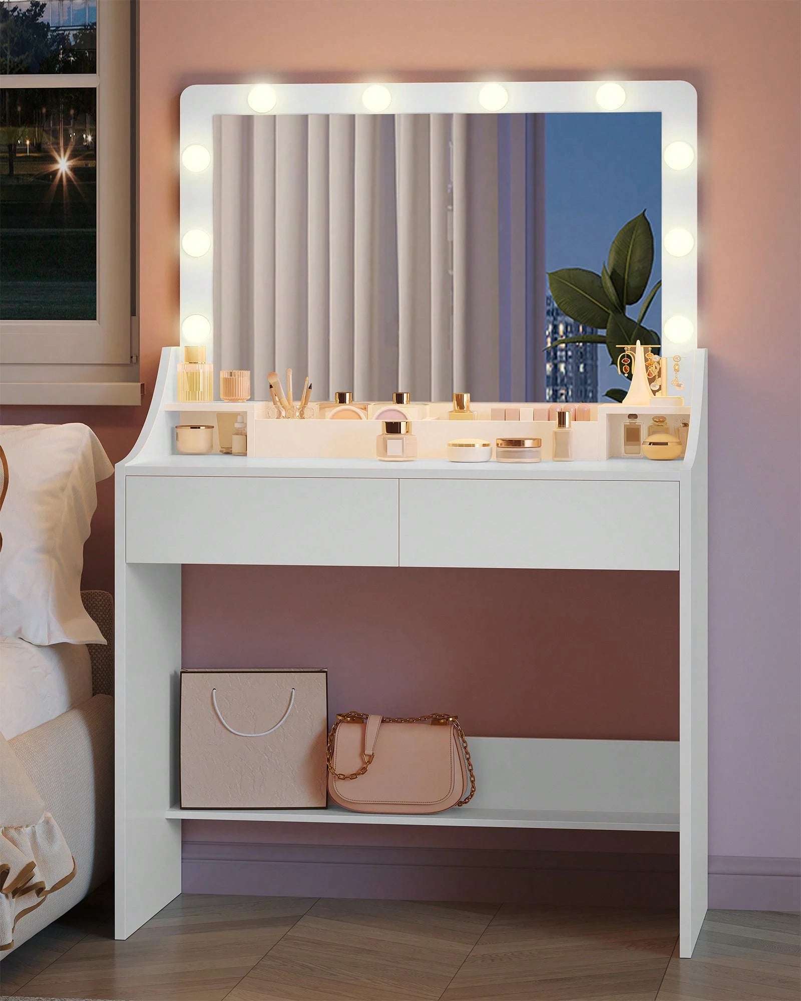 Toletta con grande specchio HD, toletta con 3 luci LED regolabili, toletta con 2 cassetti