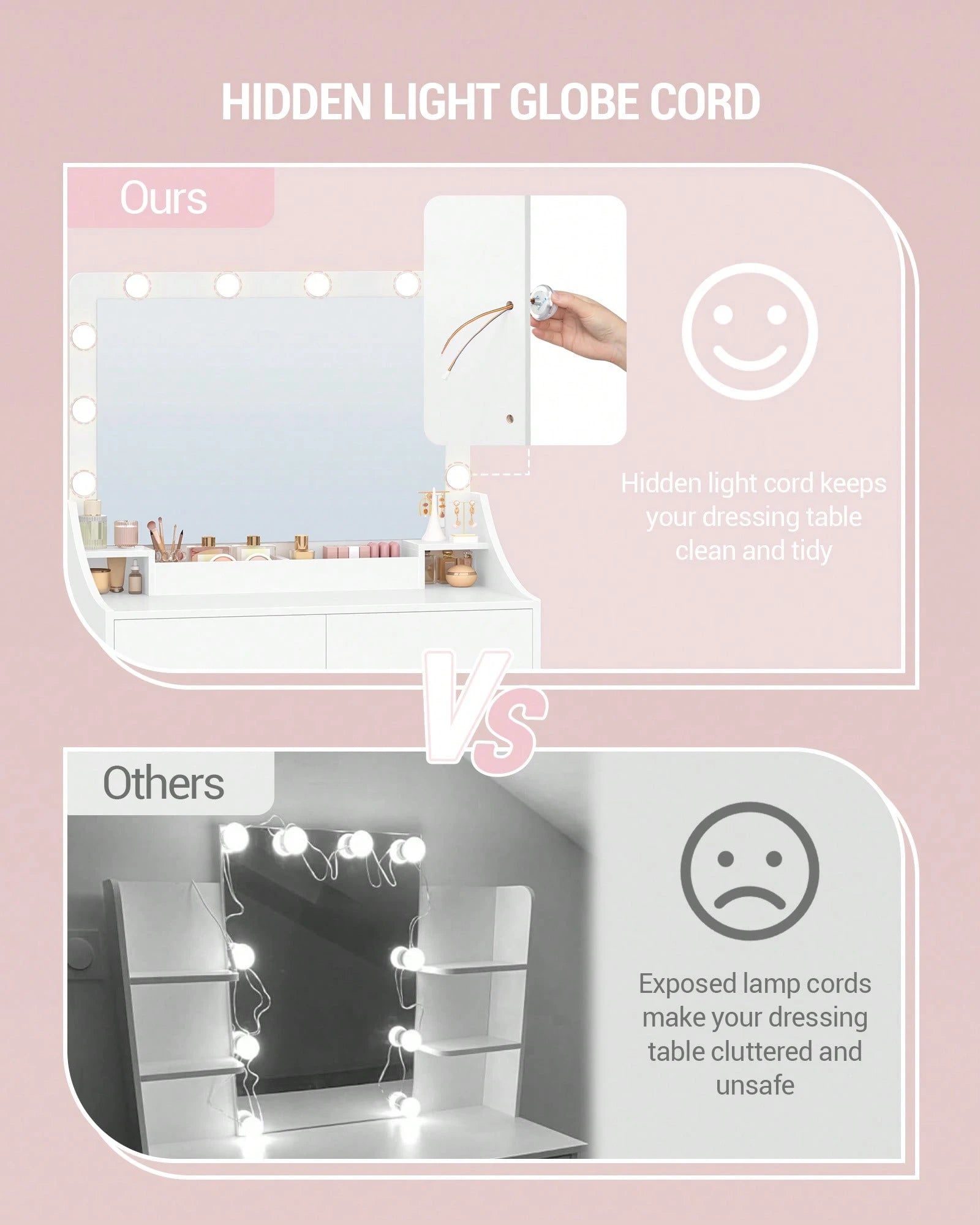 Trasforma il tuo spazio bellezza con questa toletta professionale dotata di specchio HD ad alta definizione che garantisce una visione cristallina per un trucco impeccabile.